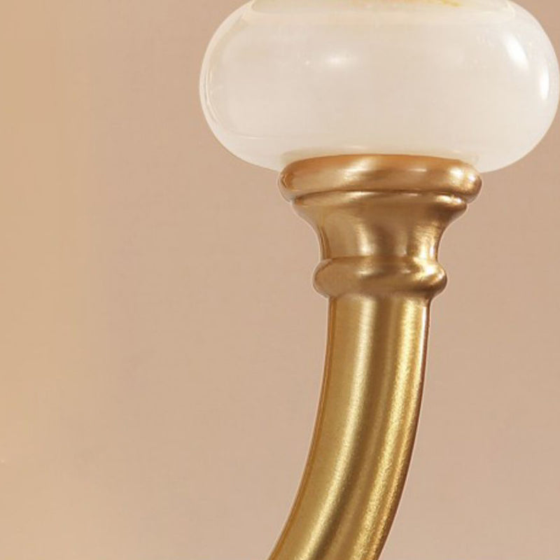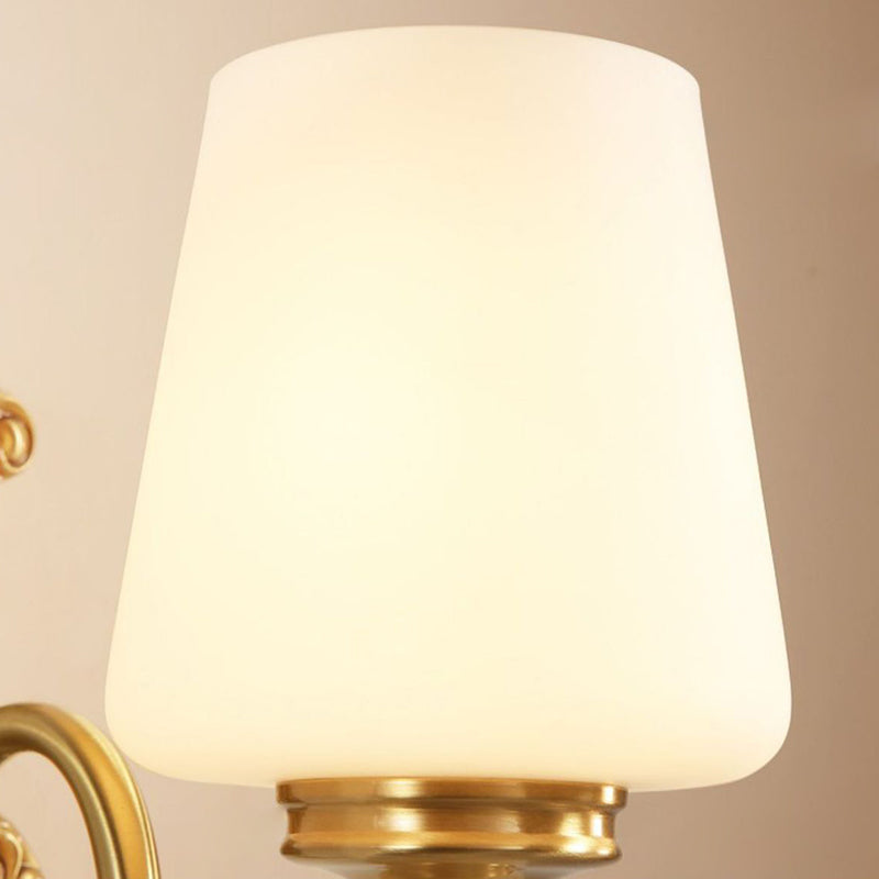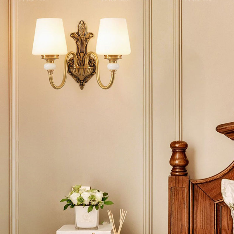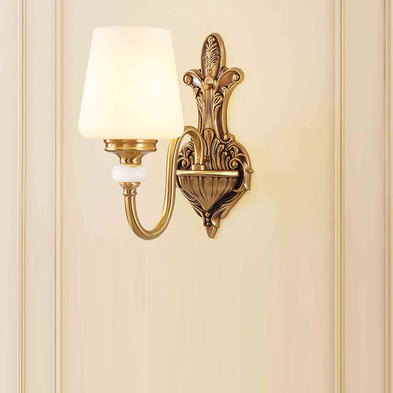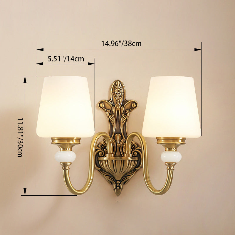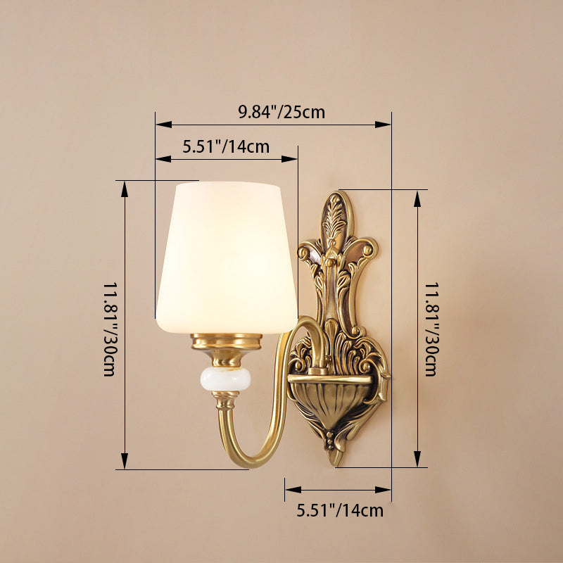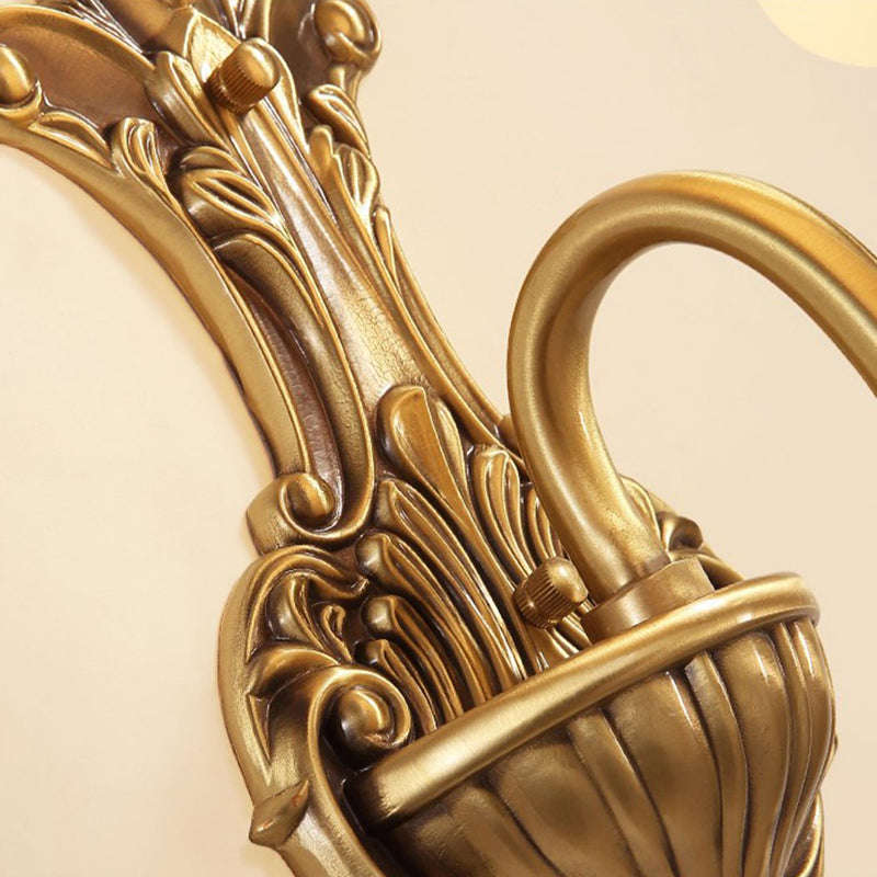 Traditional European Round Cup Shape Curved Pole Carved Brass Glass 1/2 Light Wall Sconce Lamp For Living Room