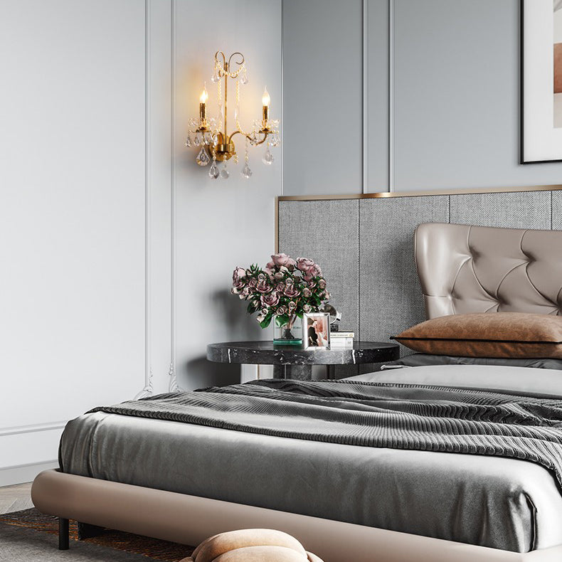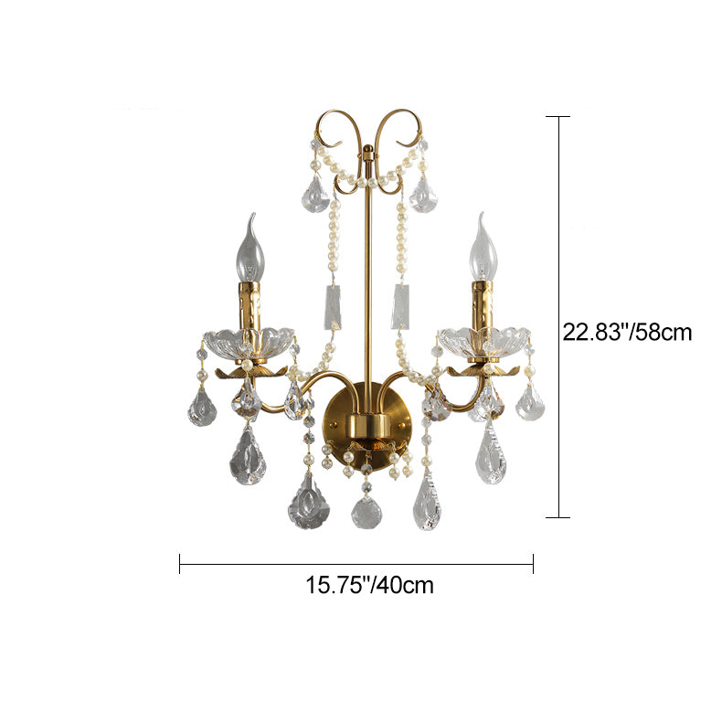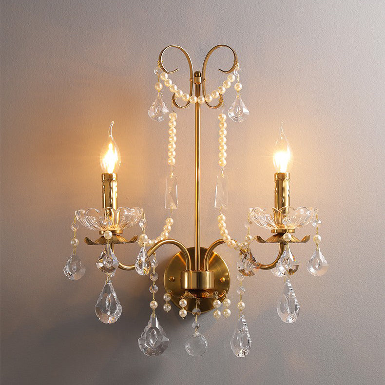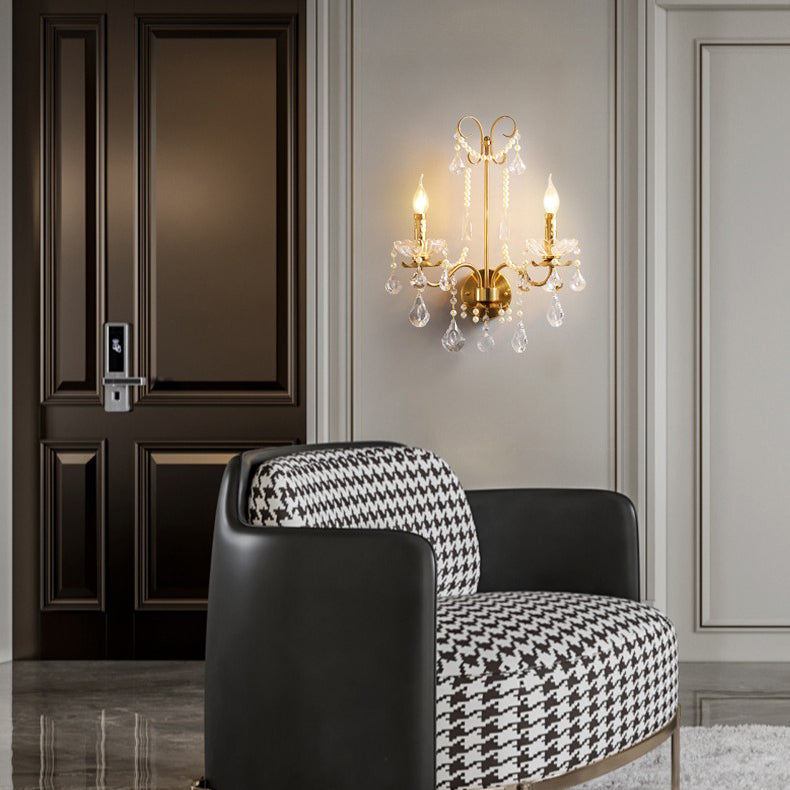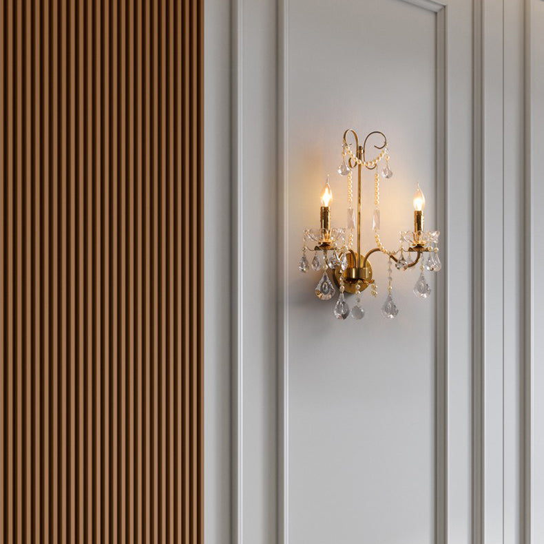 Traditional European Rustic Candle Iron Crystal 2-Light Wall Sconce Lamp For Living Room