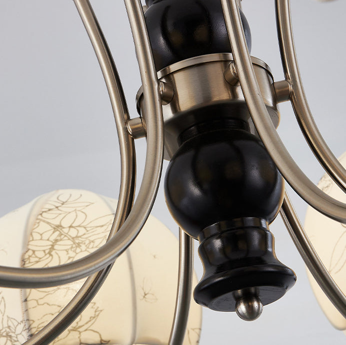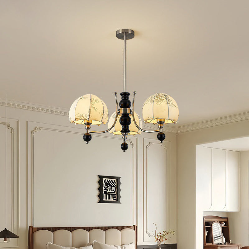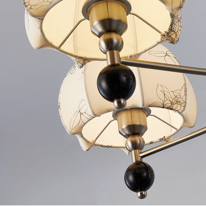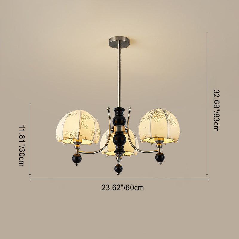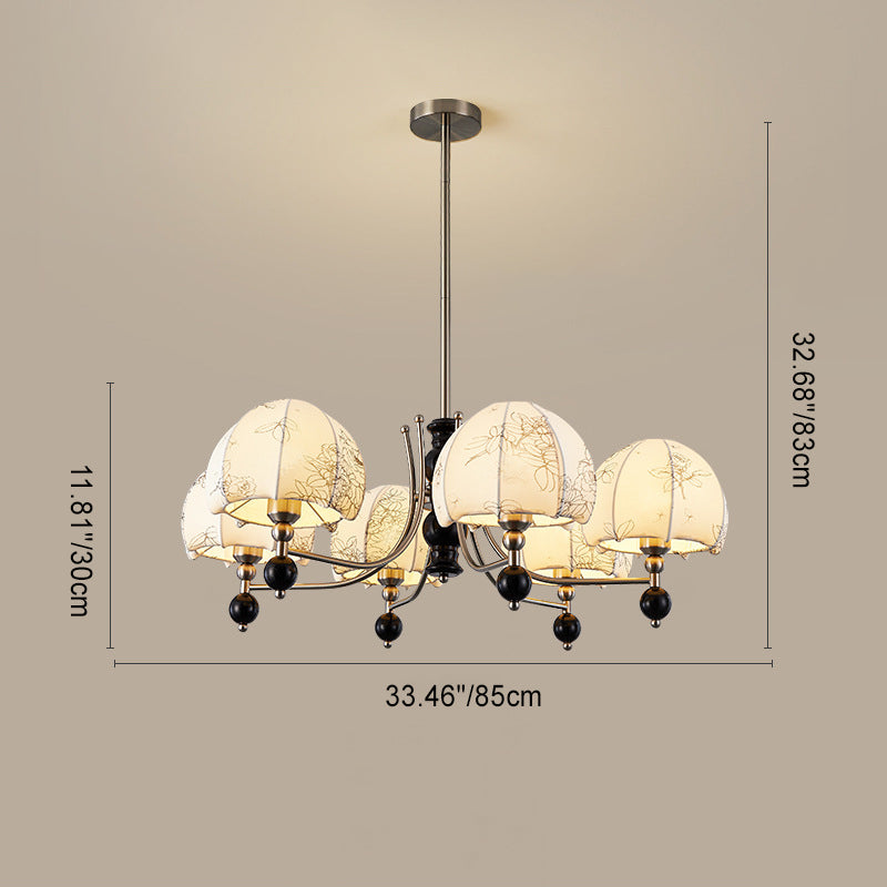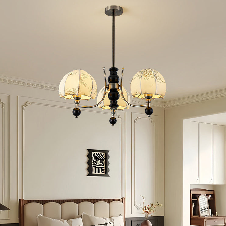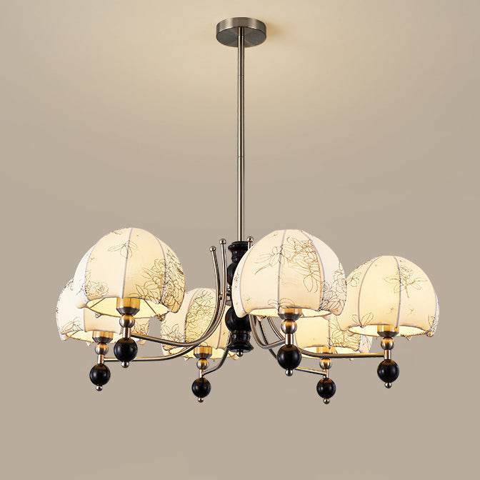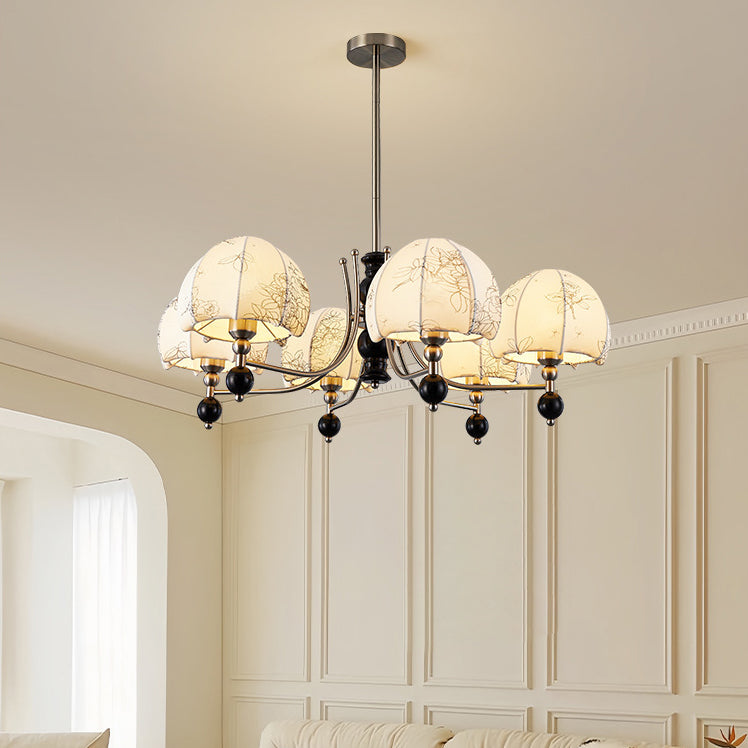 Traditional French Branch Curved Rod Dome Rubber Wood Iron Frame Fabric Shade 3/5/6/8 Light Chandelier For Living Room