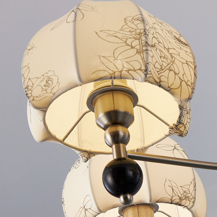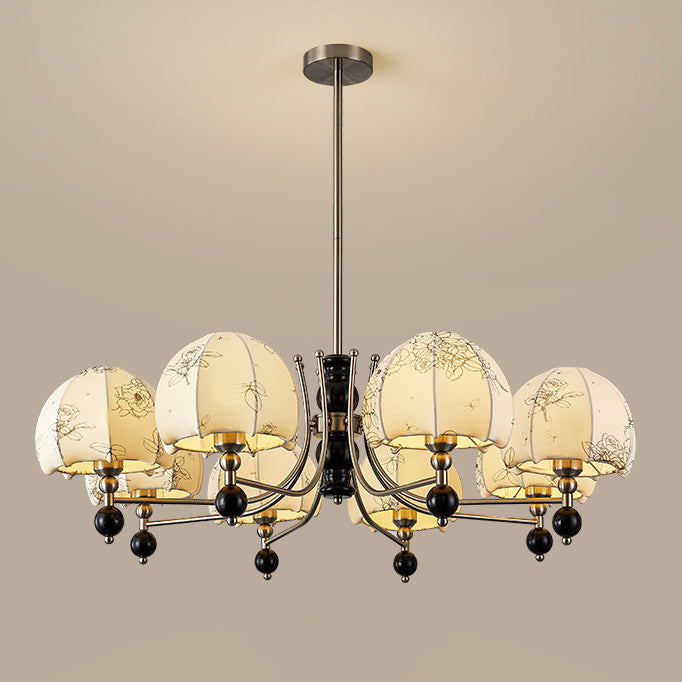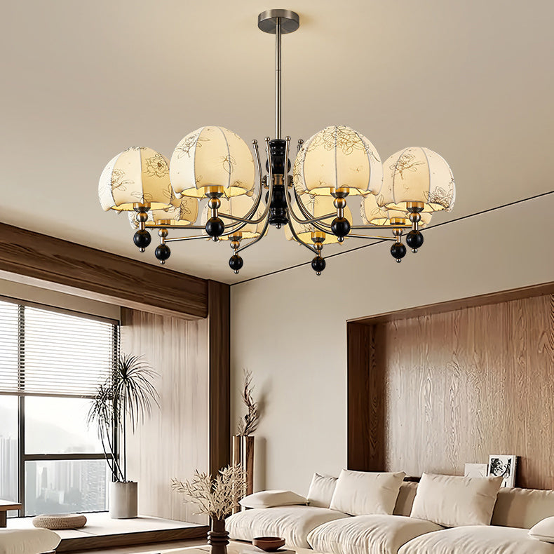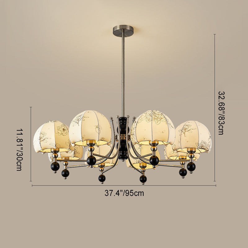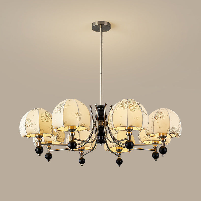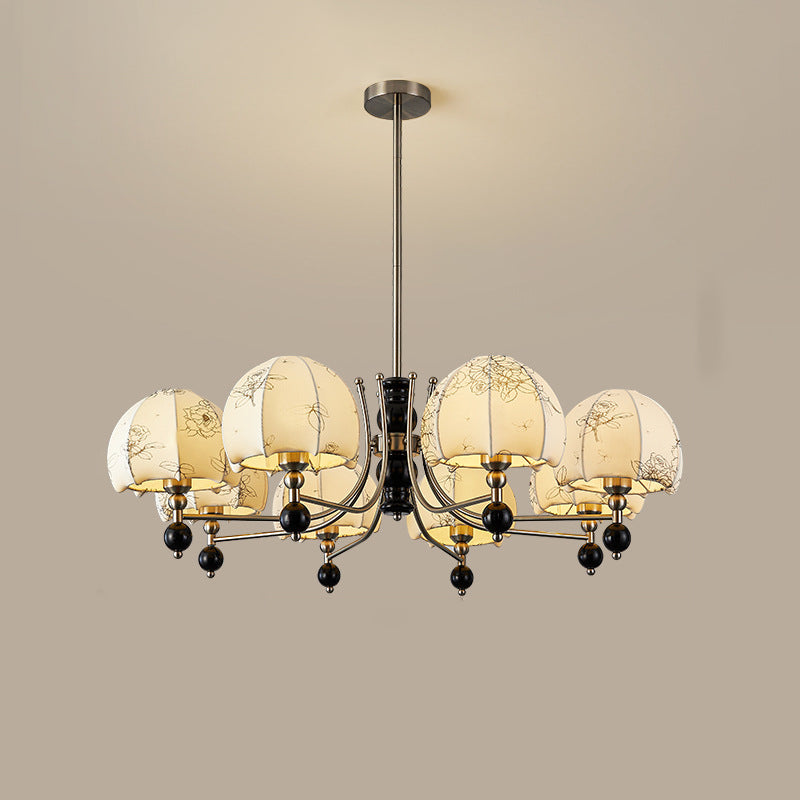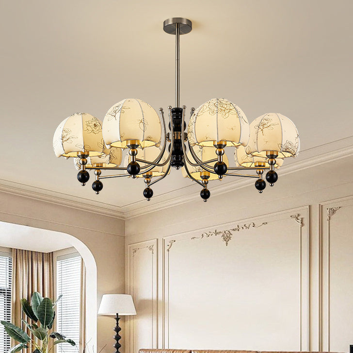 Traditional French Branch Curved Rod Dome Rubber Wood Iron Frame Fabric Shade 3/5/6/8 Light Chandelier For Living Room
