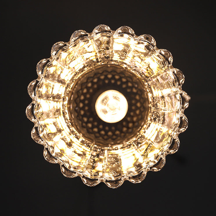 Traditional French Brass Checkered Glass Flower-Shape 1-Light Pendant Light For Living Room