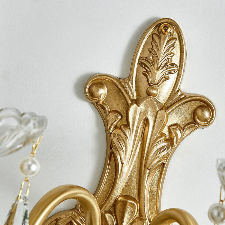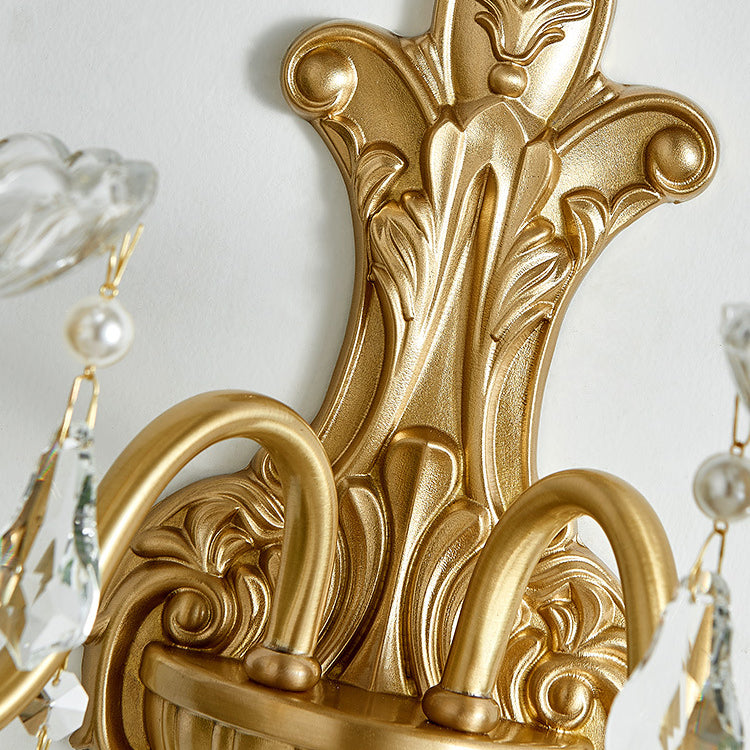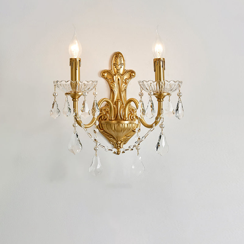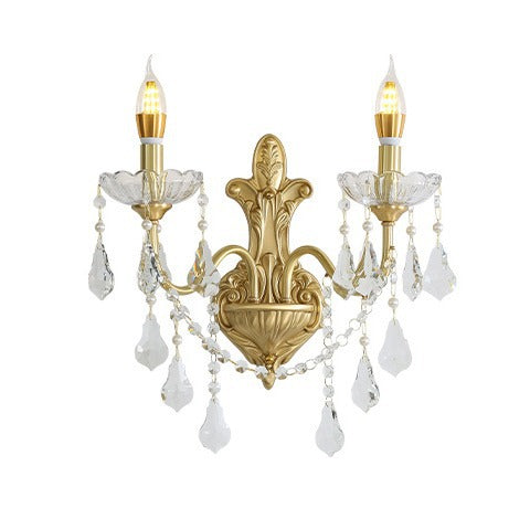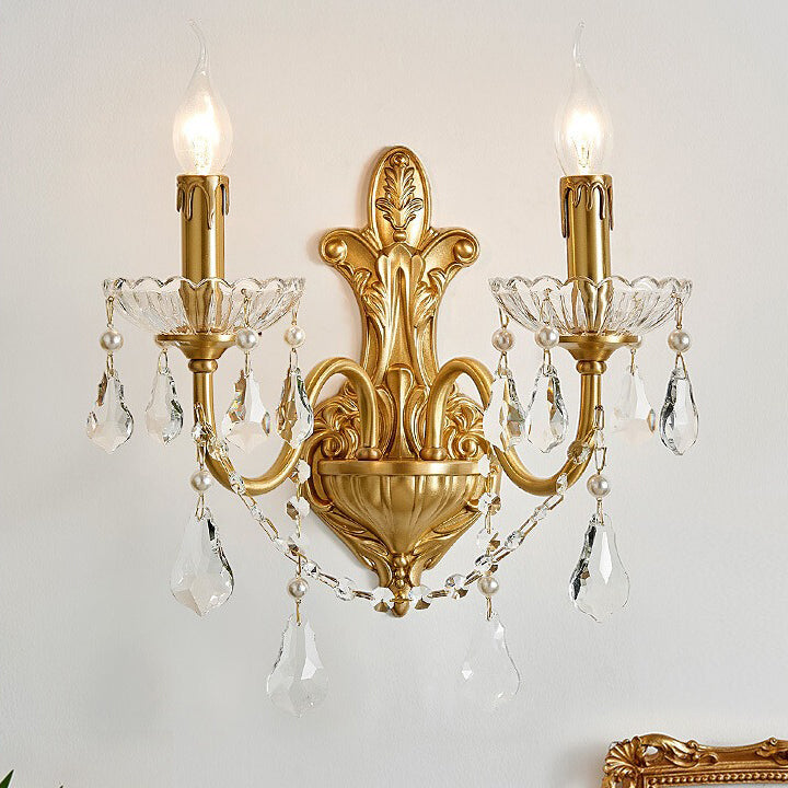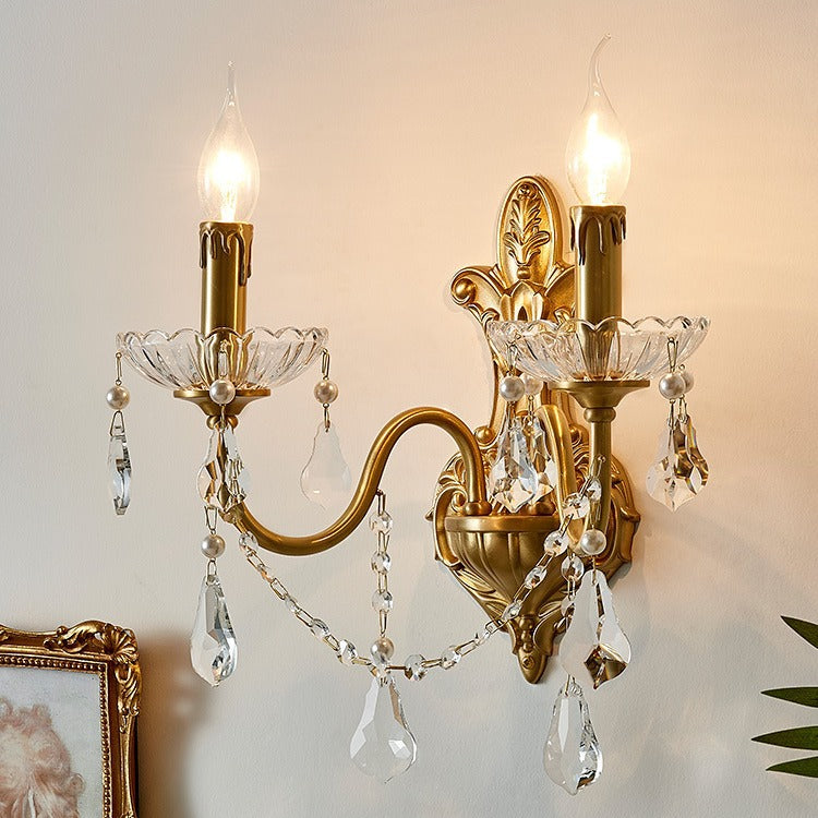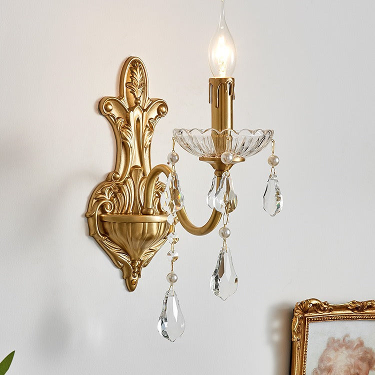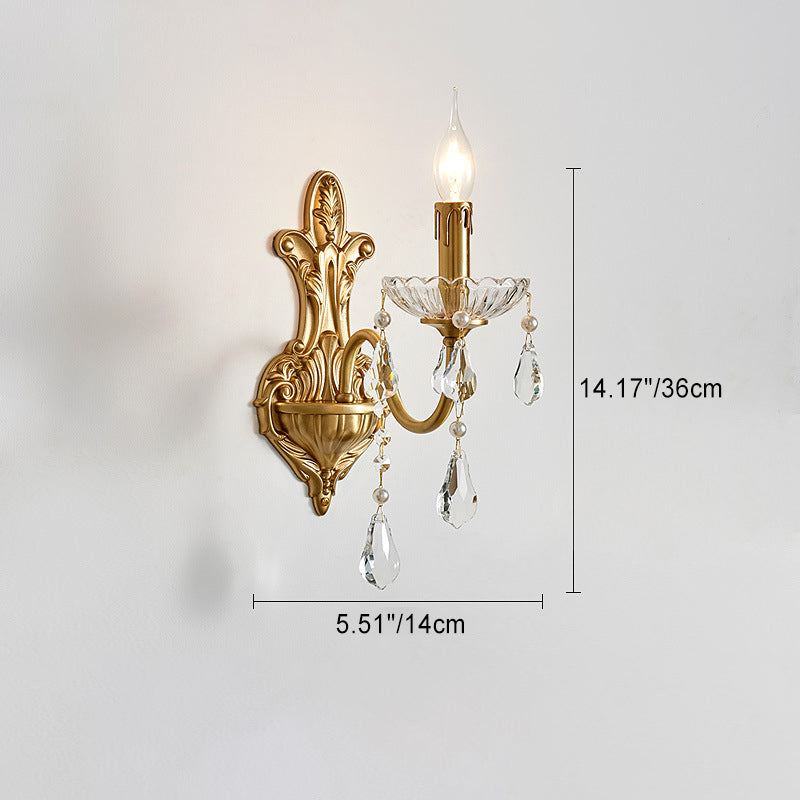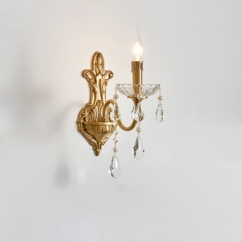 Traditional French Brass Crystal Glass Candlestick 1/2 Light Wall Sconce Lamp For Hallway
