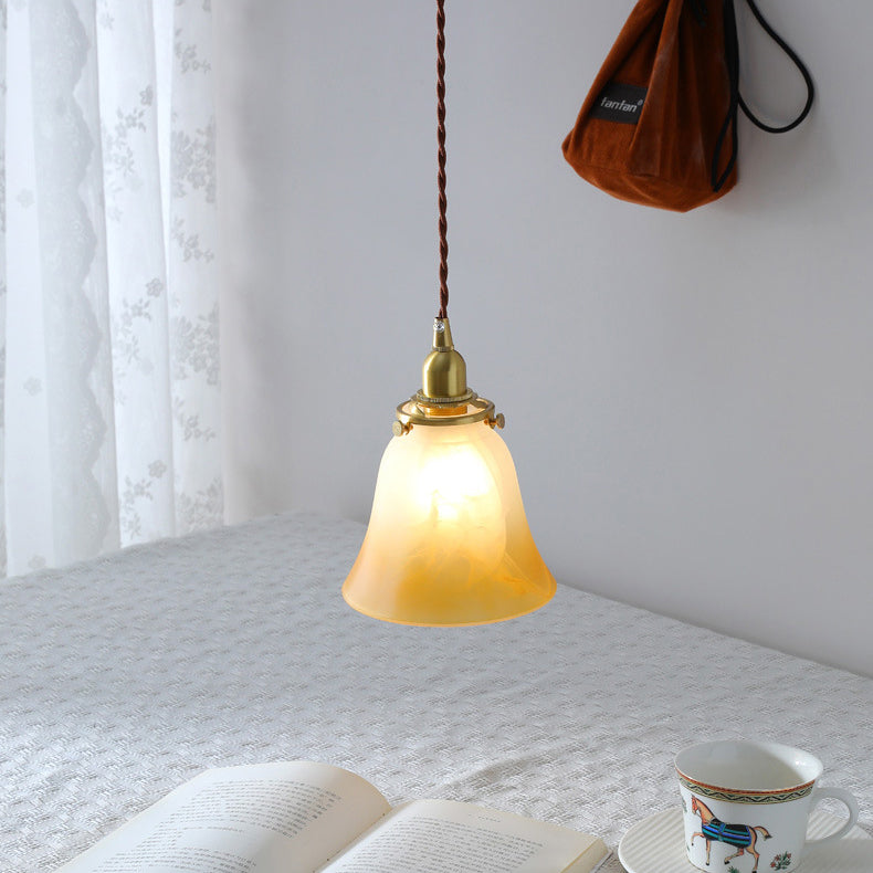 Traditional French Brass & Glass Floral 1-Light Pendant Light For Bedroom & Living Room