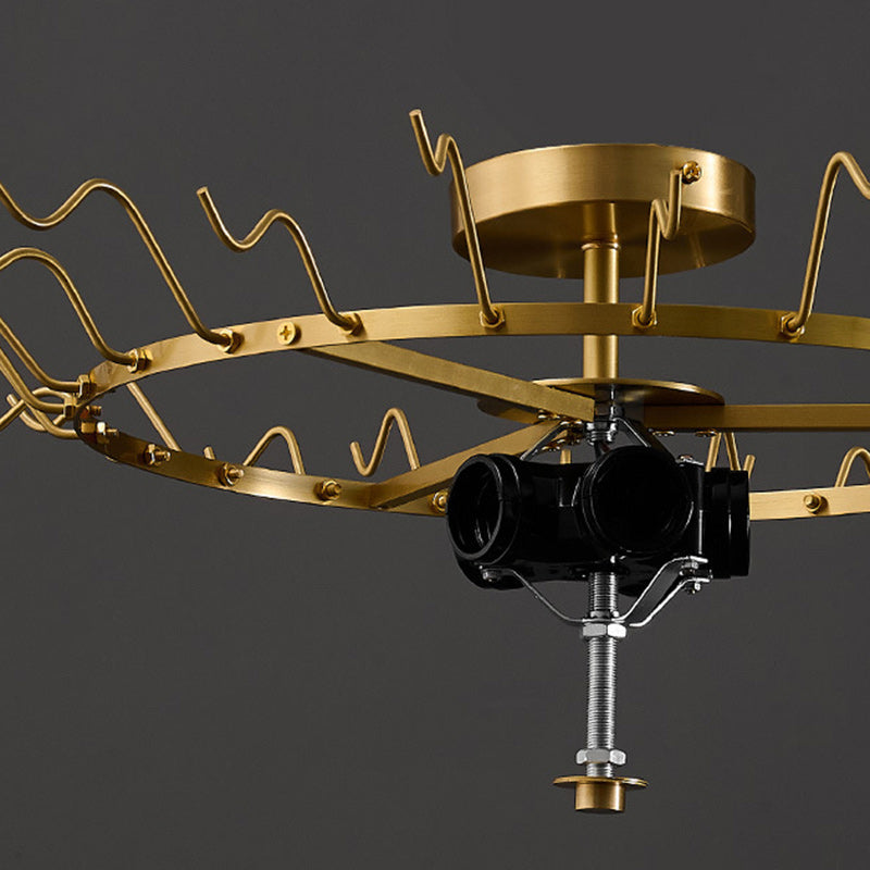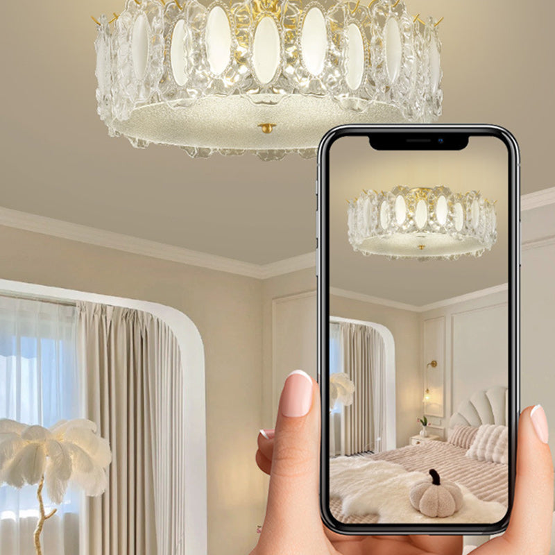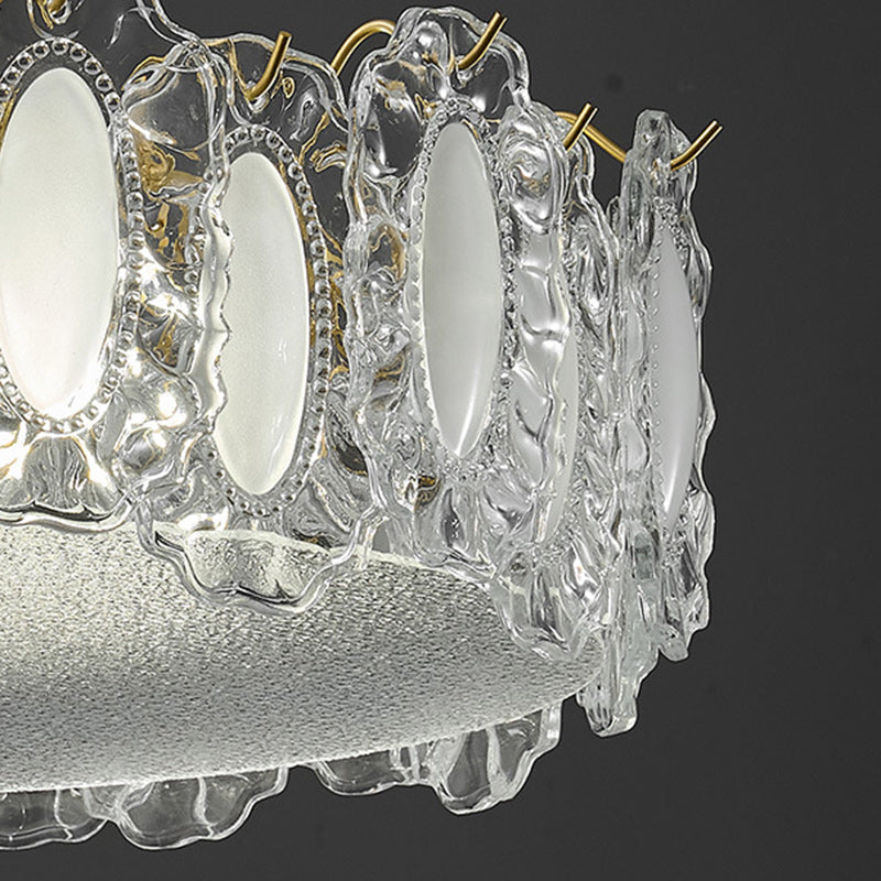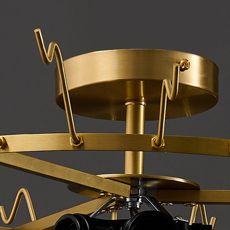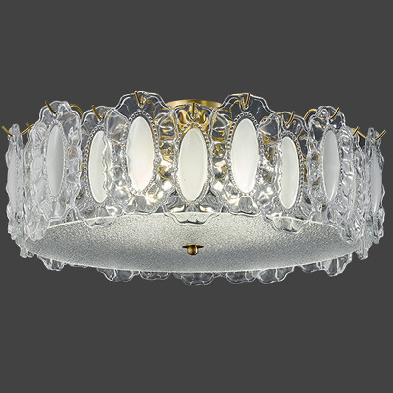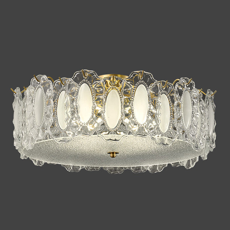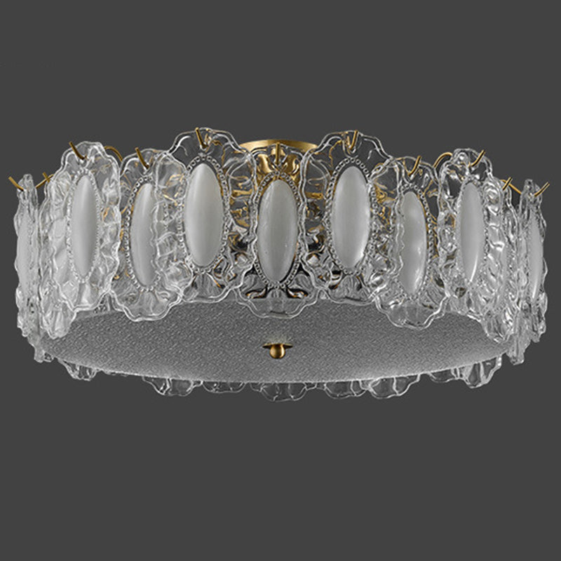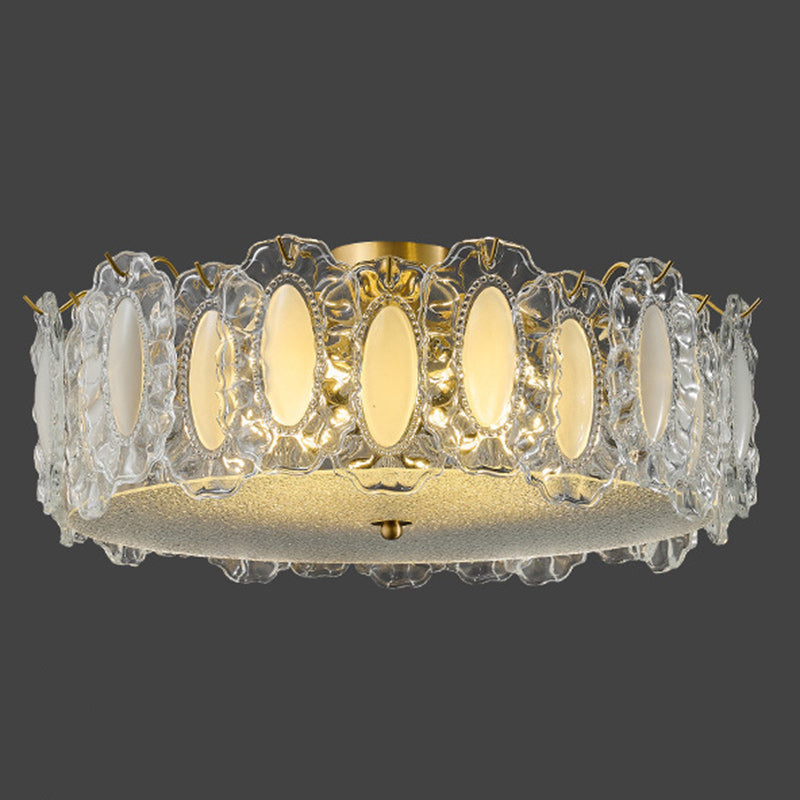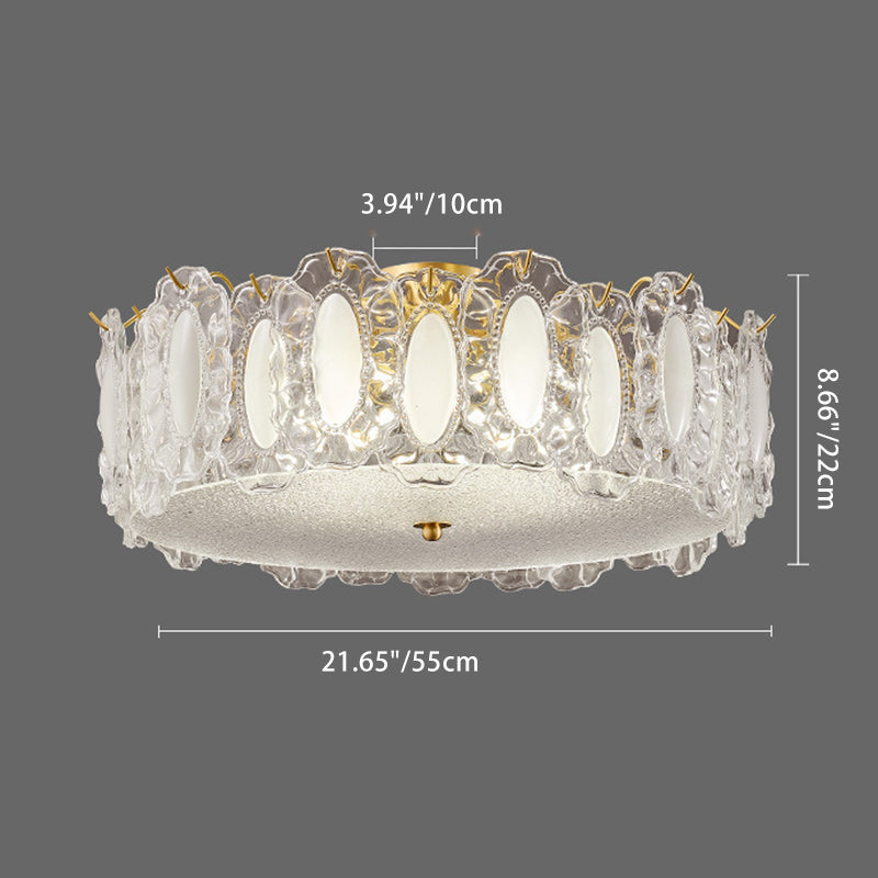 Traditional French Brass Glass Frosted Round Ripple 4/5 Light Semi-Flush Mount Ceiling Light For Bedroom