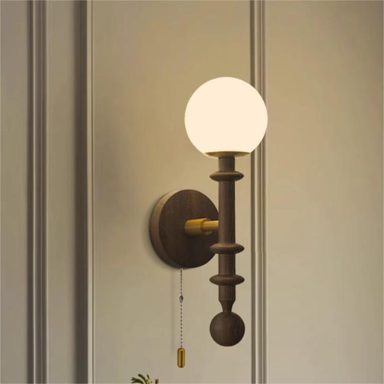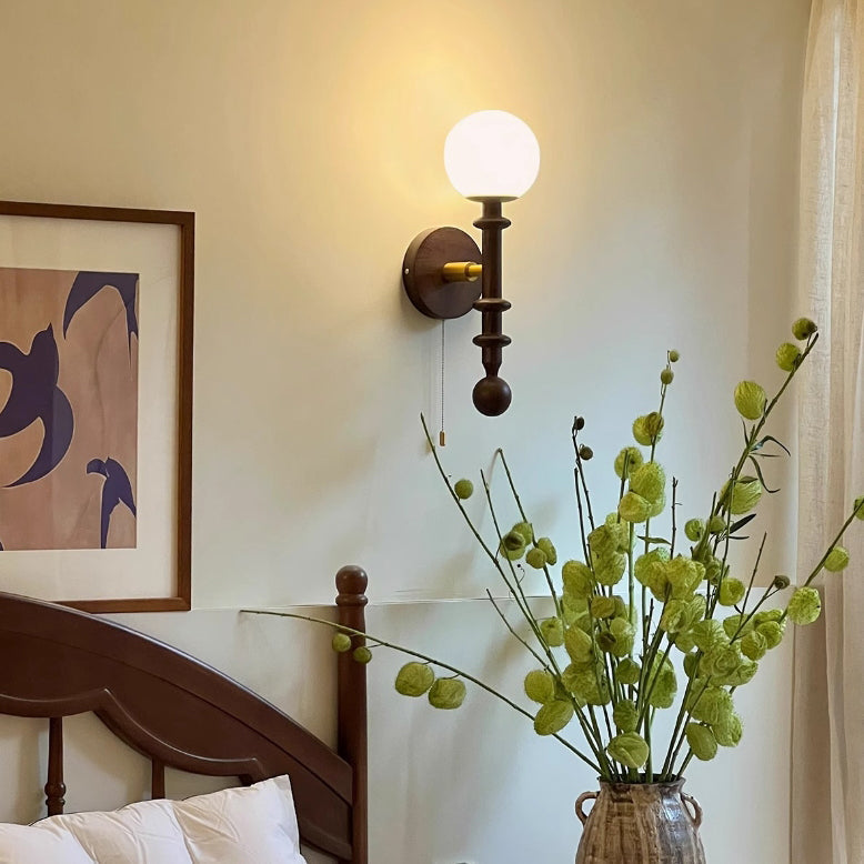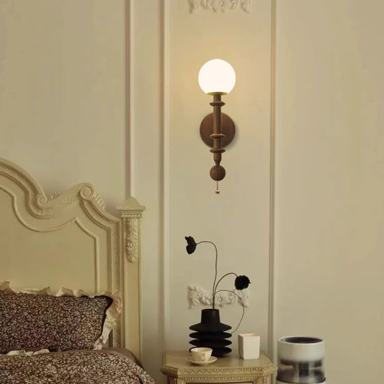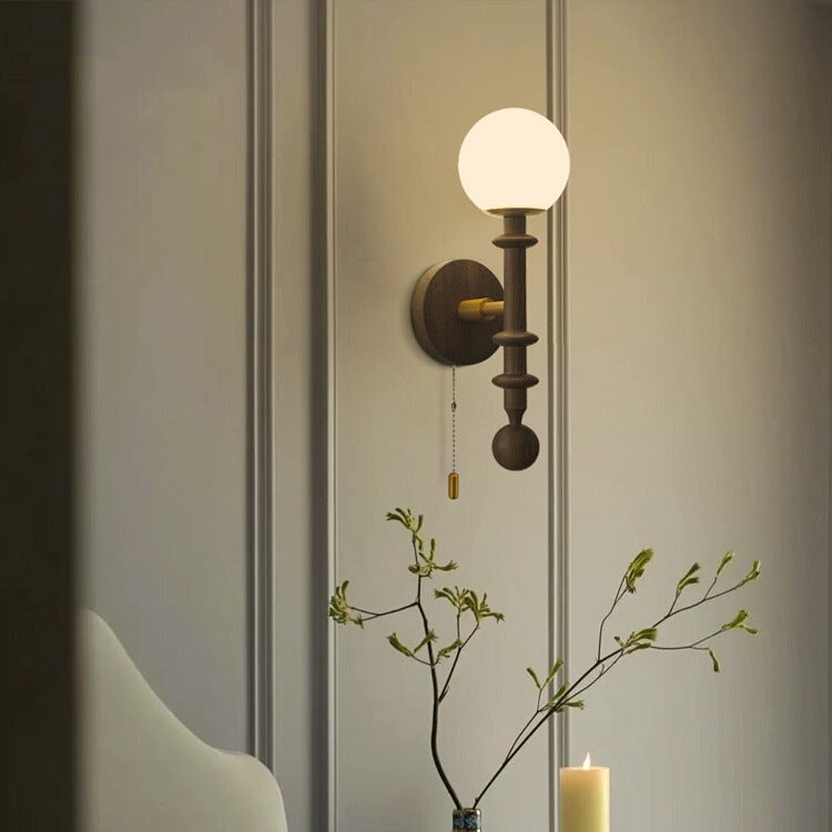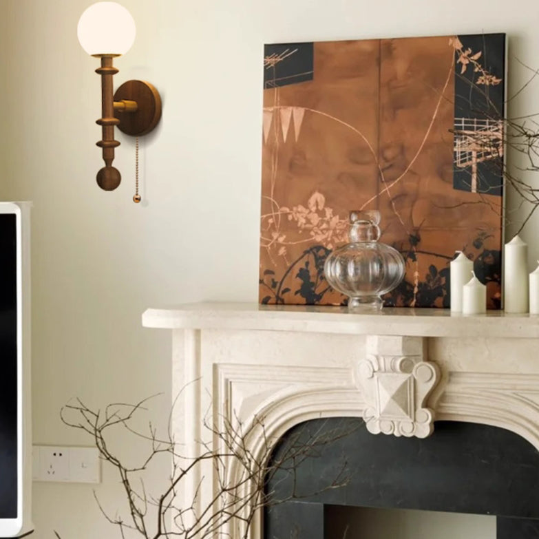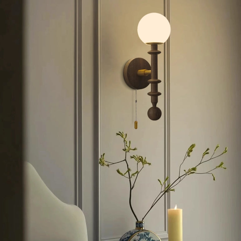 Traditional French Column Wood Glass 1-Light Wall Sconce Lamp For Living Room
