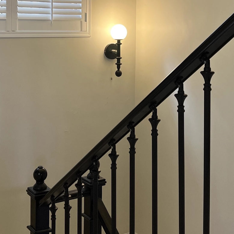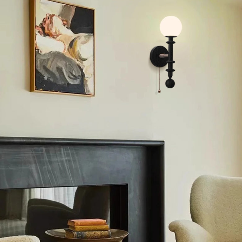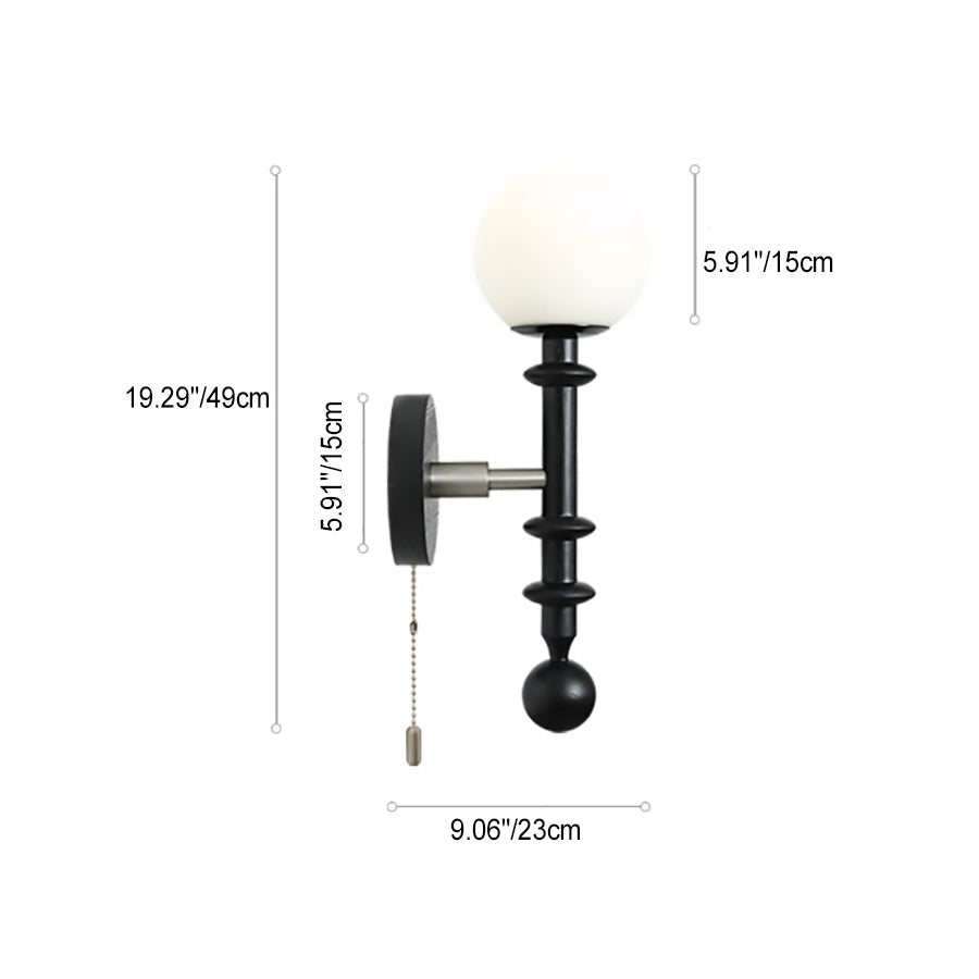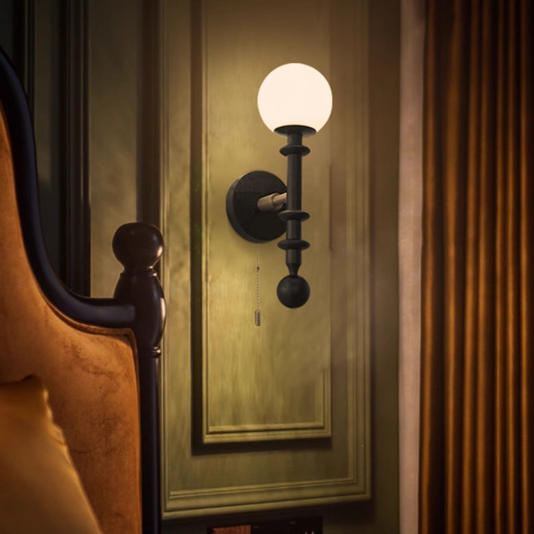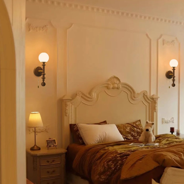 Traditional French Column Wood Glass 1-Light Wall Sconce Lamp For Living Room