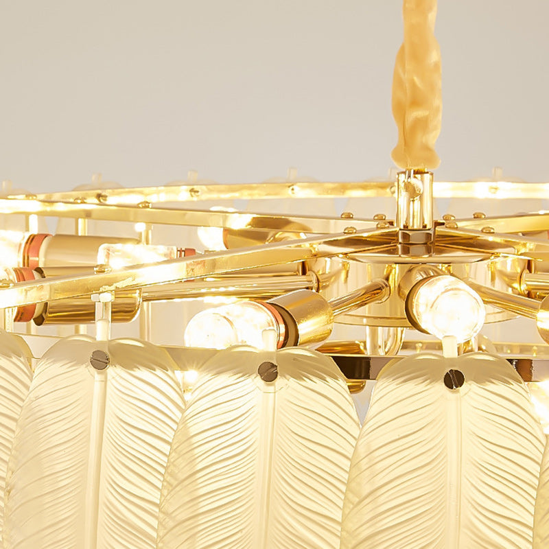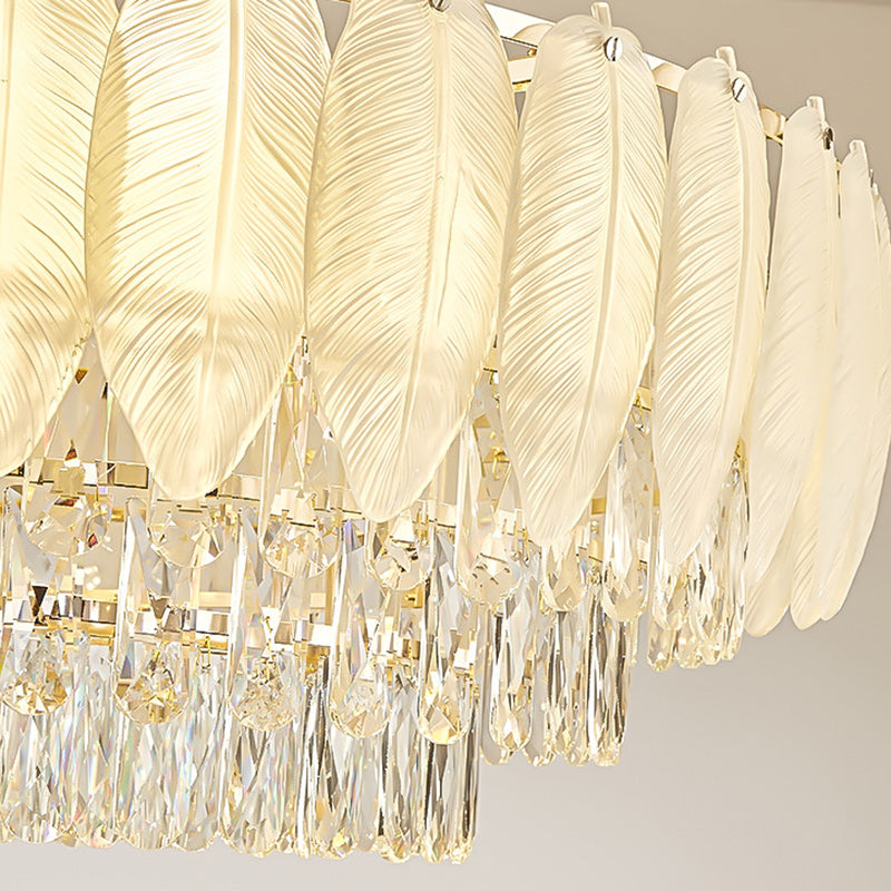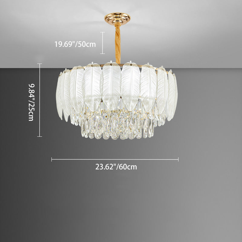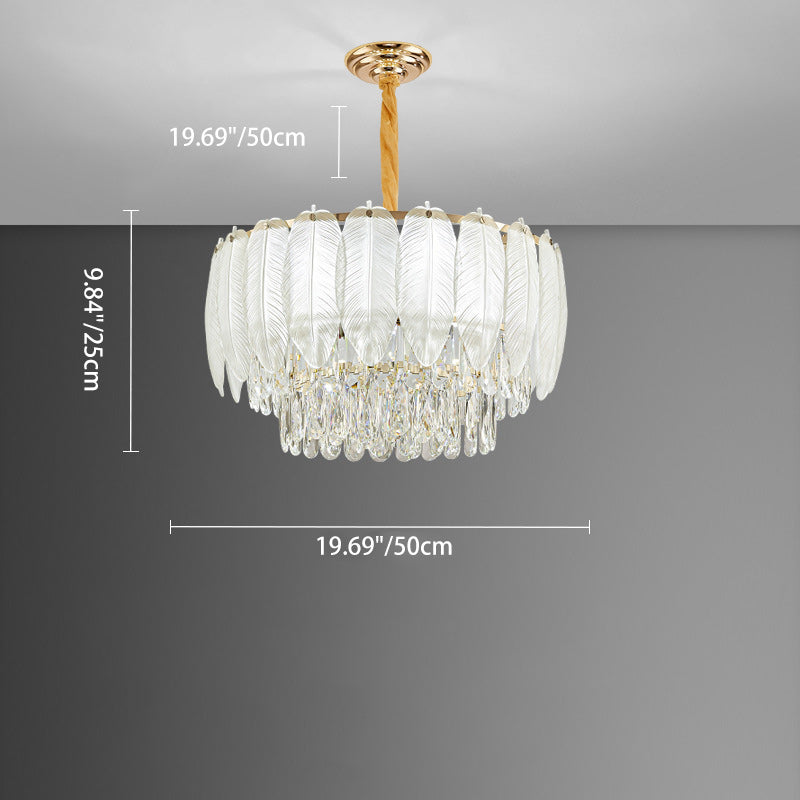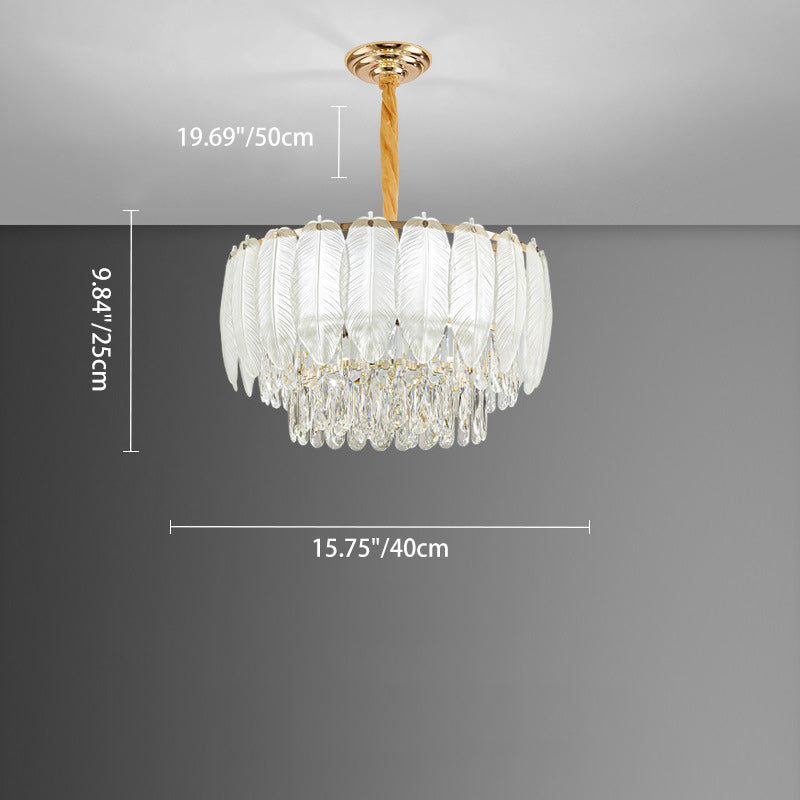 Traditional French Cream Feather Round Iron Crystal 5/8/11/15/21 Light Chandelier For Living Room