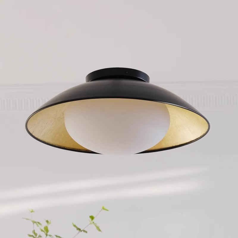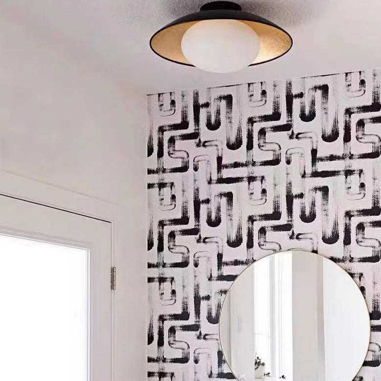 Traditional French Dome Hardware Glass Globe Shade 1-Light Semi-Flush Mount Ceiling Light For Living Room