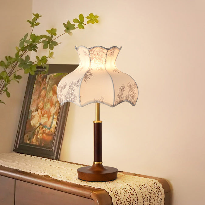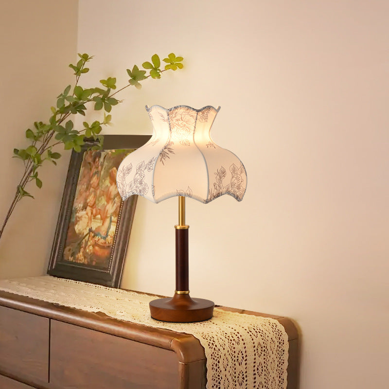 Traditional French Dome Metal Wood Fabric 1-Light Table Lamp For Bedroom