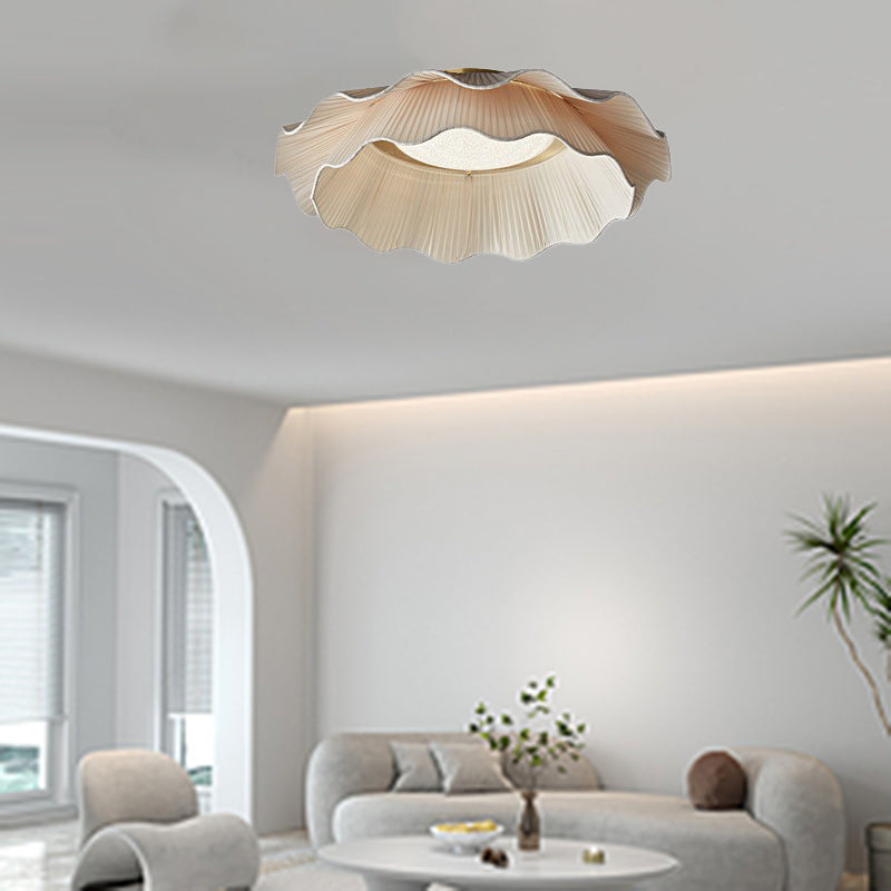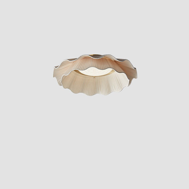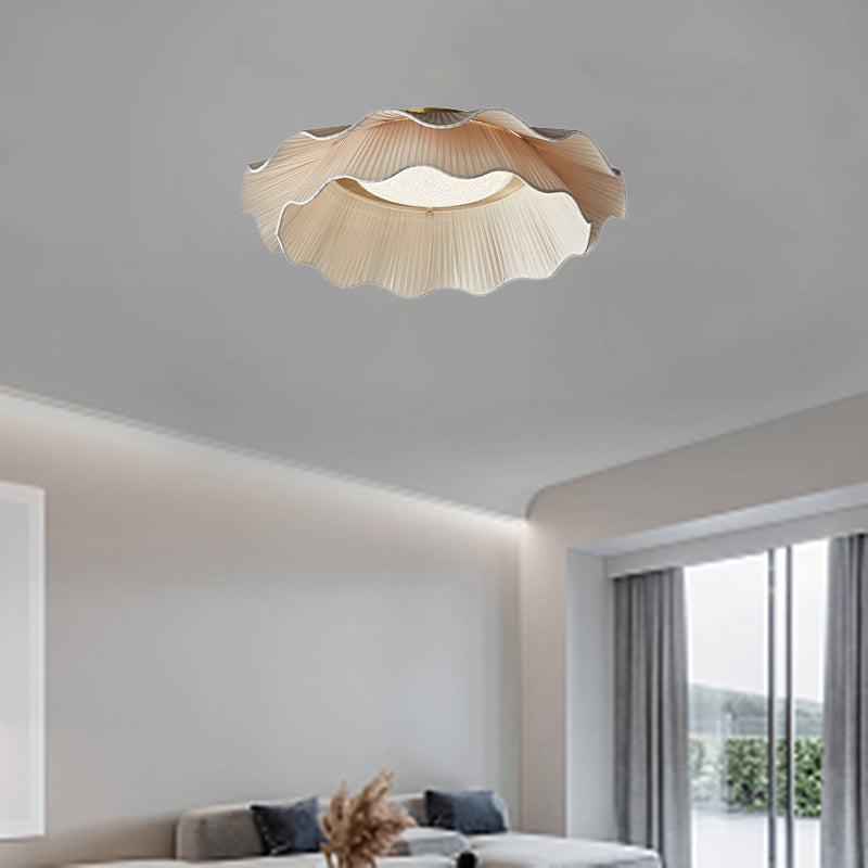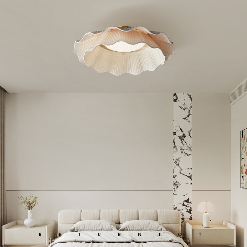 Traditional French Double Layers Fabric Brass LED Flush Mount Ceiling Light For Bedroom