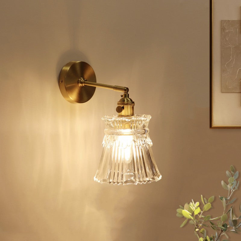 Traditional French Drum Copper Glass 1-Light Wall Sconce Lamp For Living Room