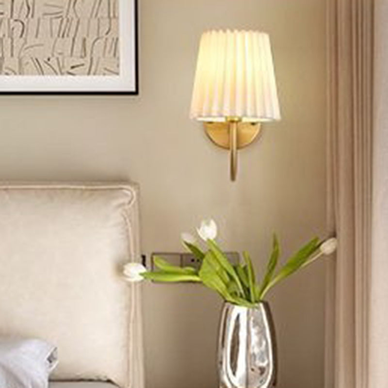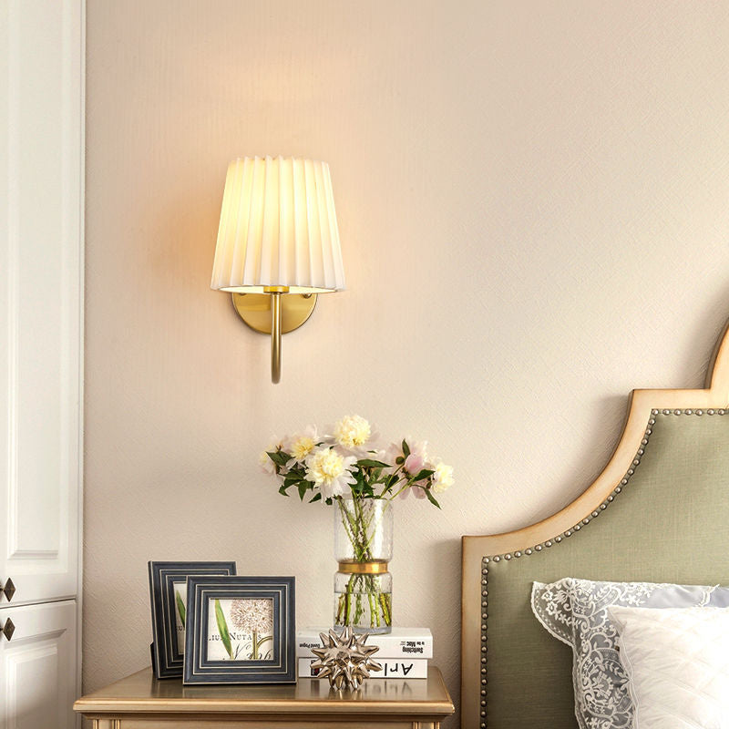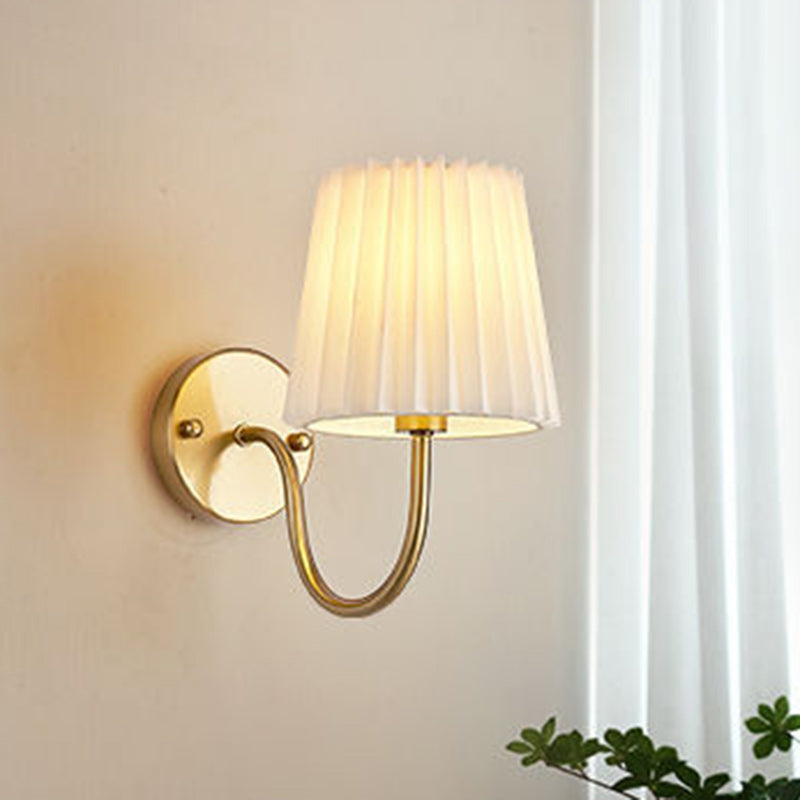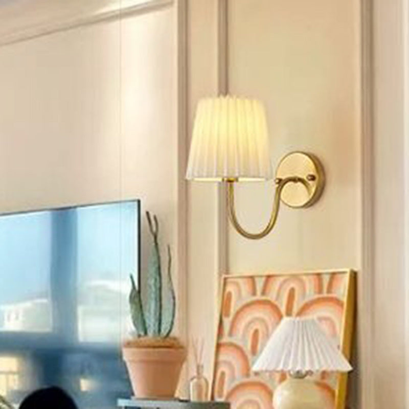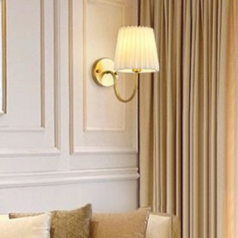 Traditional French Drum Iron Fabric Glass 1-Light Wall Sconce Lamp For Living Room
