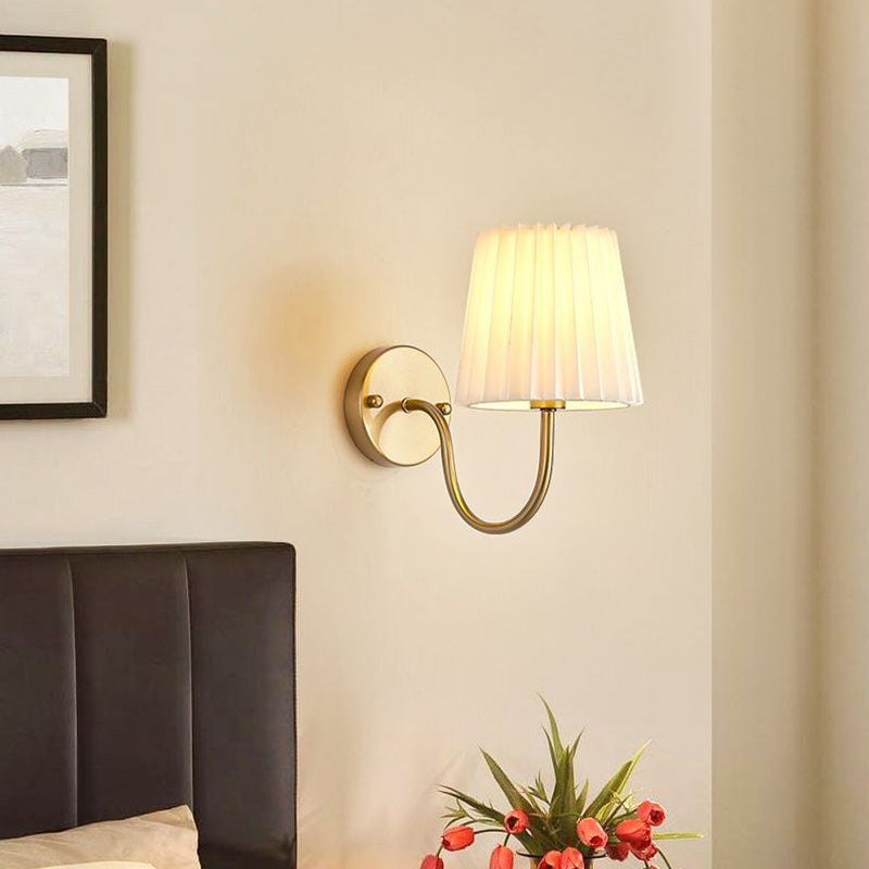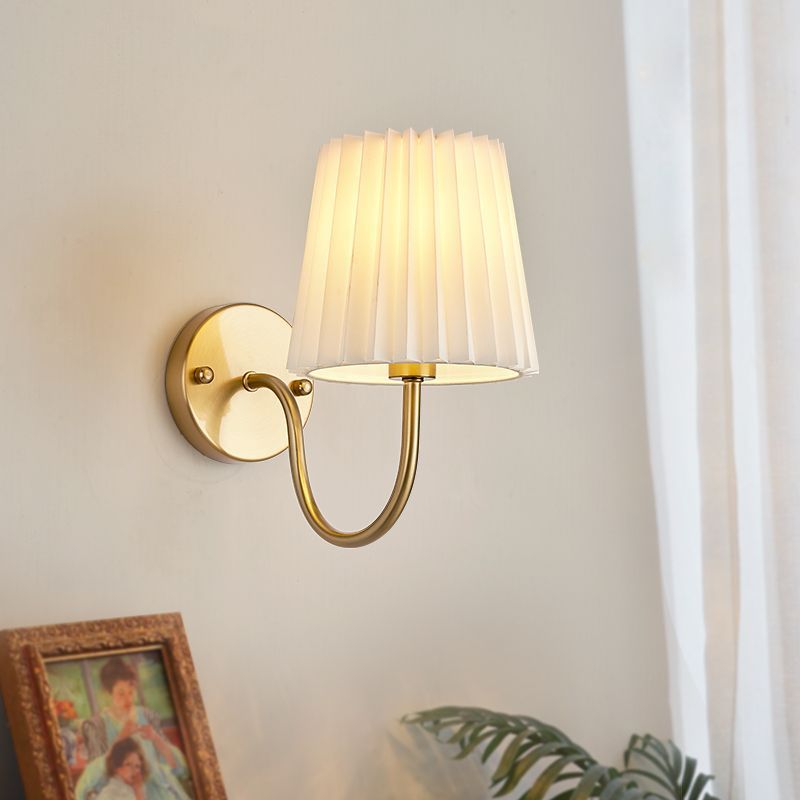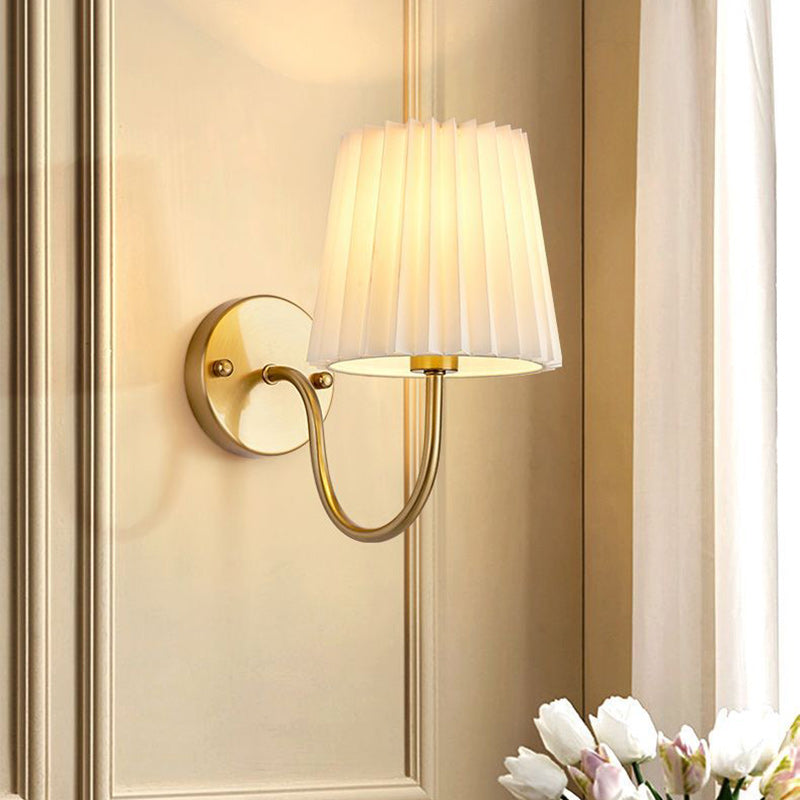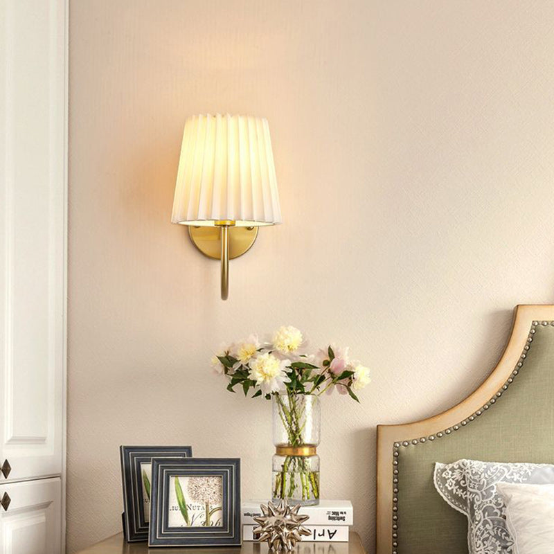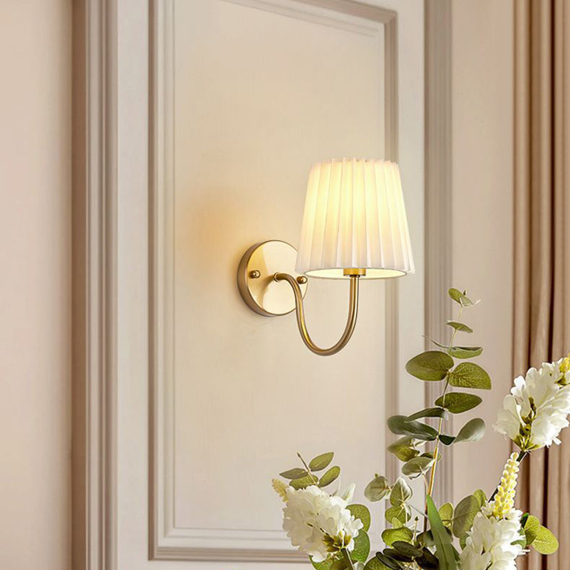 Traditional French Drum Iron Fabric Glass 1-Light Wall Sconce Lamp For Living Room