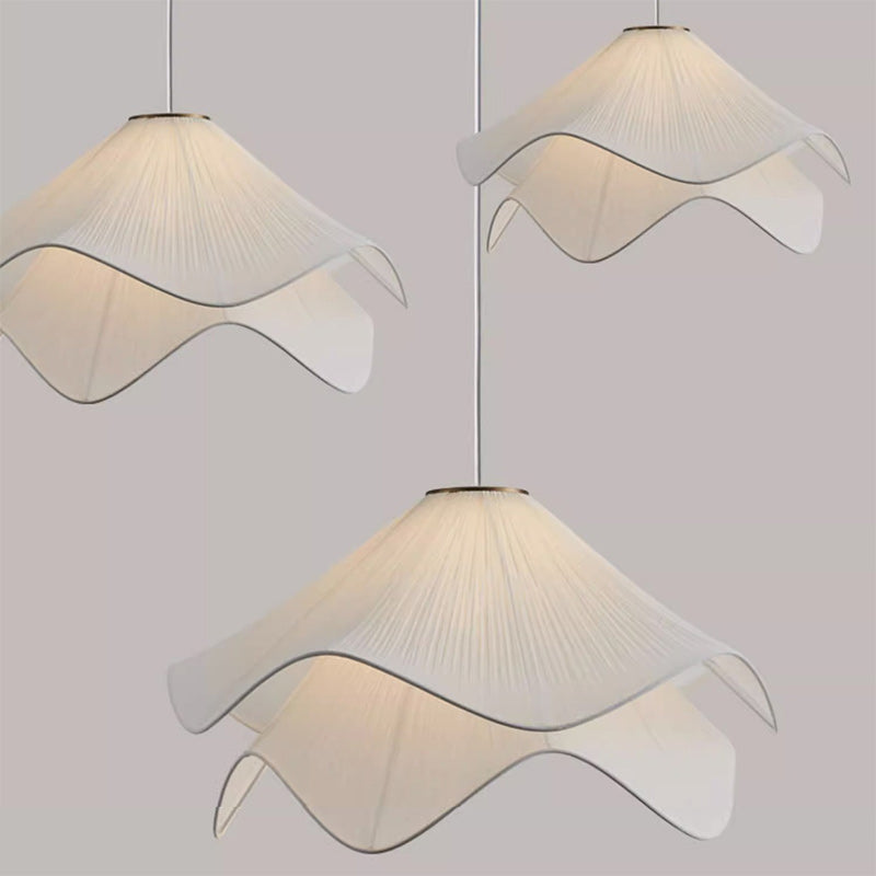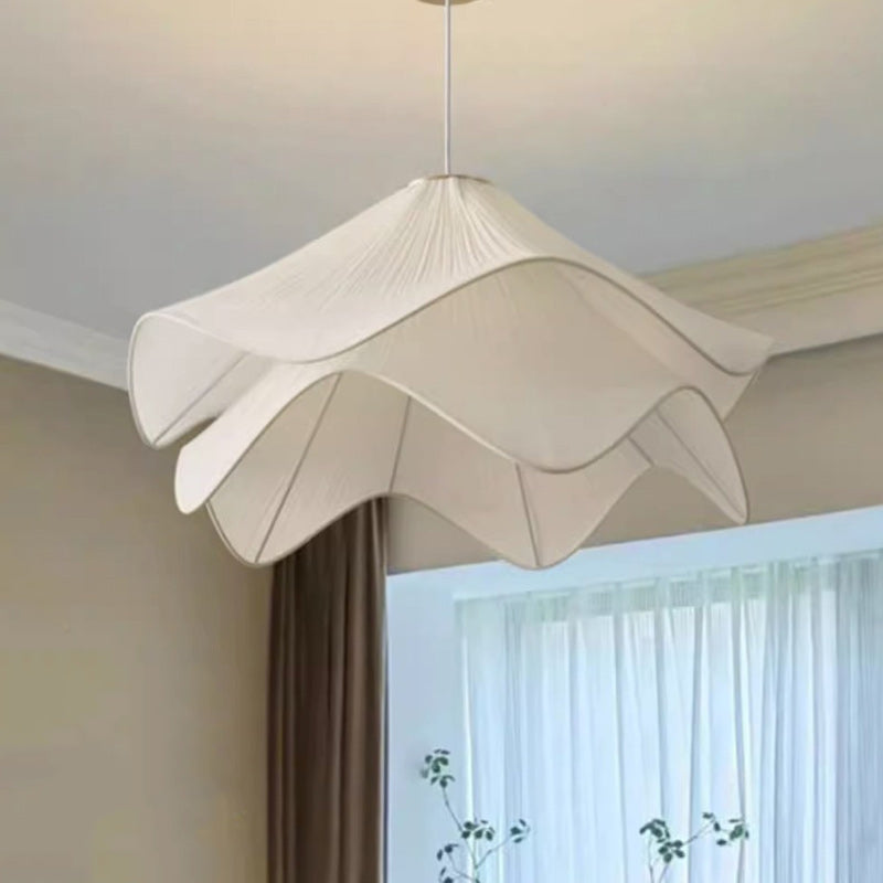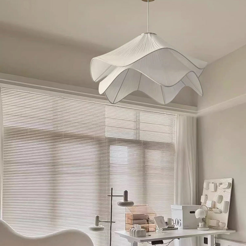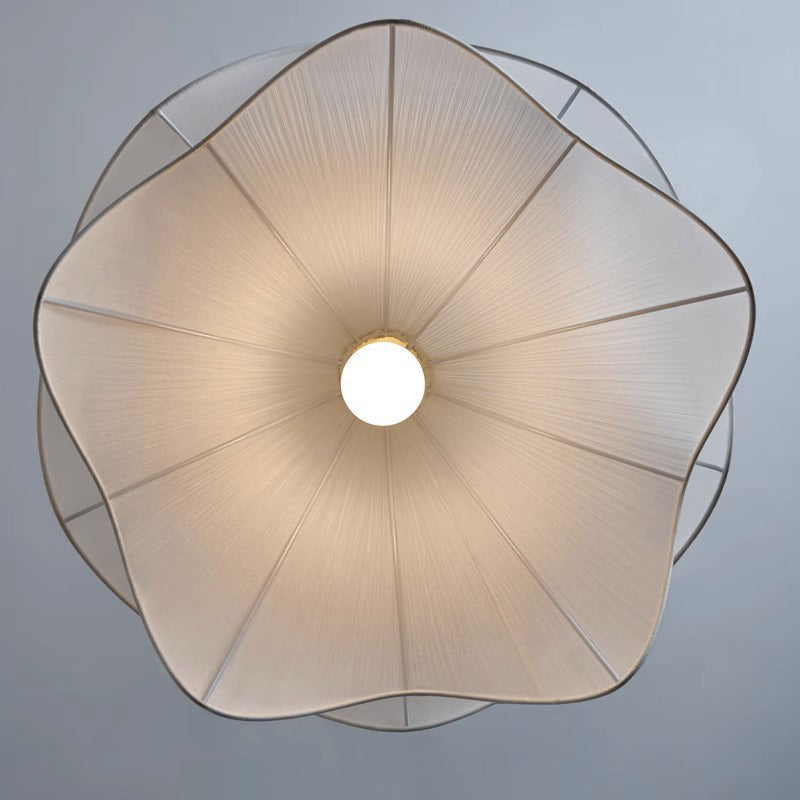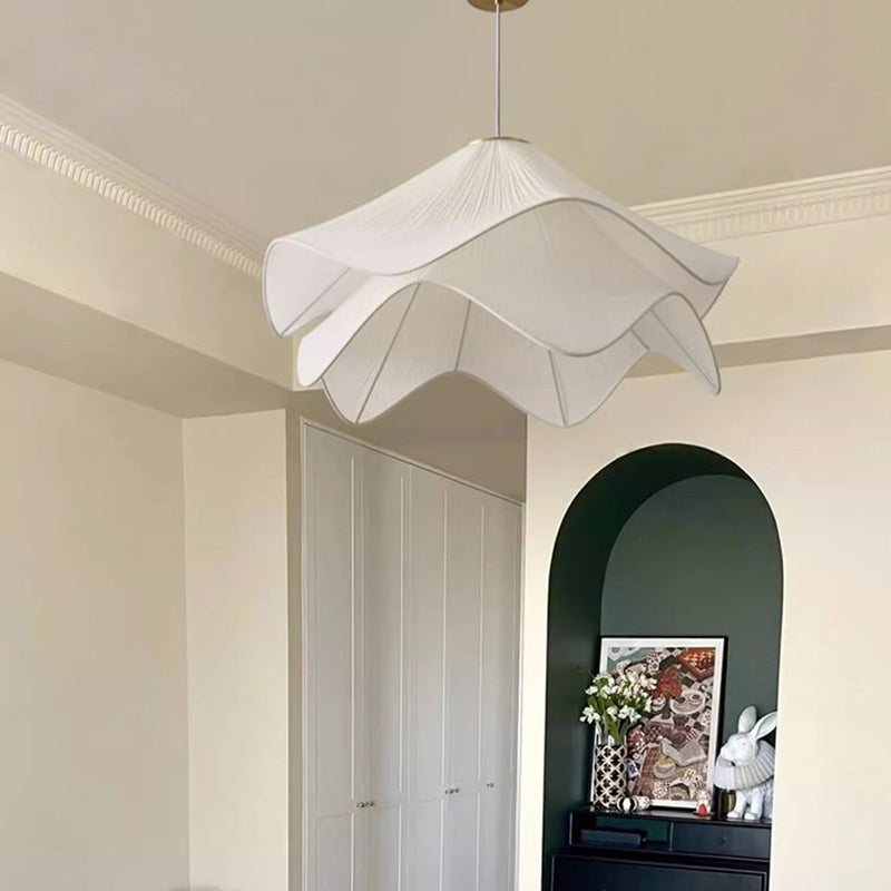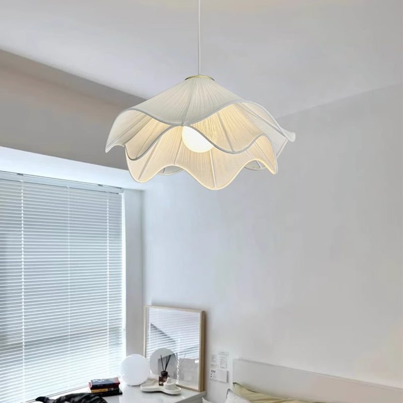 Traditional French Fabric Hat Wave Petal 2-Tier 1-Light Pendant Light For Bedroom