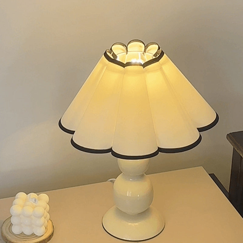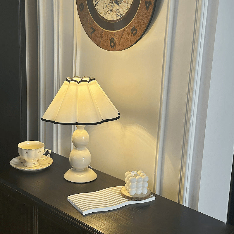 Traditional French Fabric PVC Iron Conical Pleated Gourd 1-Light Table Lamp For Bedside