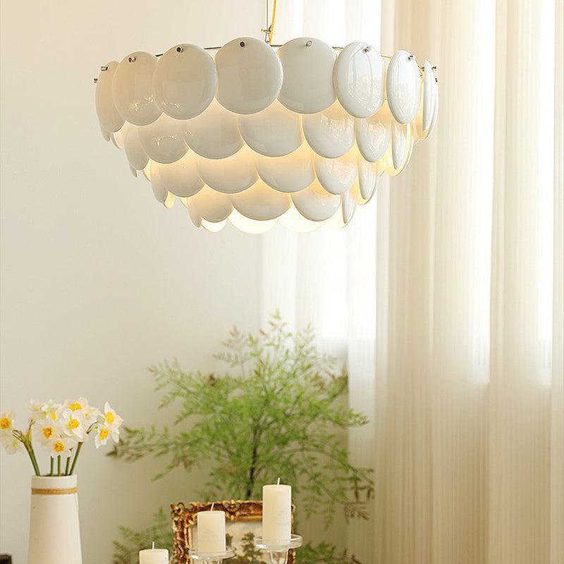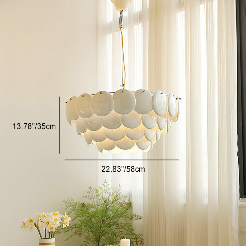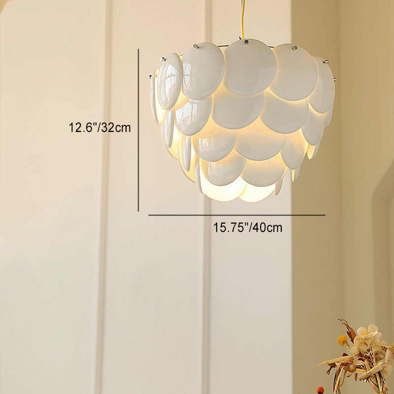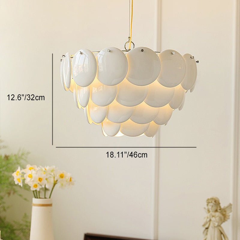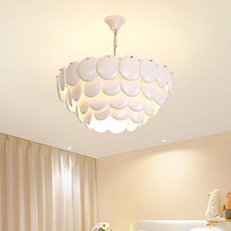 Traditional French Fish Scale Round Iron Acrylic 5/7/9 Light Chandelier For Living Room