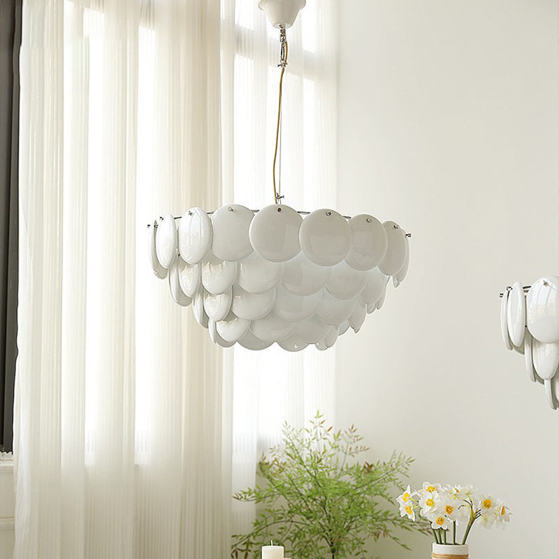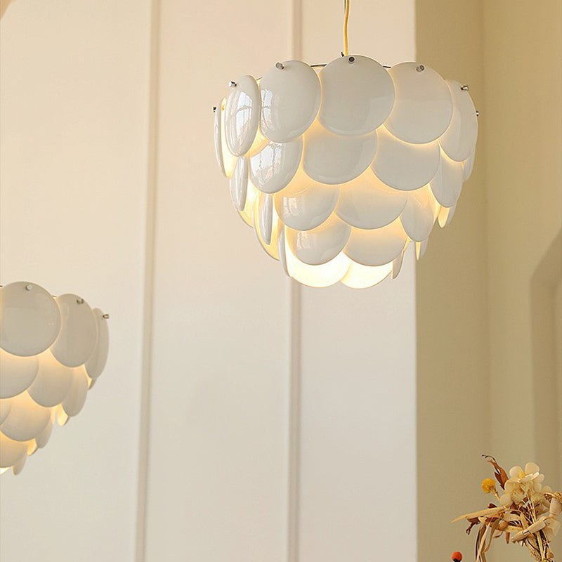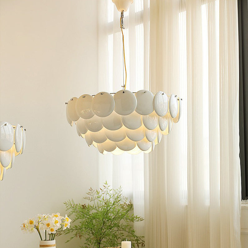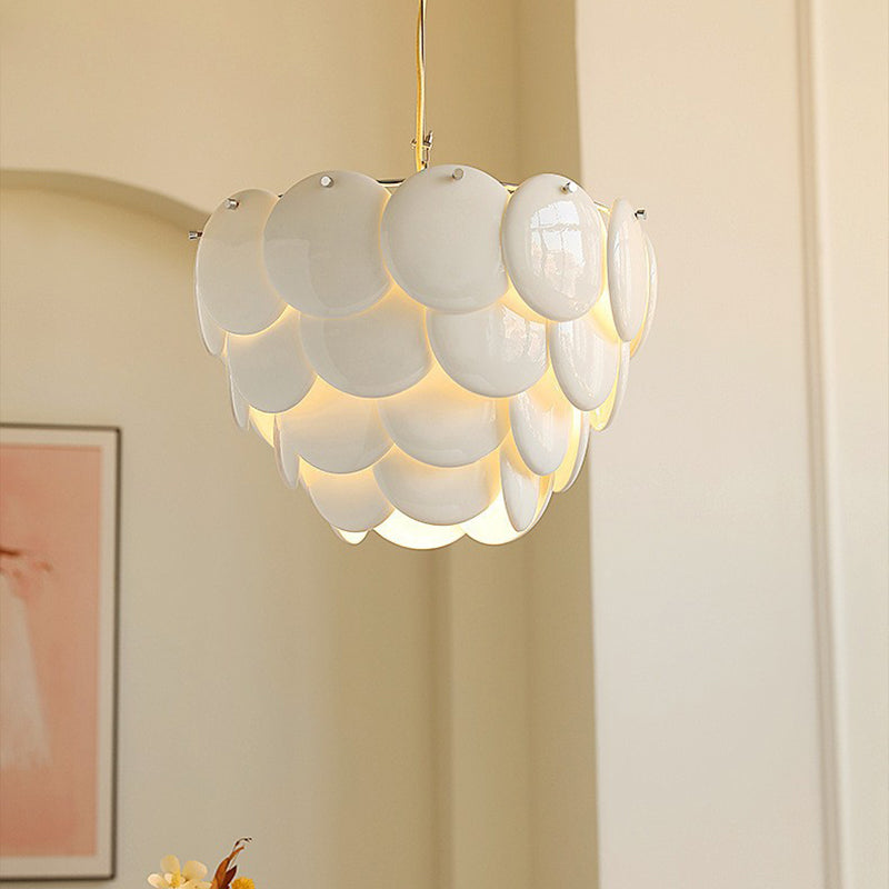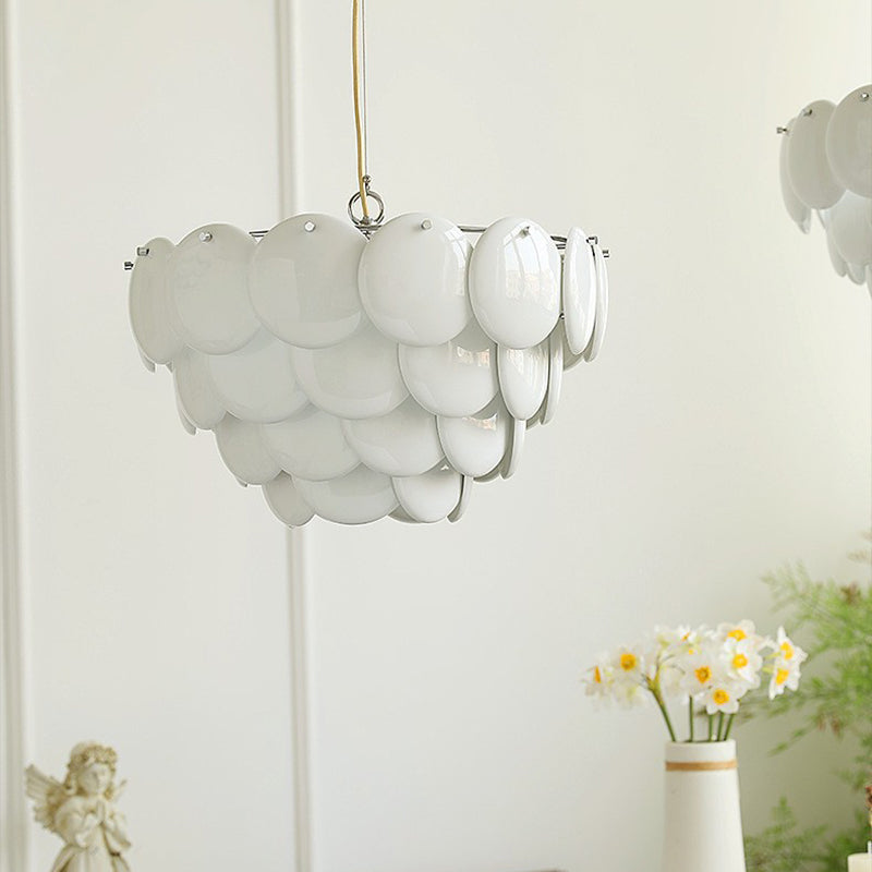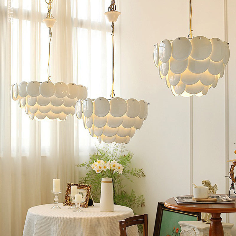 Traditional French Fish Scale Round Iron Acrylic 5/7/9 Light Chandelier For Living Room