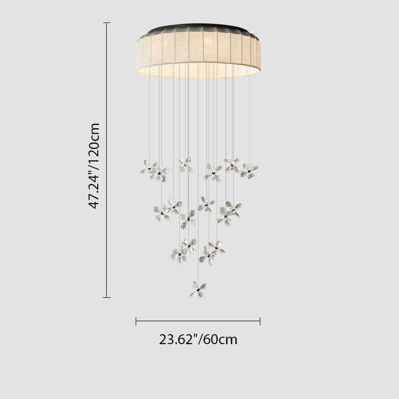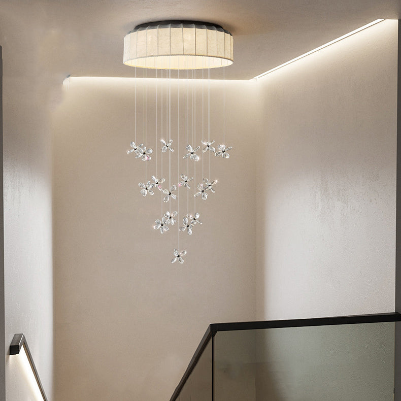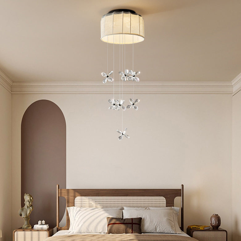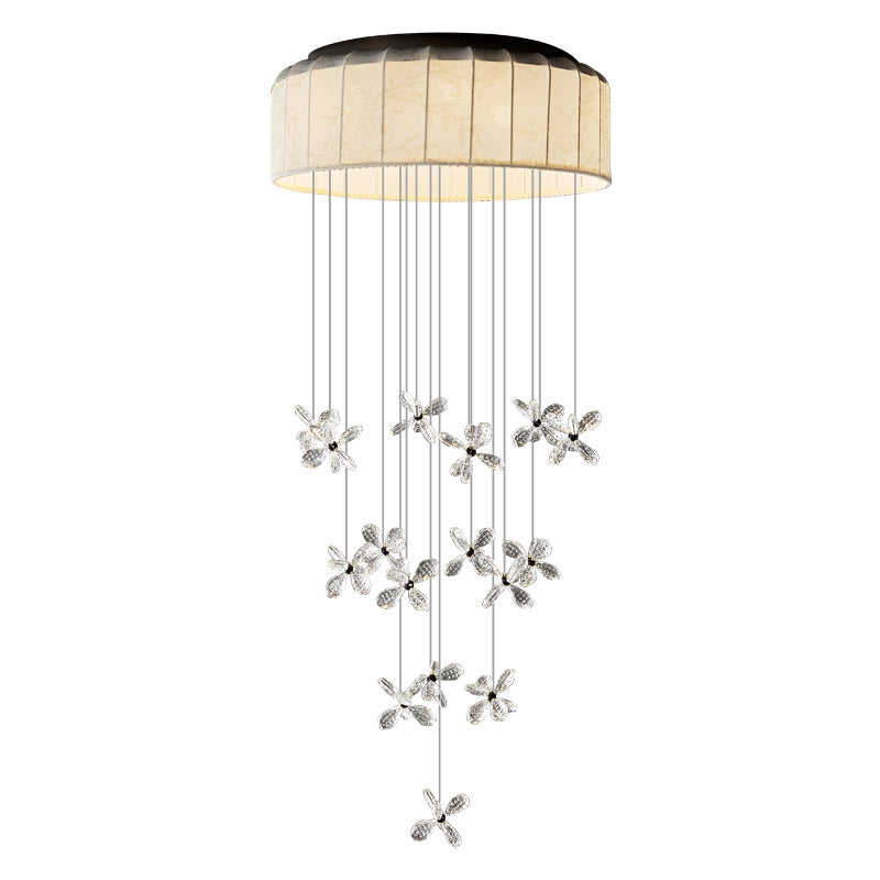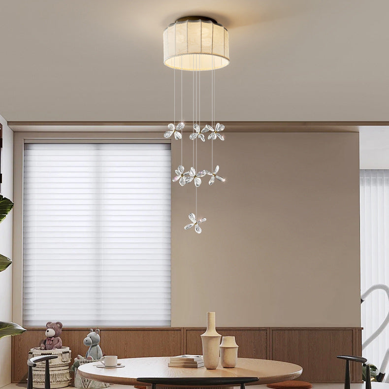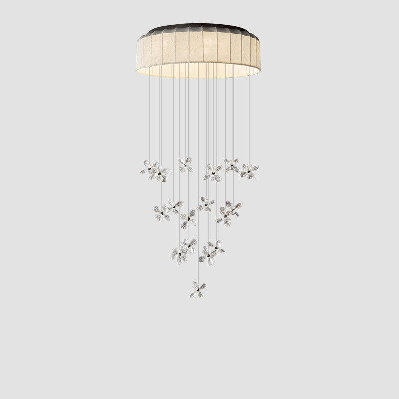 Traditional French Floating Crystal Flower Fabric LED Chandelier For Living Room