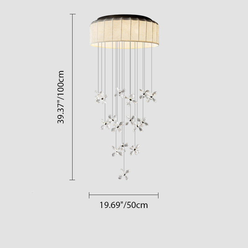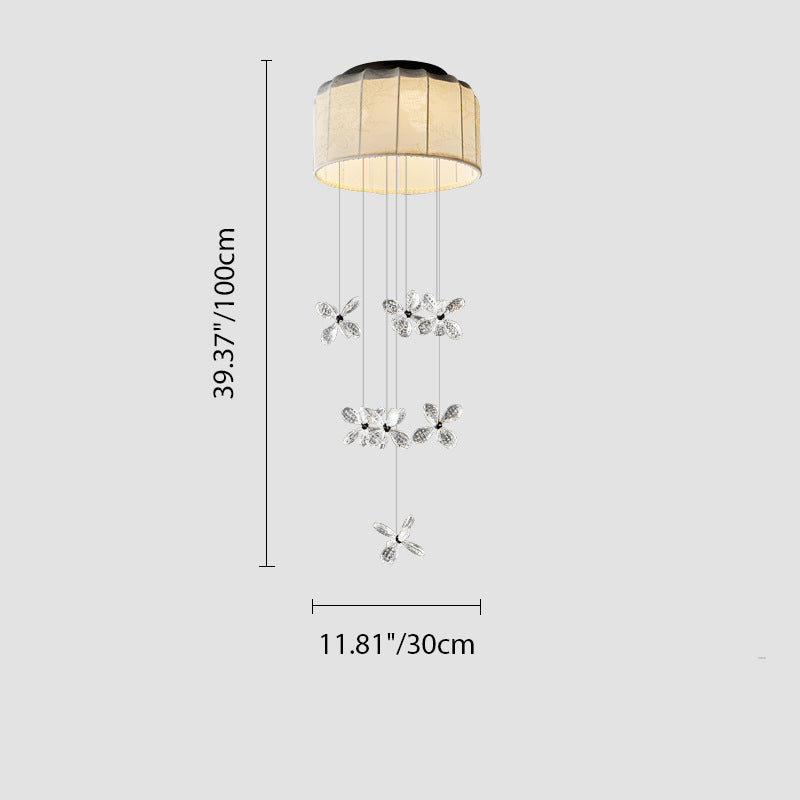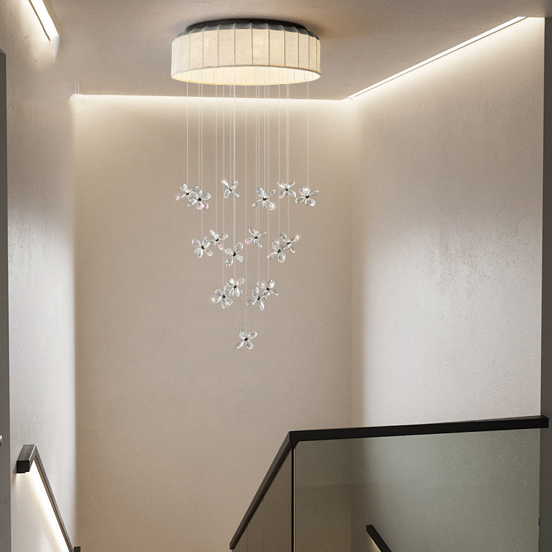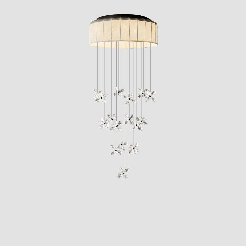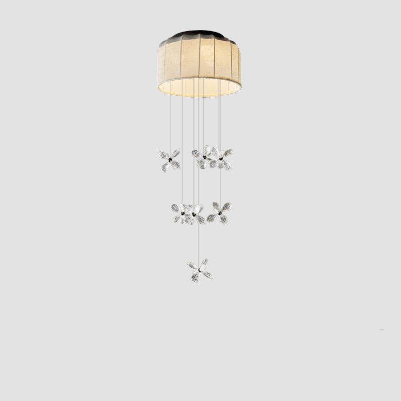 Traditional French Floating Crystal Flower Fabric LED Chandelier For Living Room