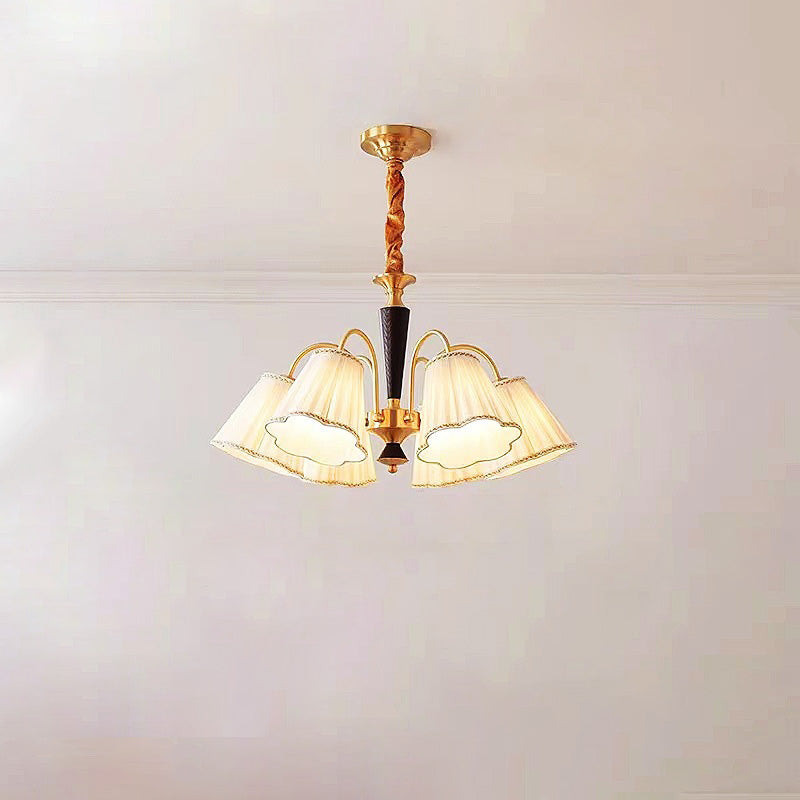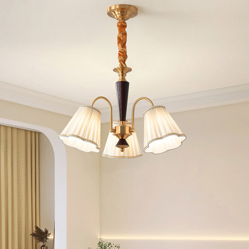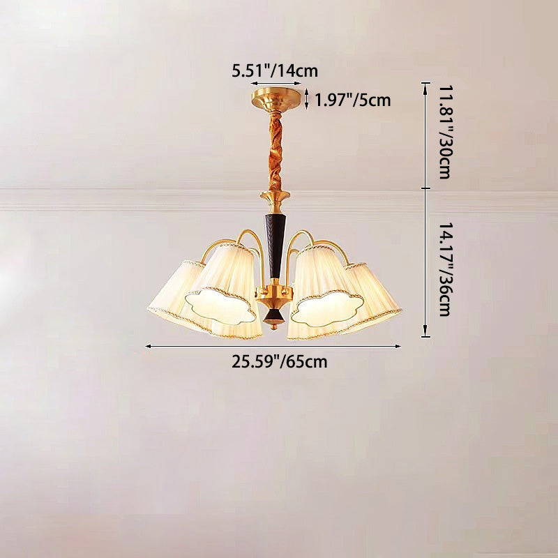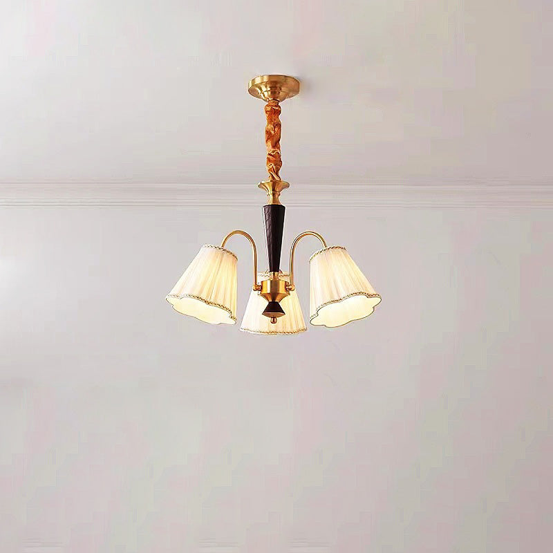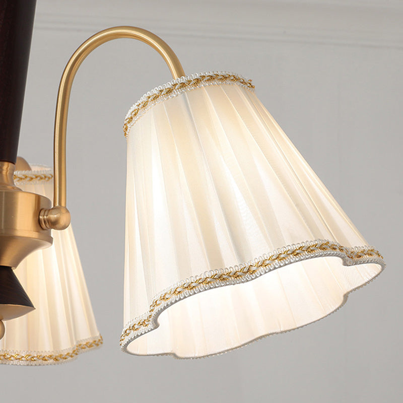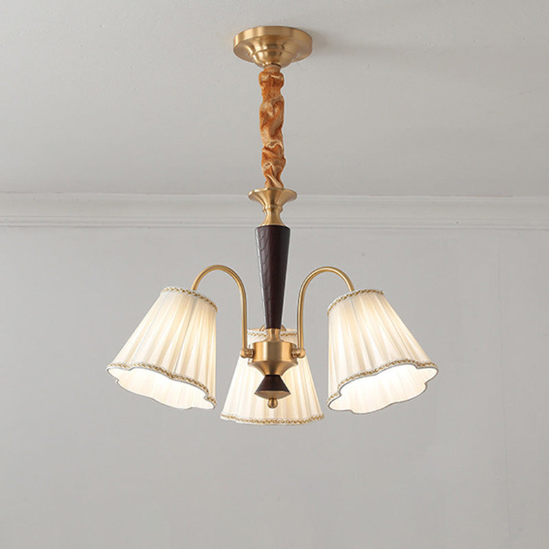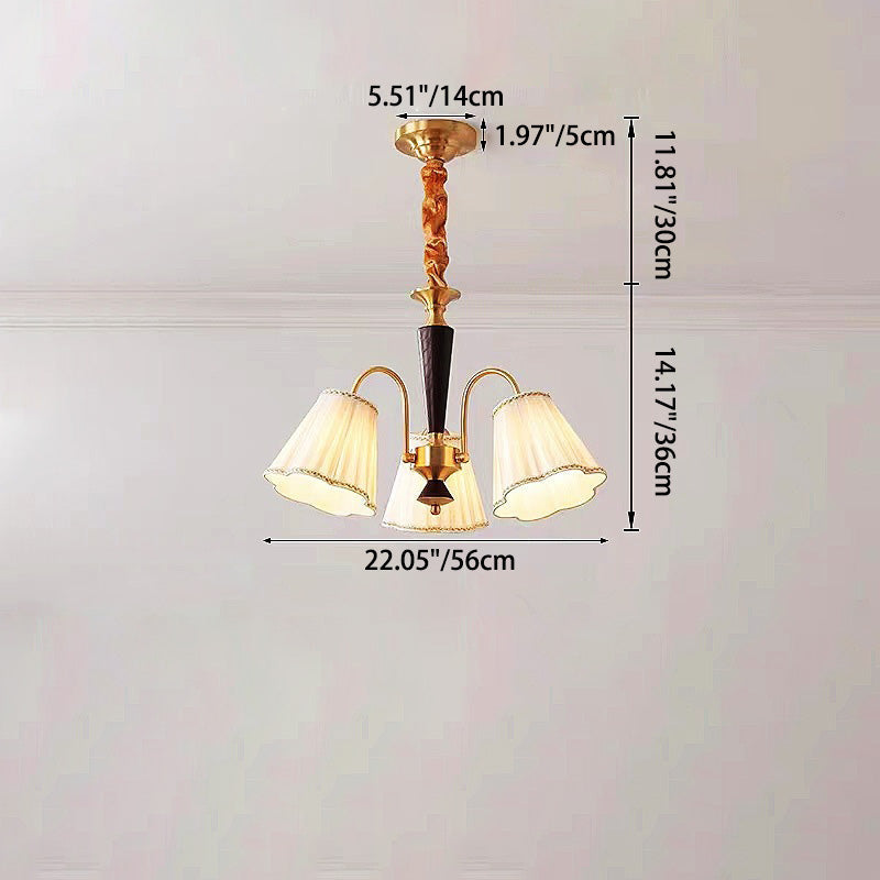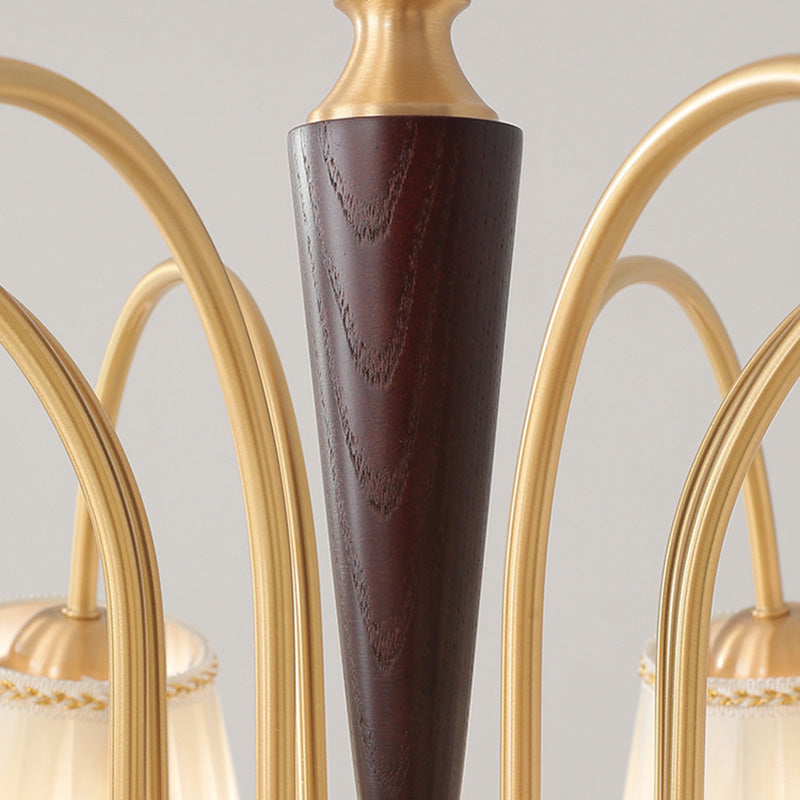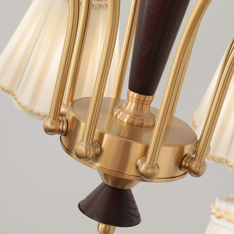 Traditional French Floral Branch Fabric Walnut Brass 3/6 Light Chandelier For Bedroom