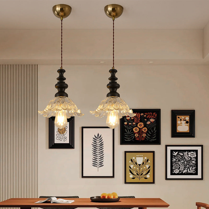 Traditional French Flower Shape Glass Lampshade Iron Solid Wood 1/3 - Light Chandelier For Dining Room