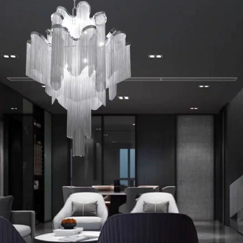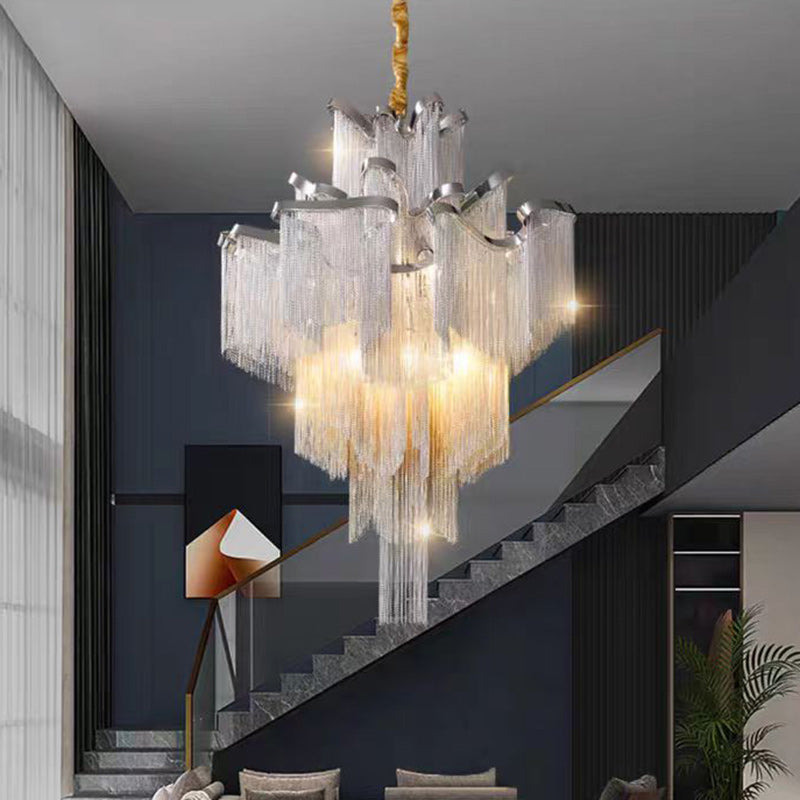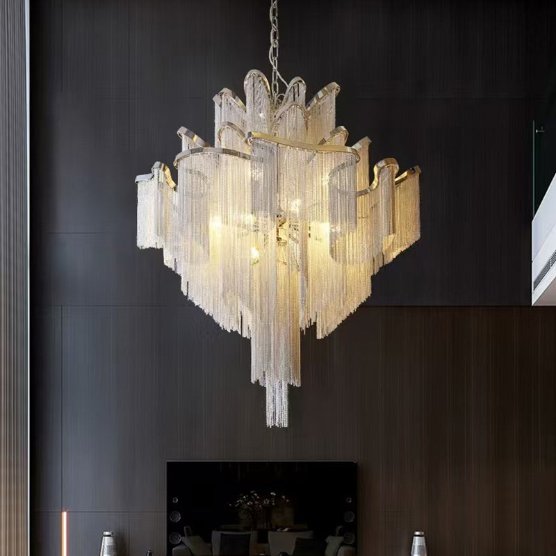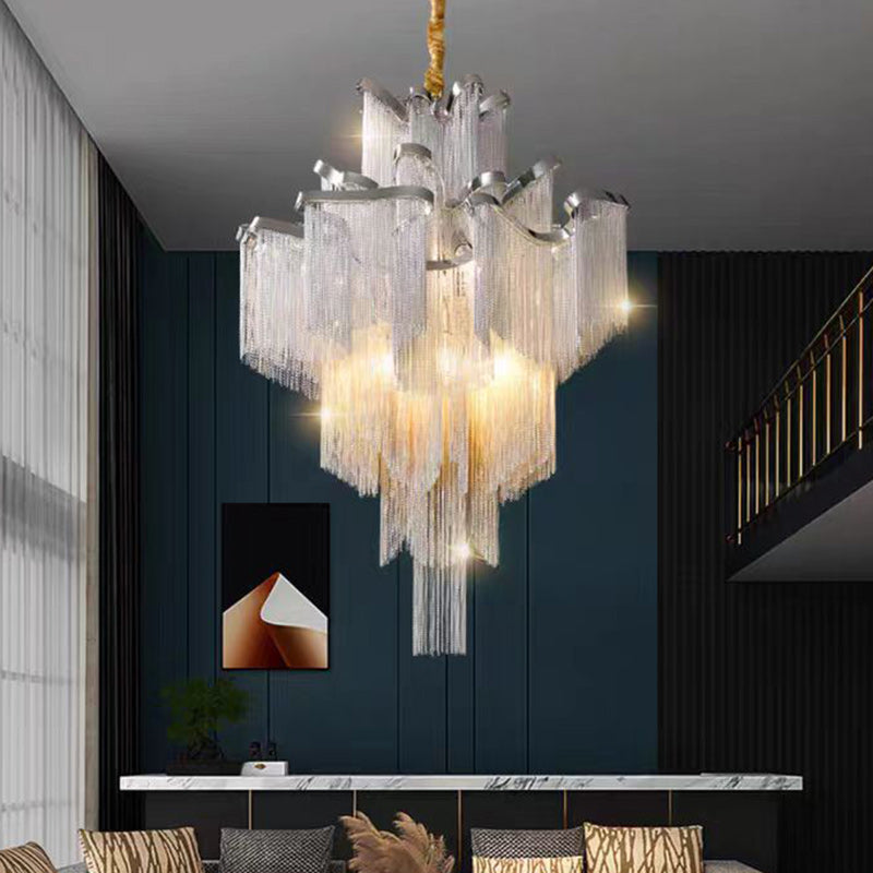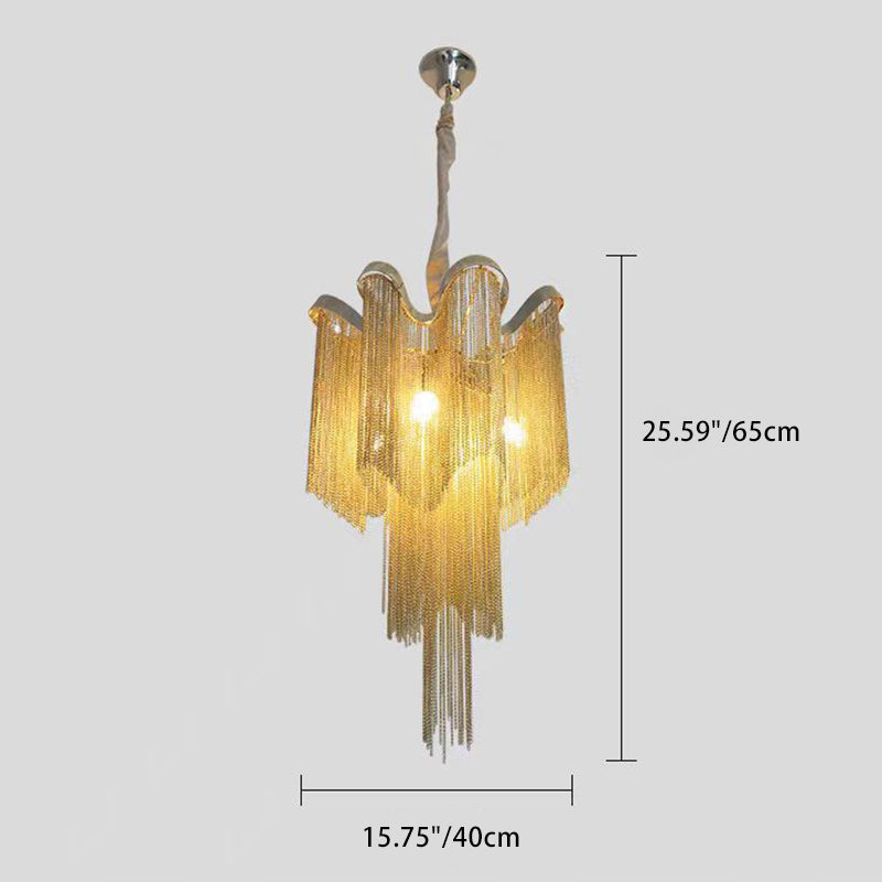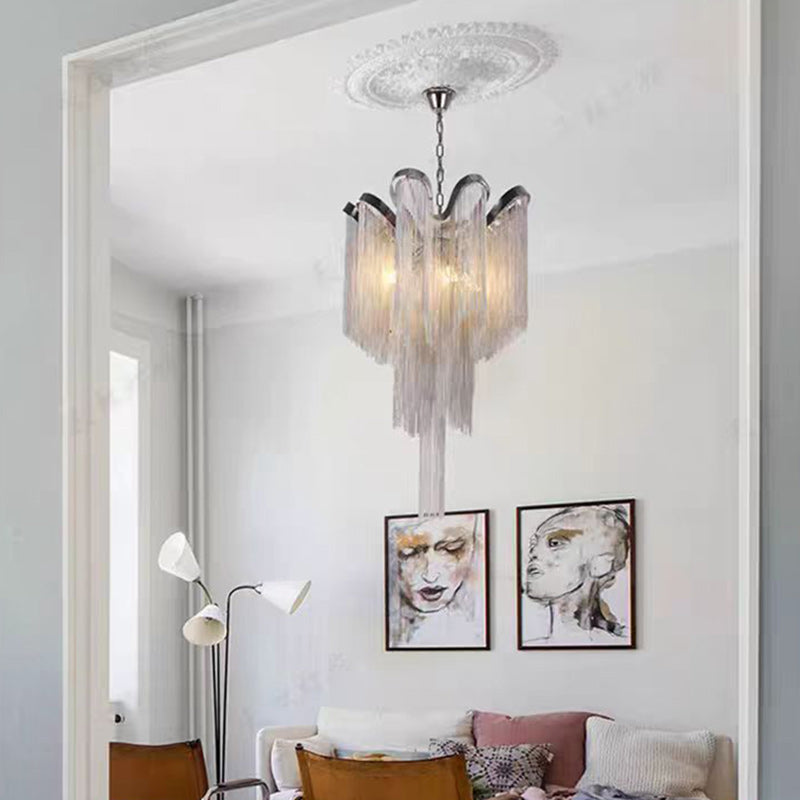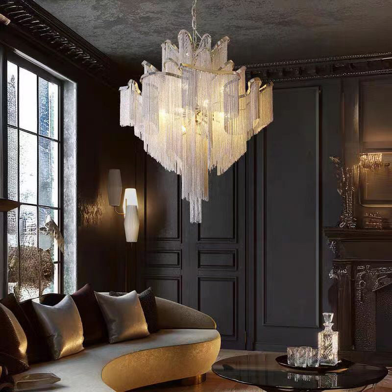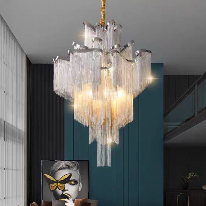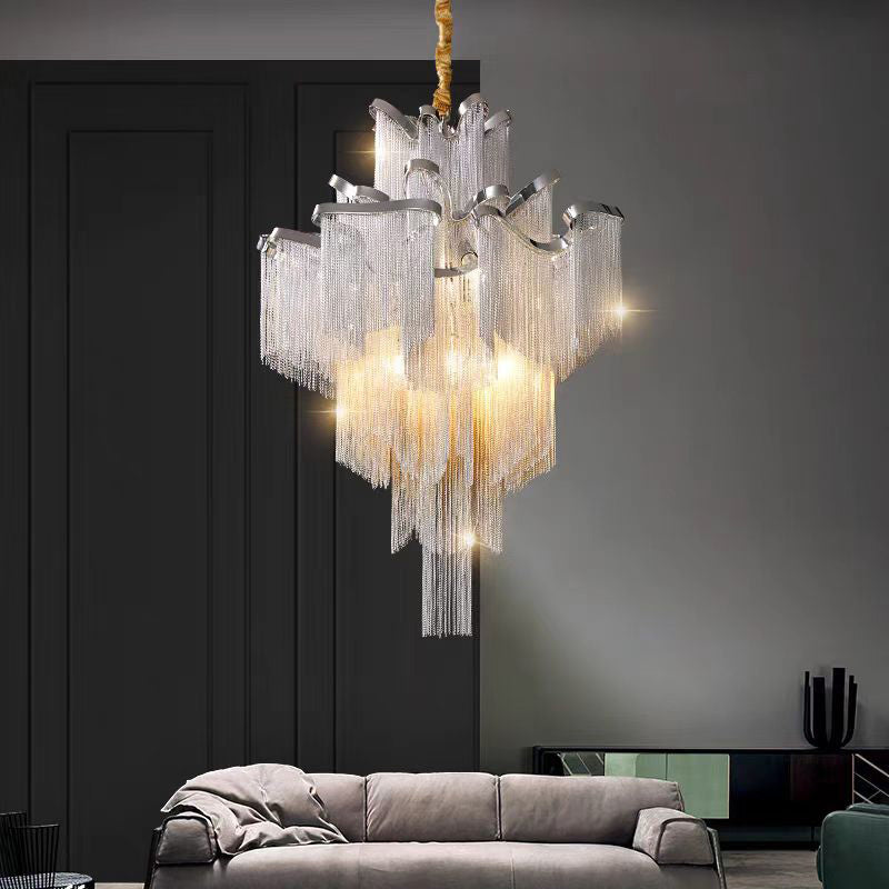Traditional French Fringe Layered Bend Aluminum Iron Hardware 4/9/14 Light Chandelier For Living Room