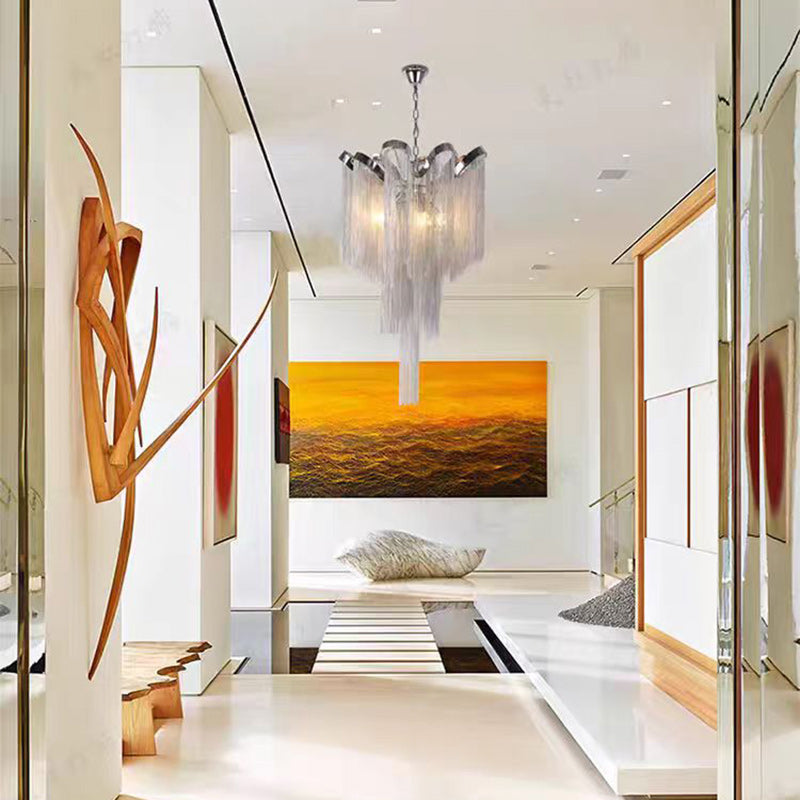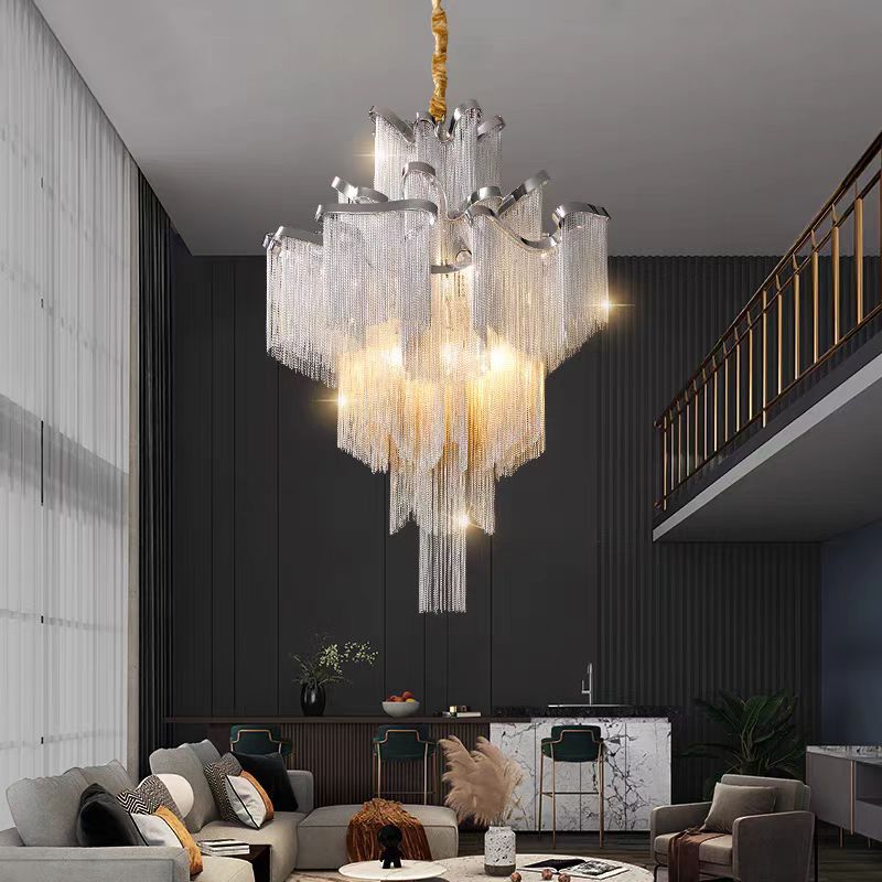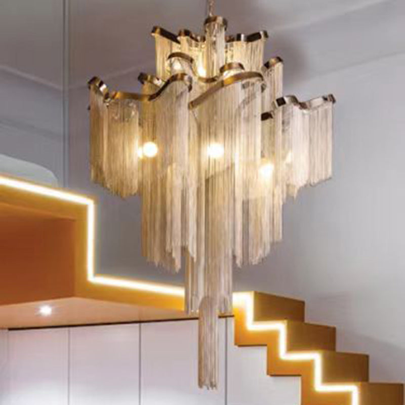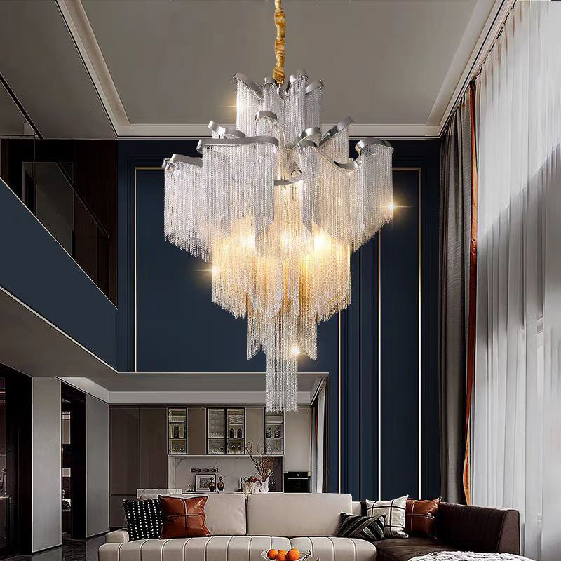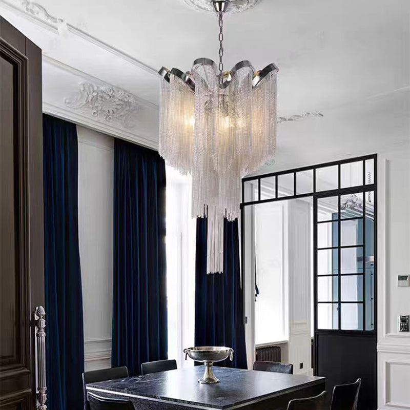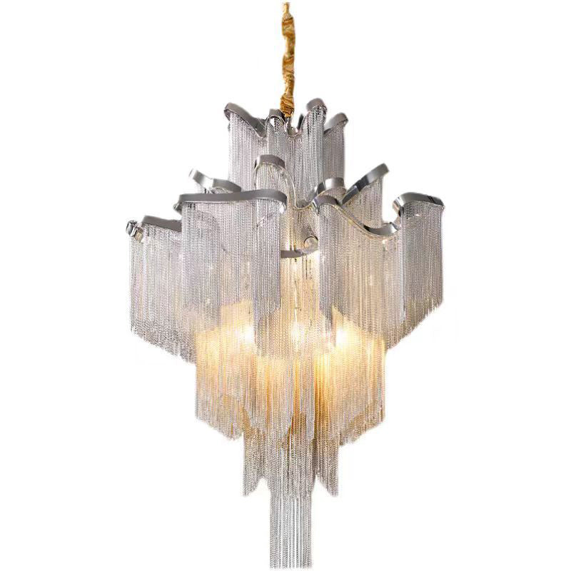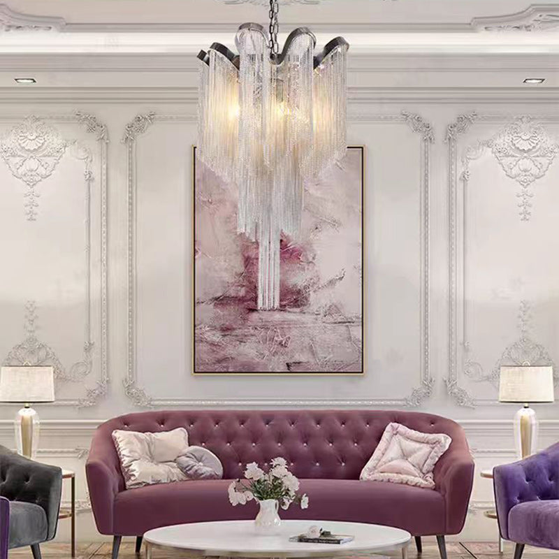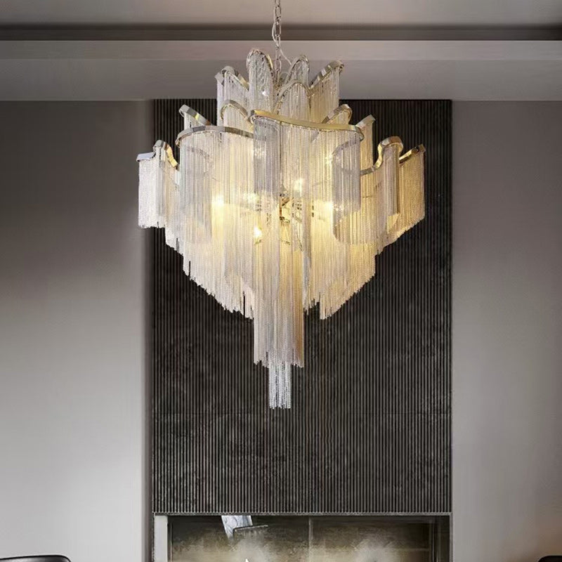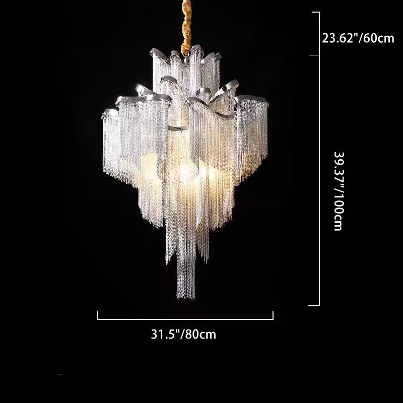 Traditional French Fringe Layered Bend Aluminum Iron Hardware 4/9/14 Light Chandelier For Living Room