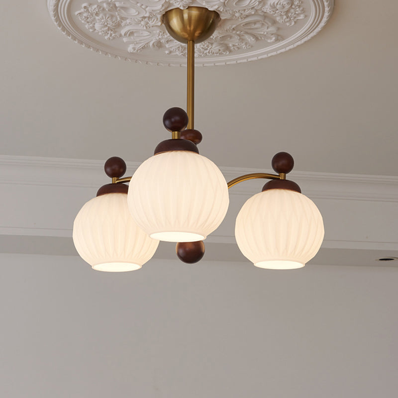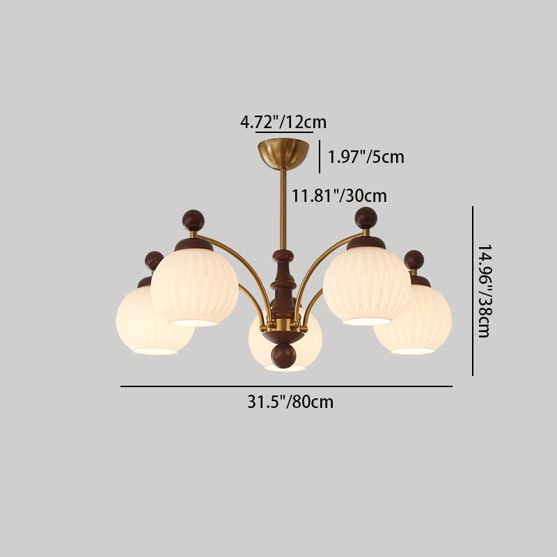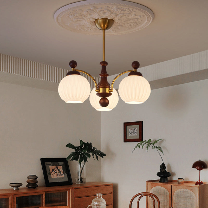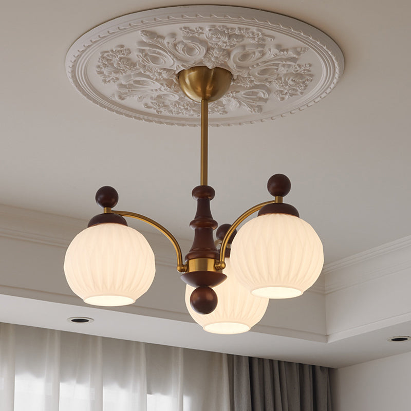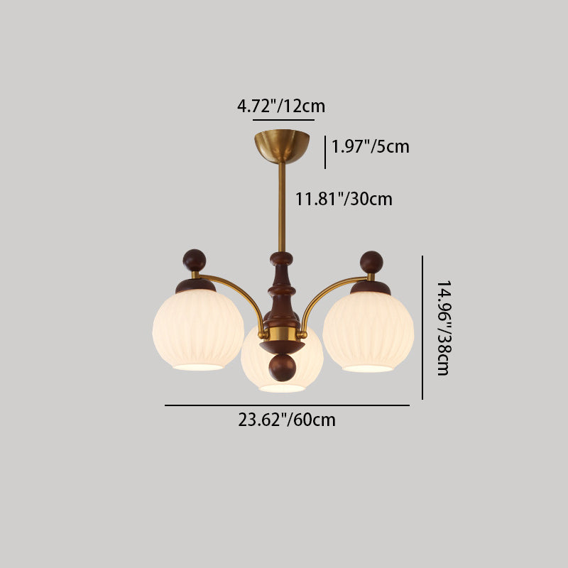 Traditional French Globe Iron Wood Glass 3/5 Light Chandelier For Living Room