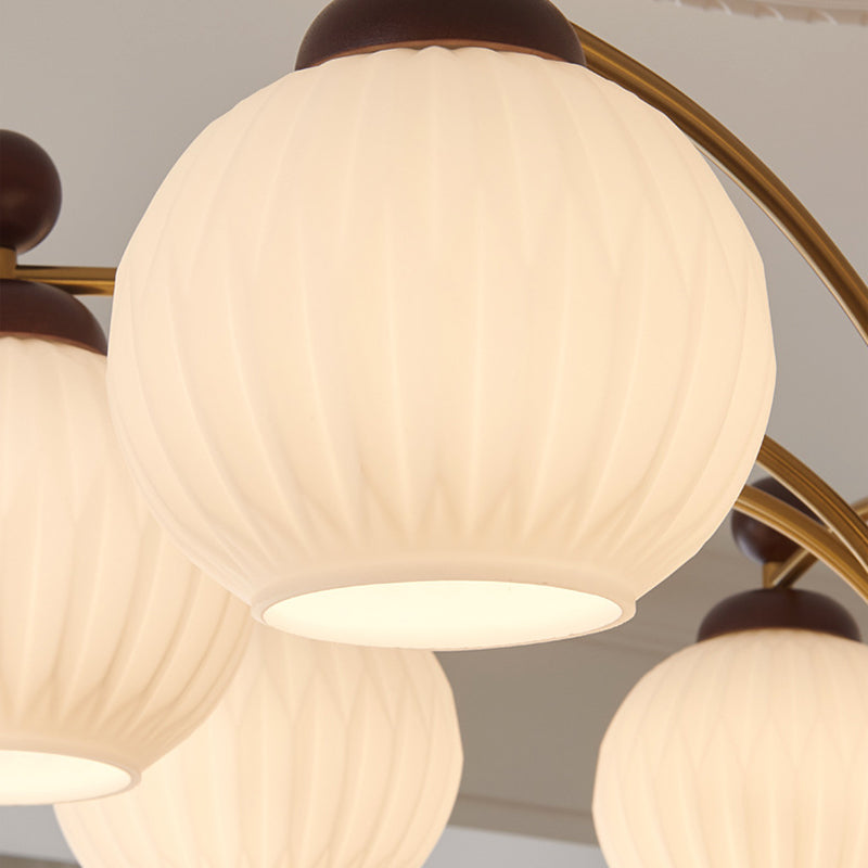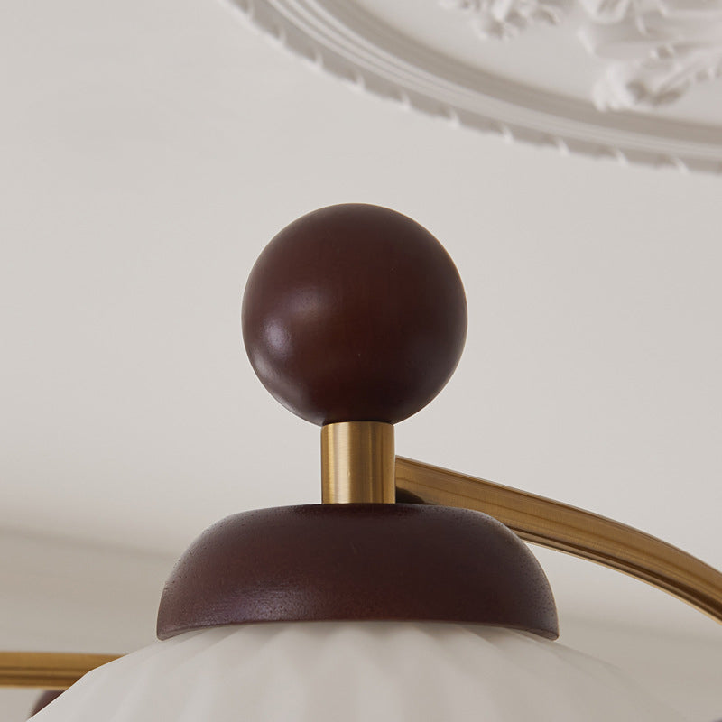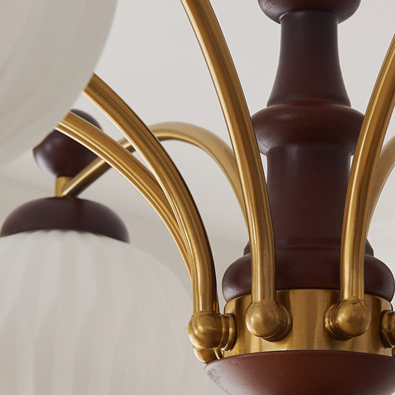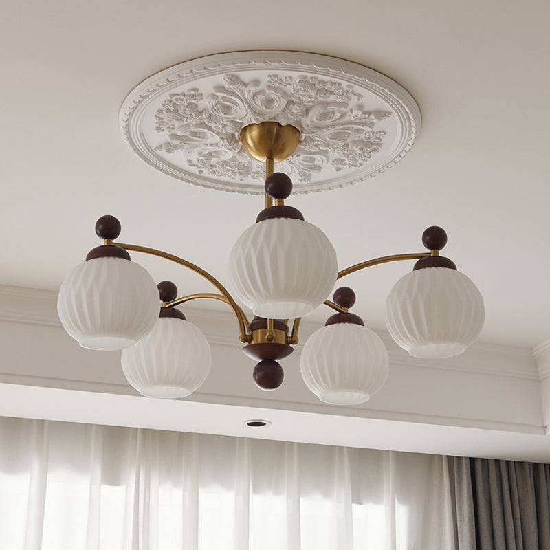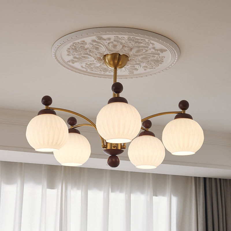 Traditional French Globe Iron Wood Glass 3/5 Light Chandelier For Living Room