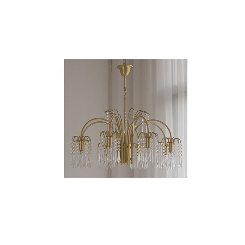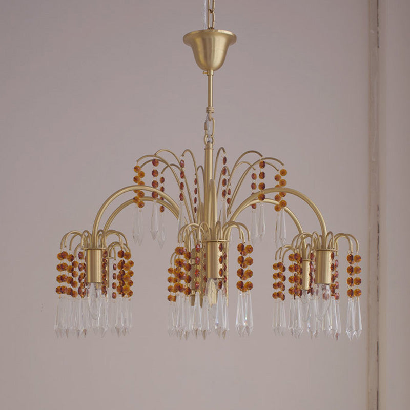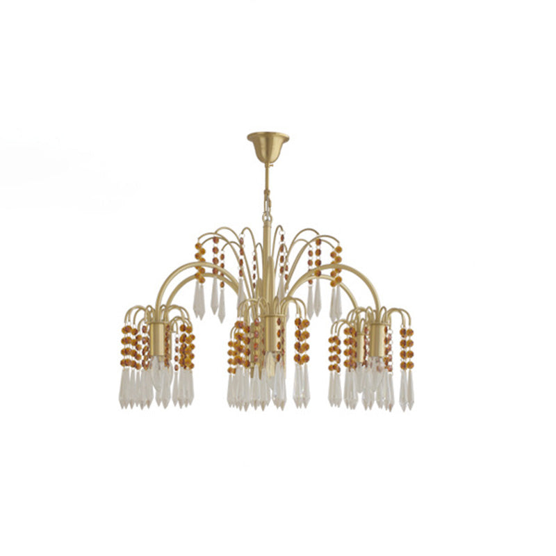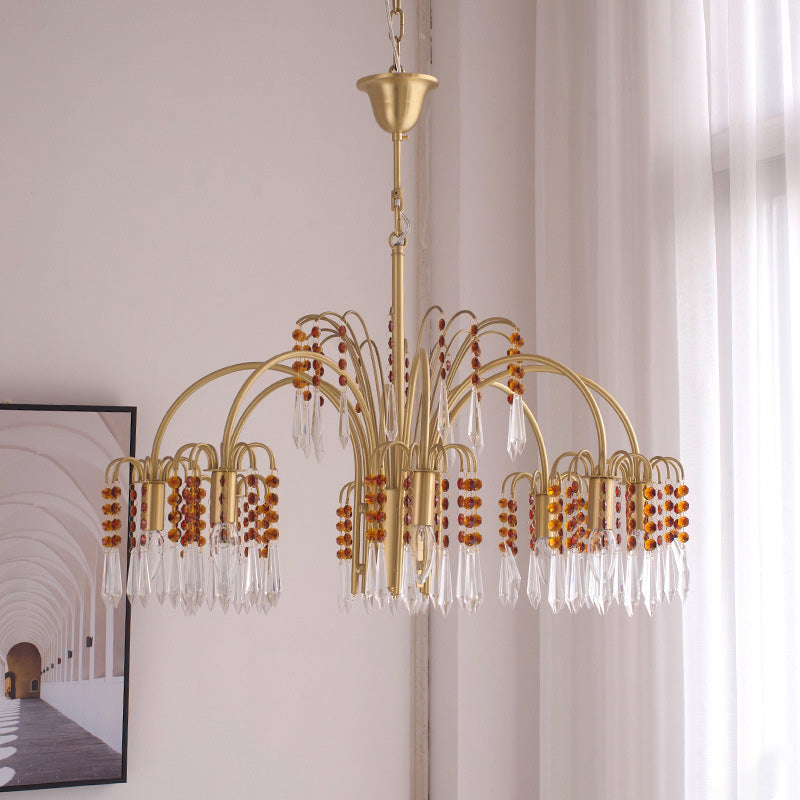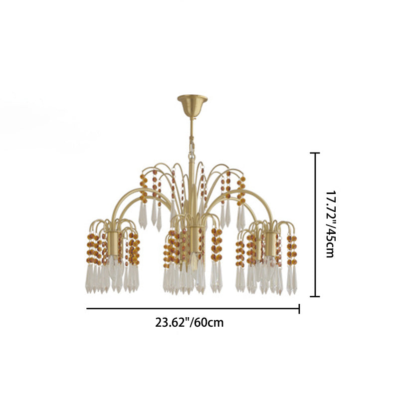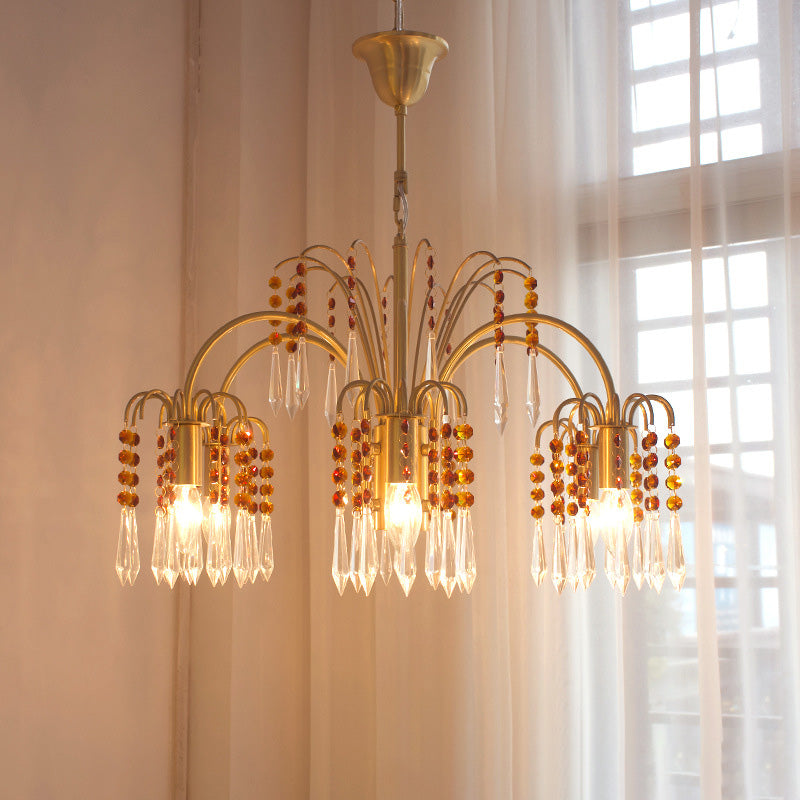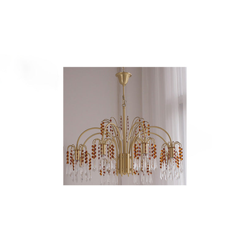 Traditional French Hanging Bead Chain Copper Crystal 3/6/8 Light Chandeliers For Livnig Room