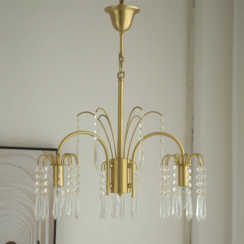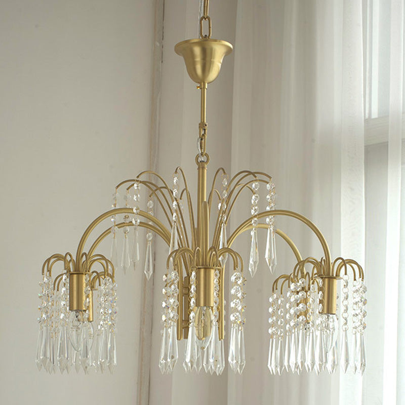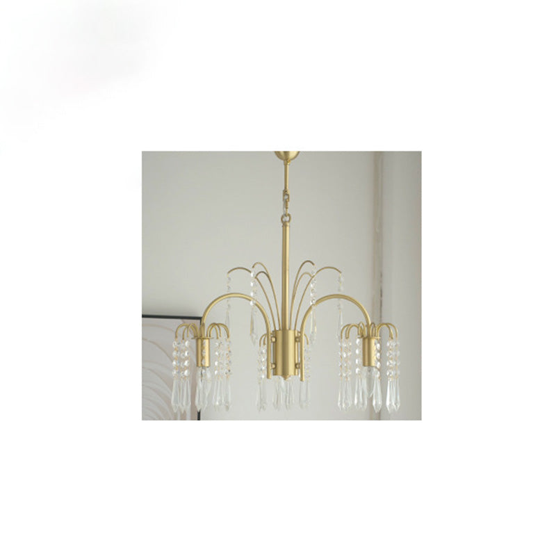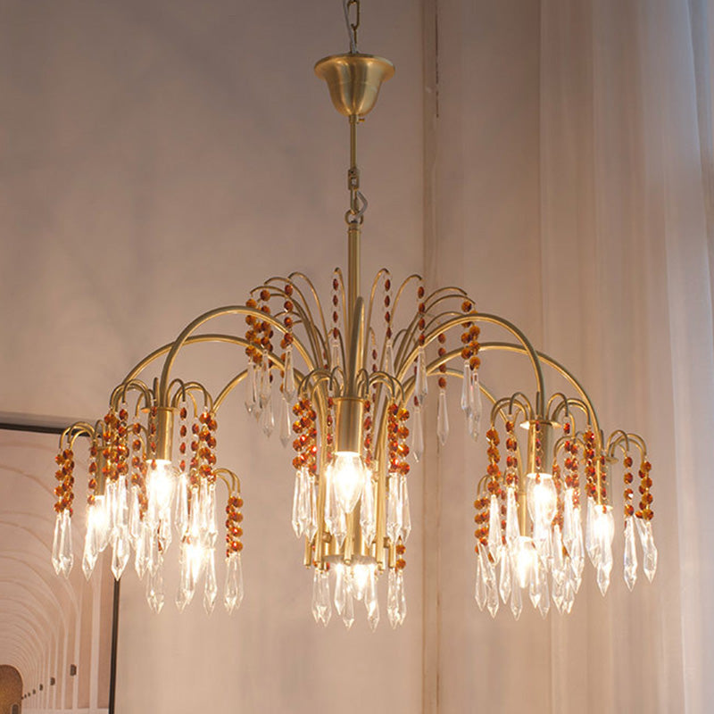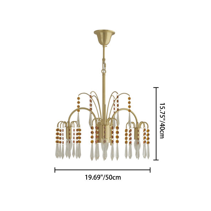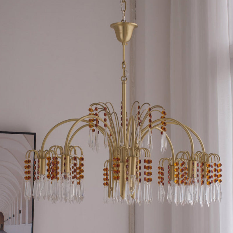 Traditional French Hanging Bead Chain Copper Crystal 3/6/8 Light Chandeliers For Livnig Room
