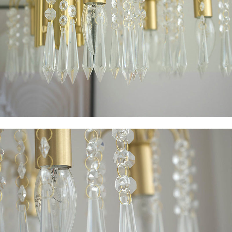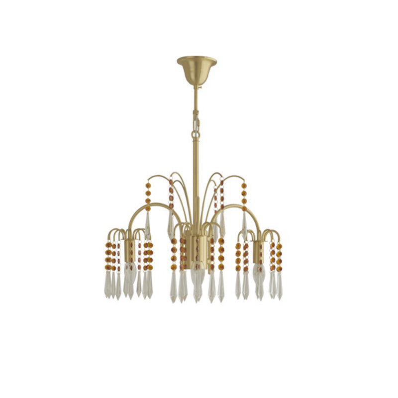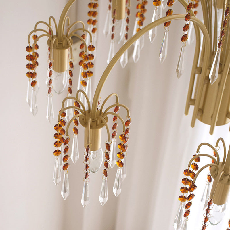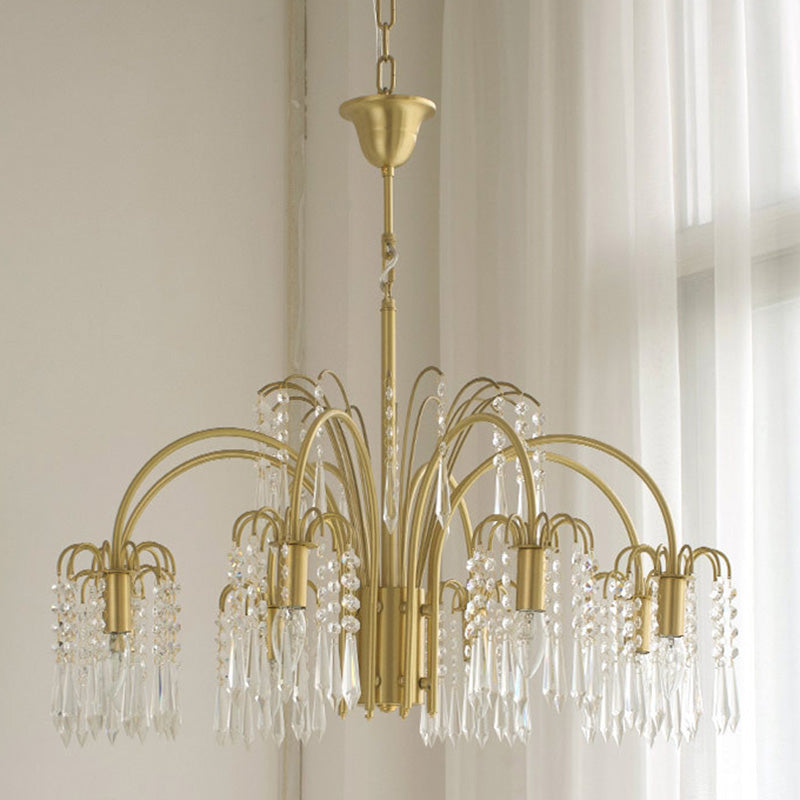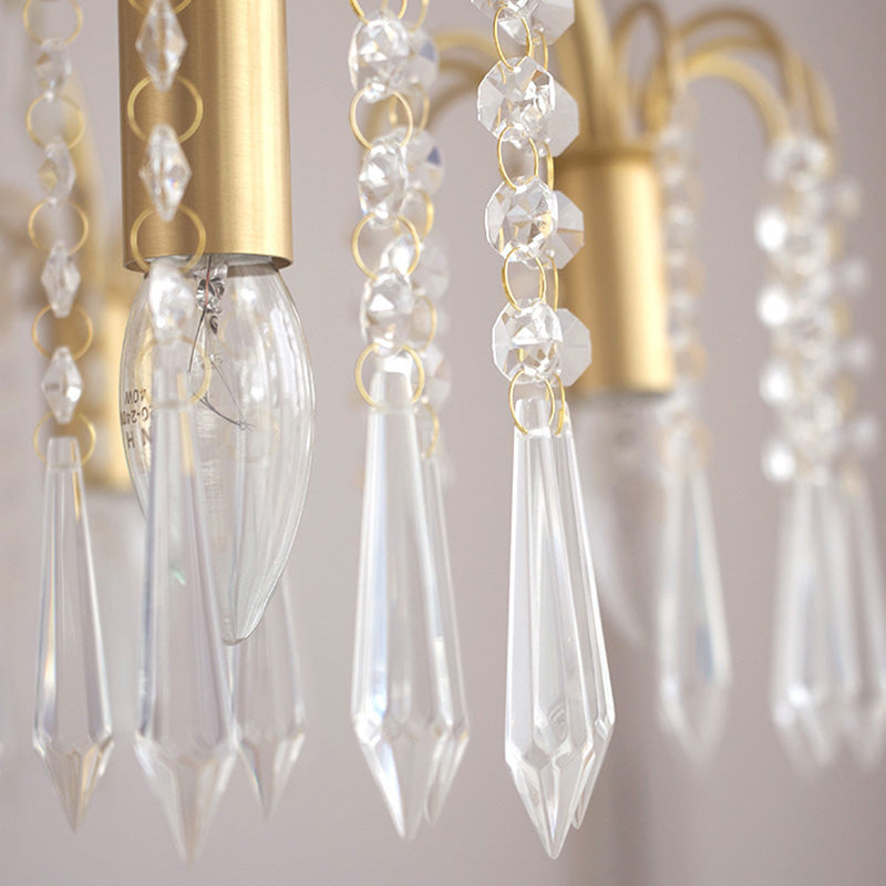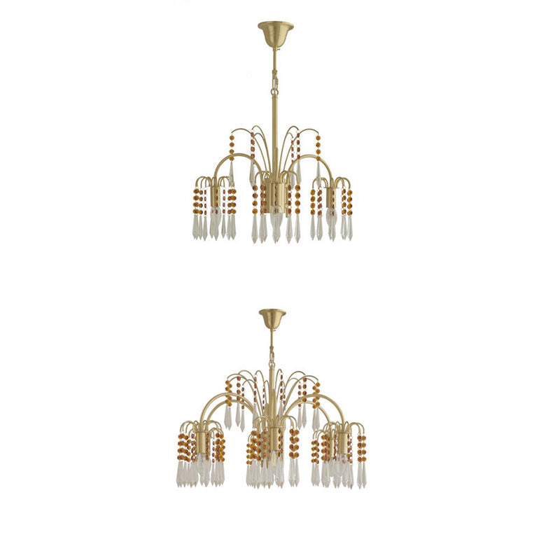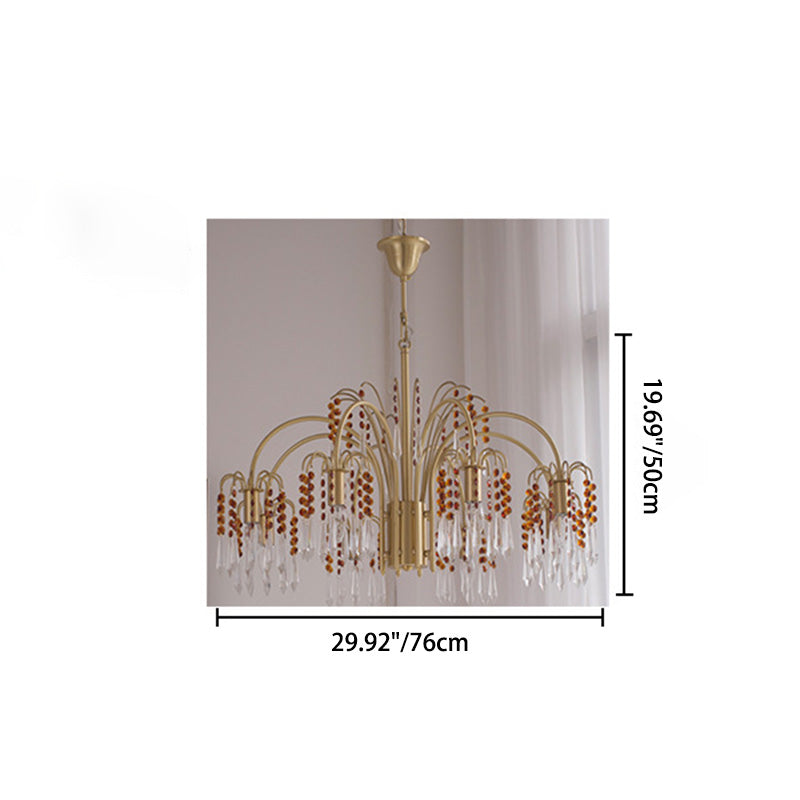 Traditional French Hanging Bead Chain Copper Crystal 3/6/8 Light Chandeliers For Livnig Room