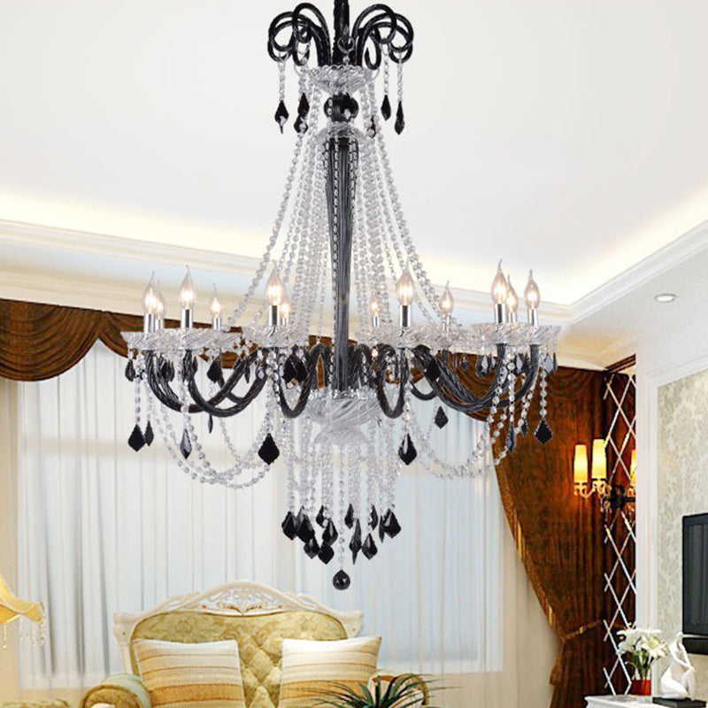 Traditional French Hardware Frame Crystal Glass Candelabra 12-Light Chandelier For Living Room