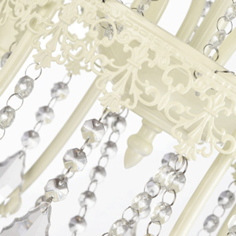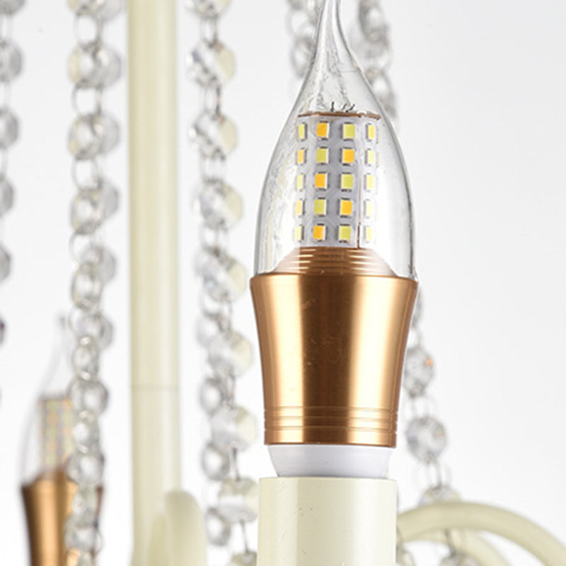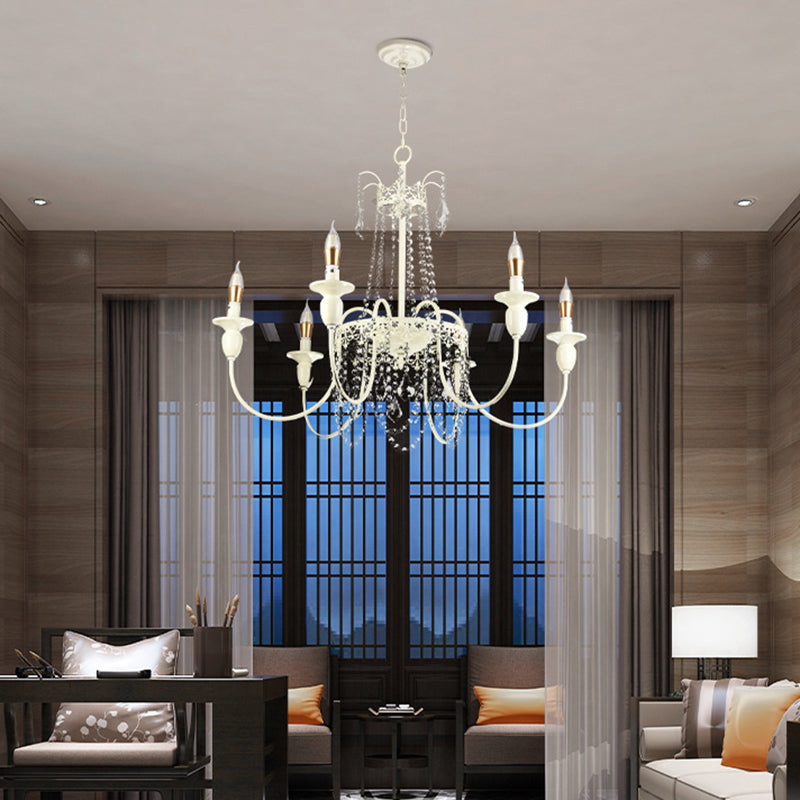 Traditional French Iron Carved Frame Crystal String Candelabra 4/6/8-Light Chandelier For Living Room