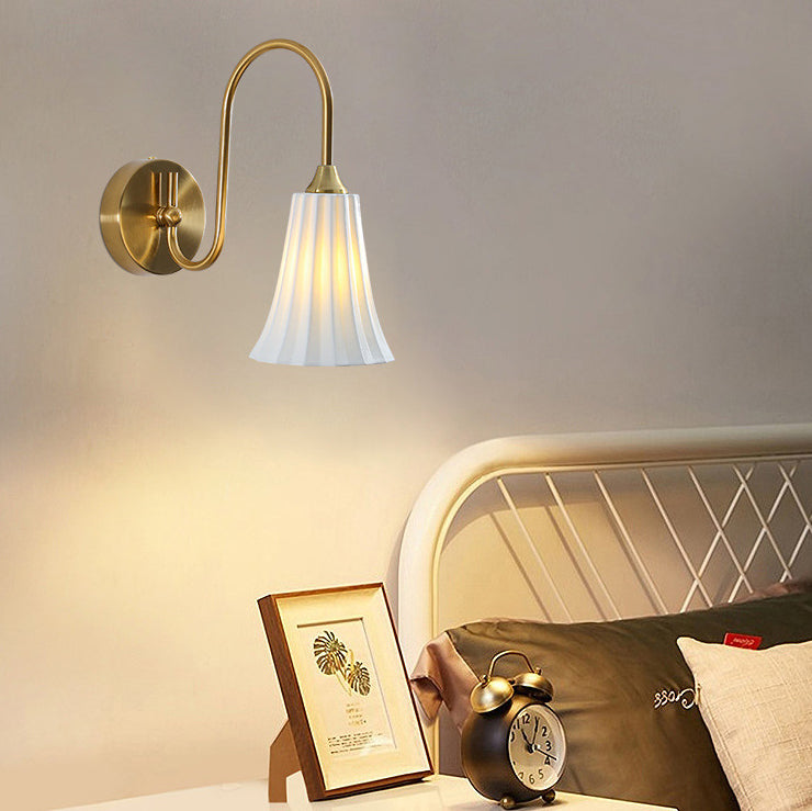 Traditional French Iron Ceramic Ball Ribbed Flower Bud 1-Light Wall Sconce Lamp For Bedside