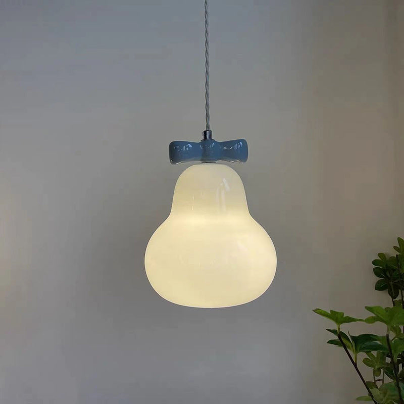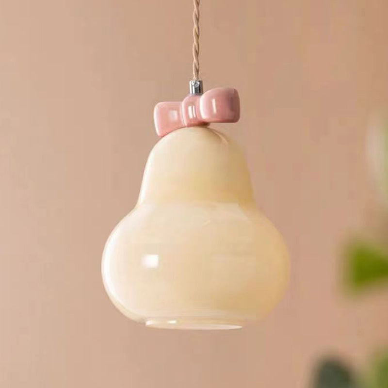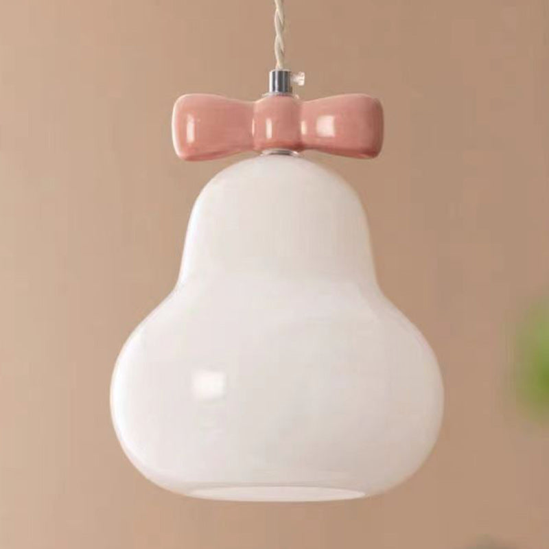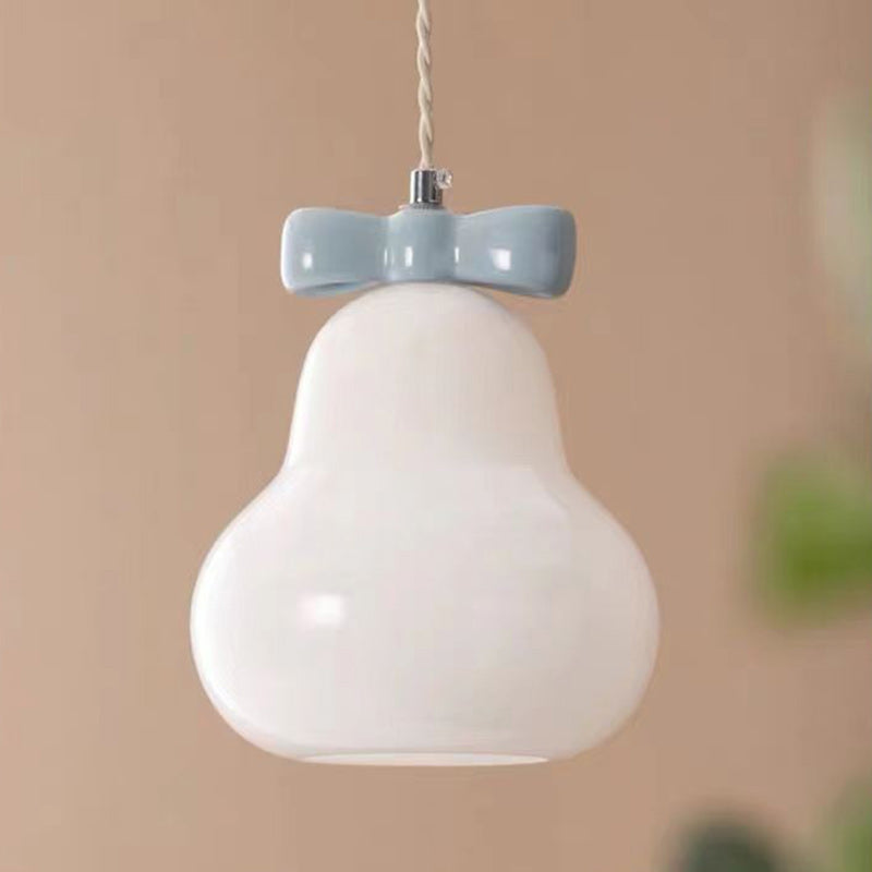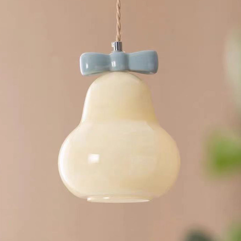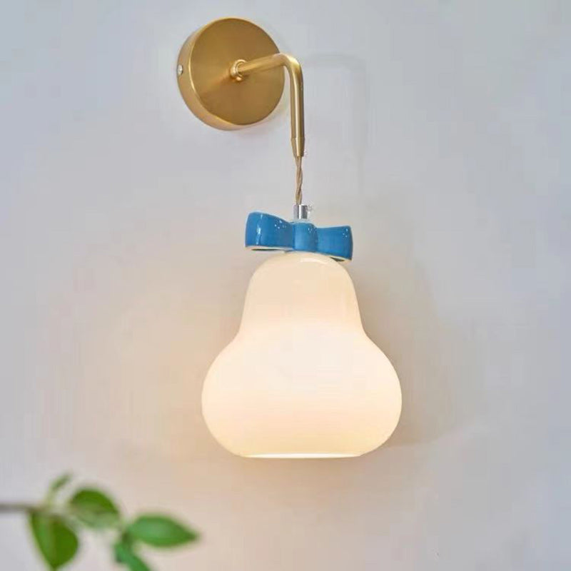Traditional French Iron Ceramic Glass Gourd Pear Bow Tie Hanging 1-Light Wall Sconce Lamp For Bedside