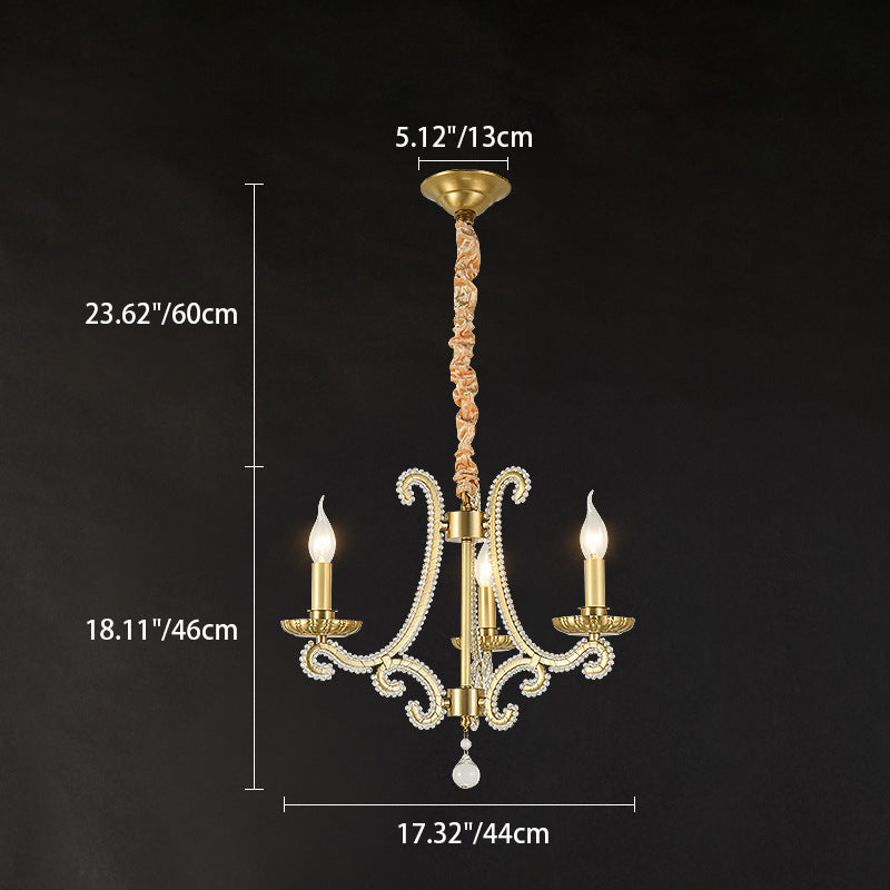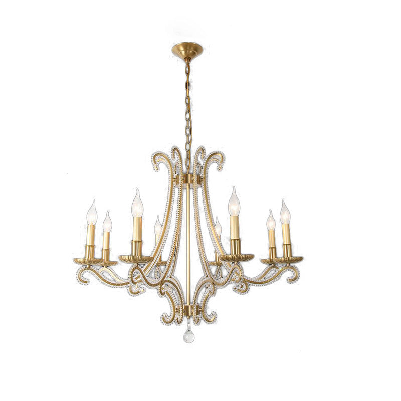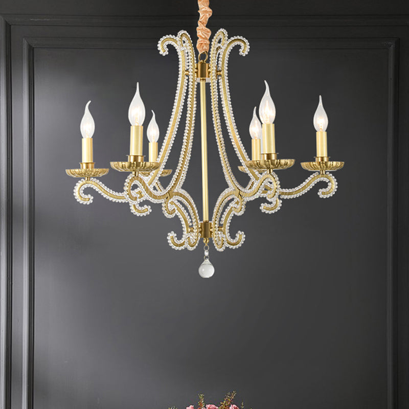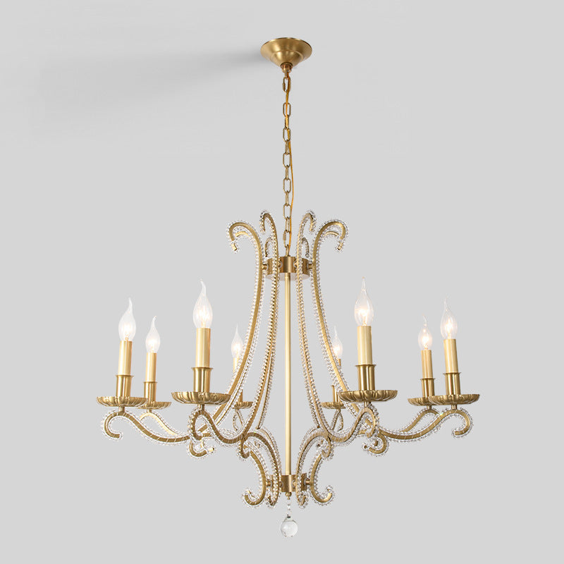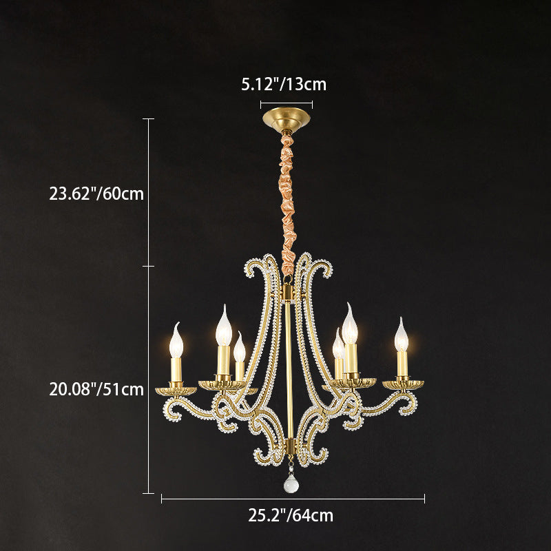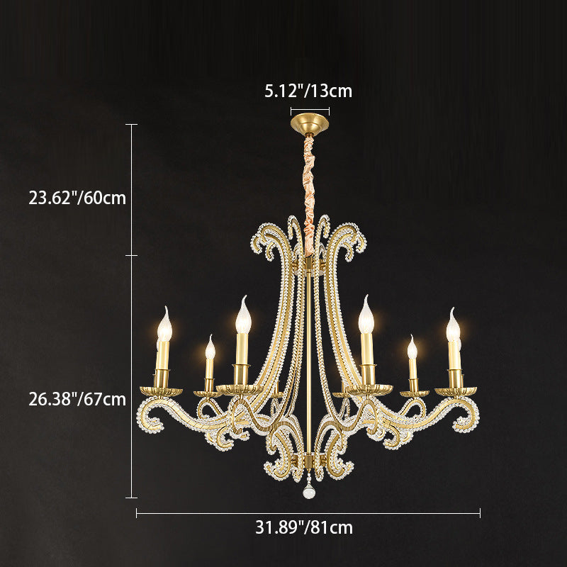 Traditional French Iron Crystal Candle Curved 3/6/8 Light Chandeliers For Living Room