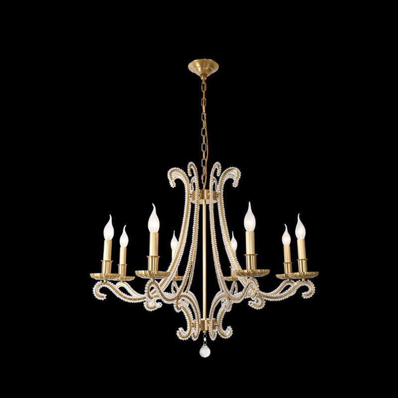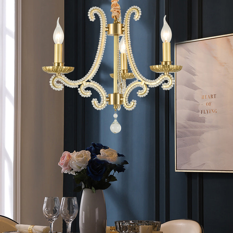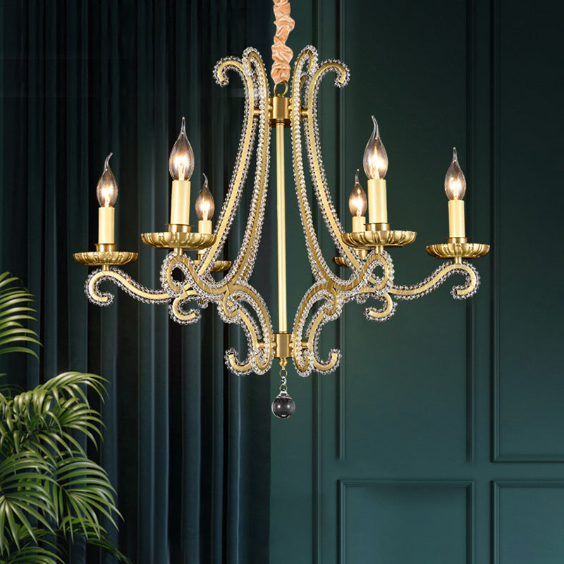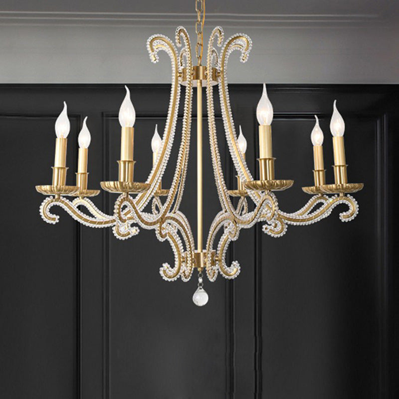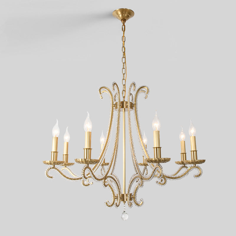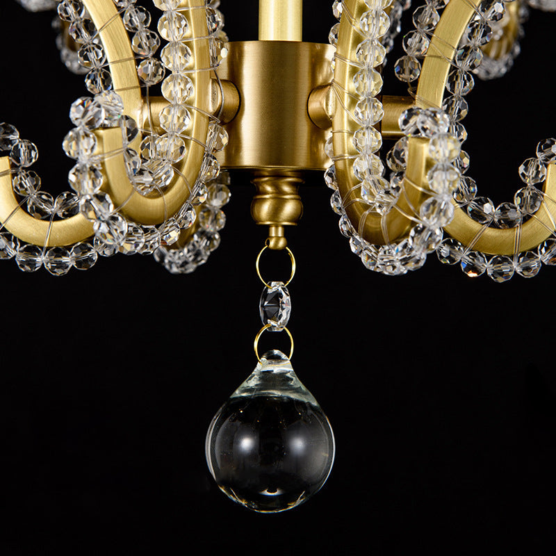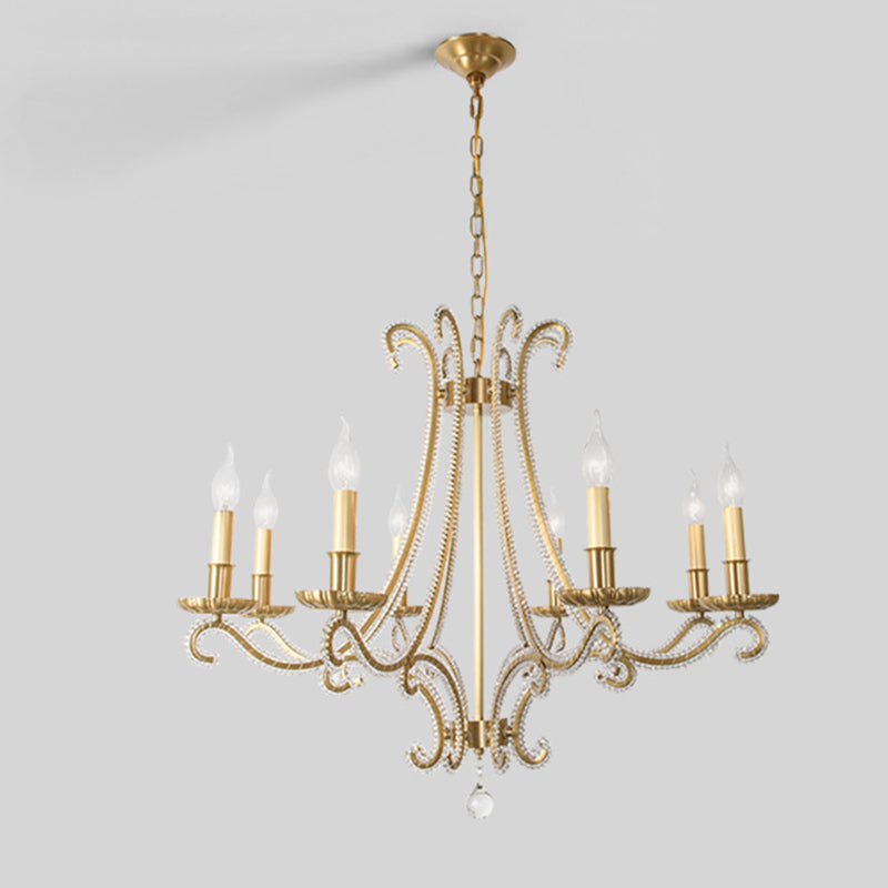 Traditional French Iron Crystal Candle Curved 3/6/8 Light Chandeliers For Living Room