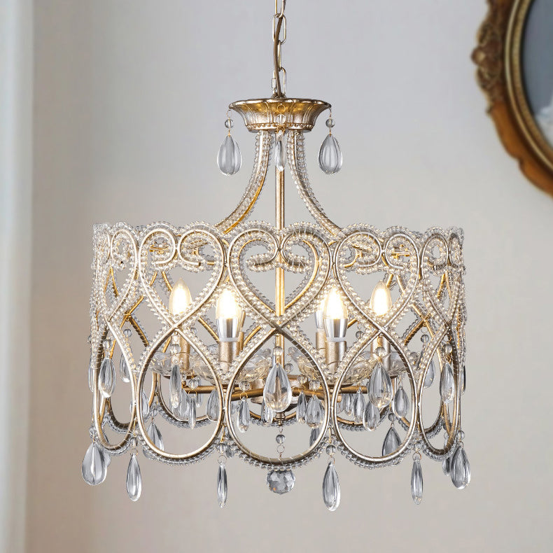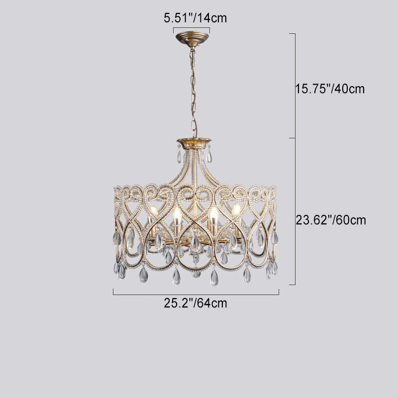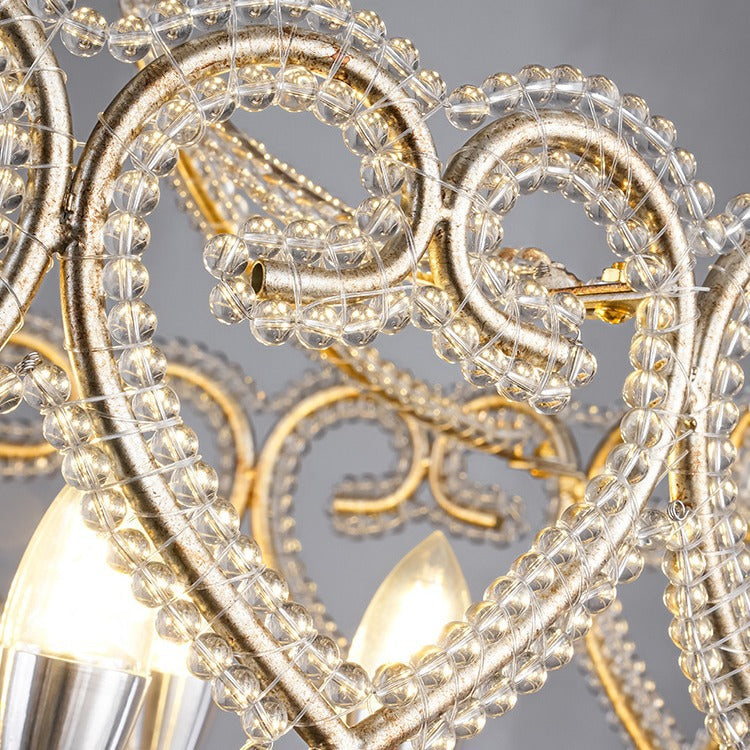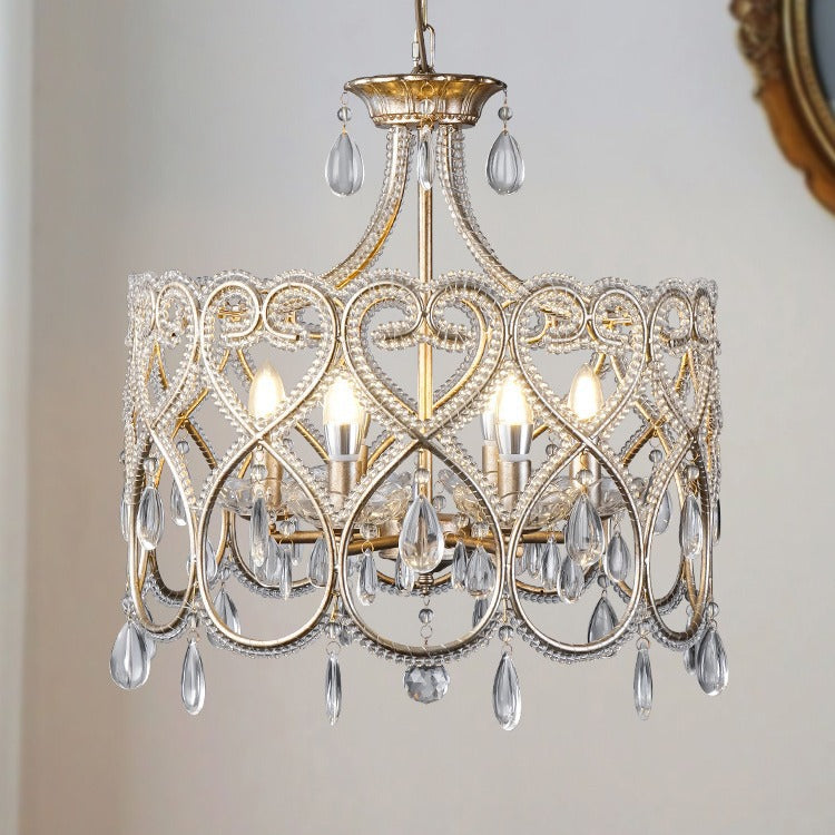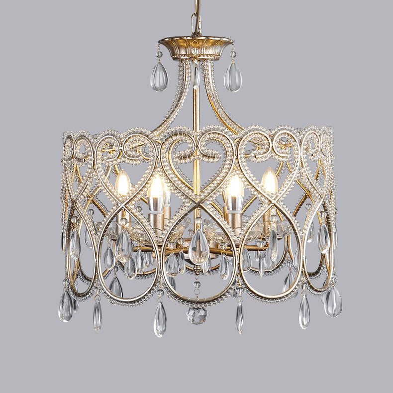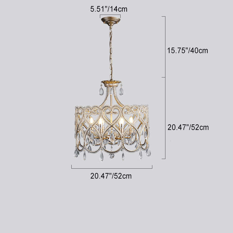 Traditional French Iron Heart Shaped Frame Crystal Decor 6/8-Light Chandelier For Dining Room