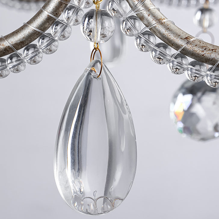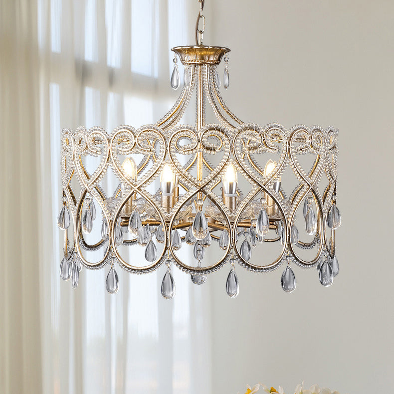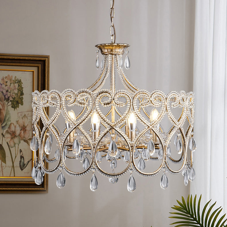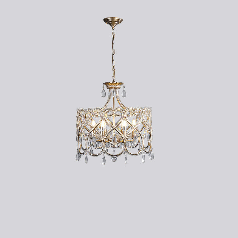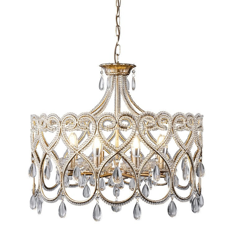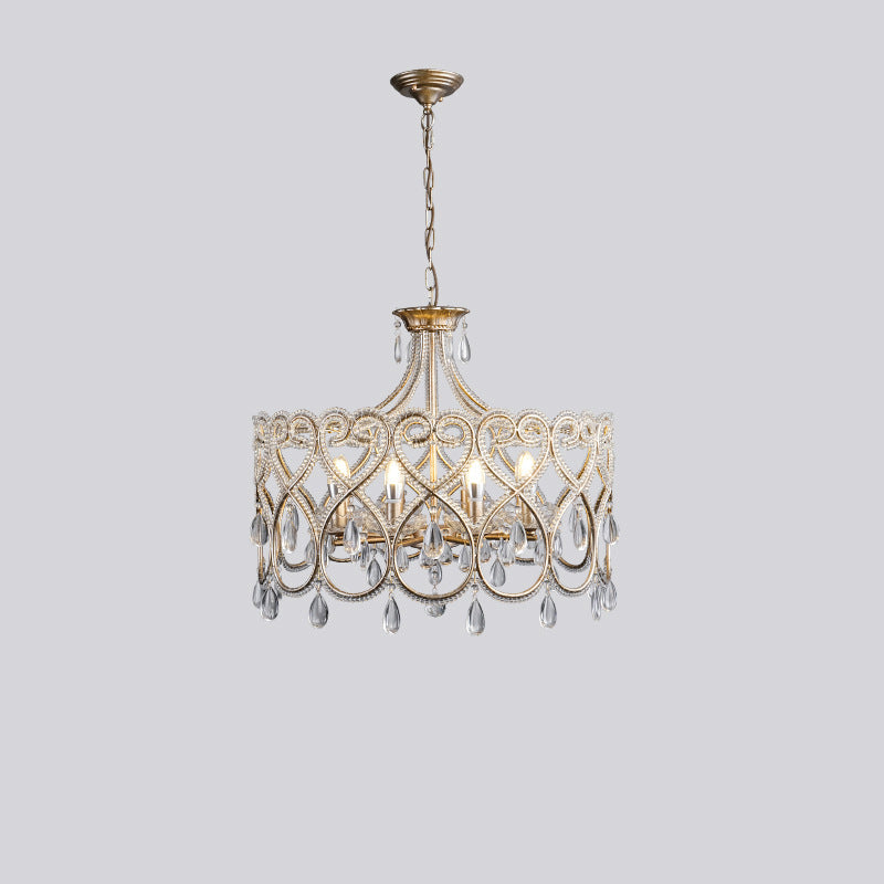 Traditional French Iron Heart Shaped Frame Crystal Decor 6/8-Light Chandelier For Dining Room