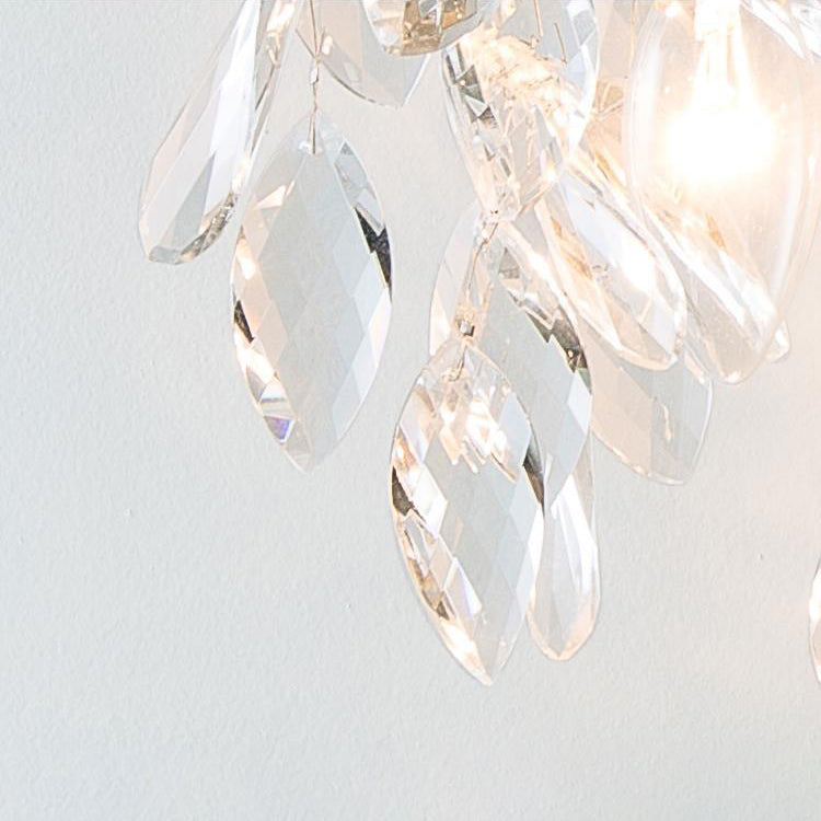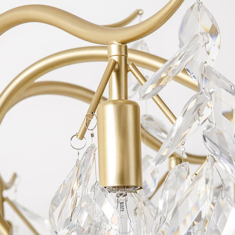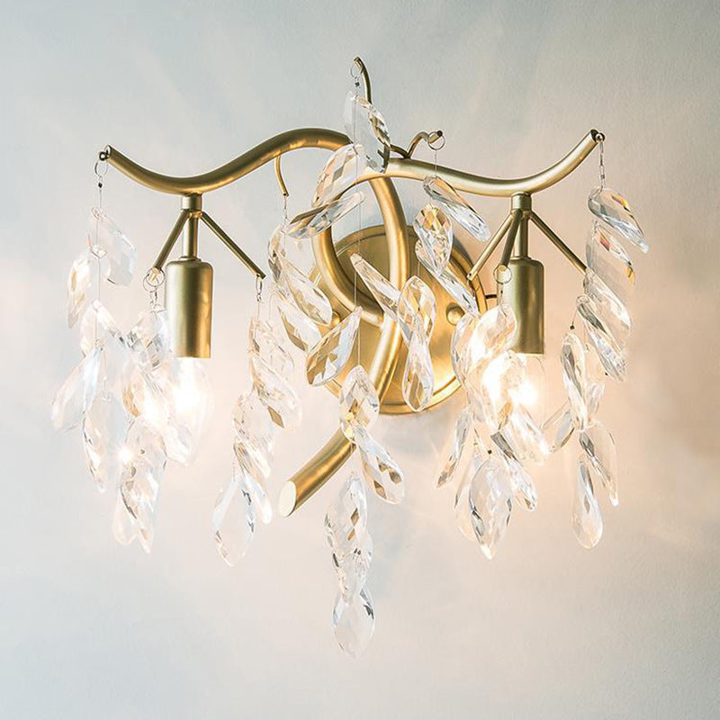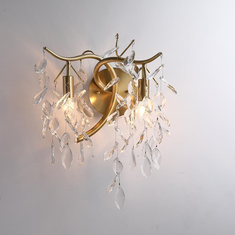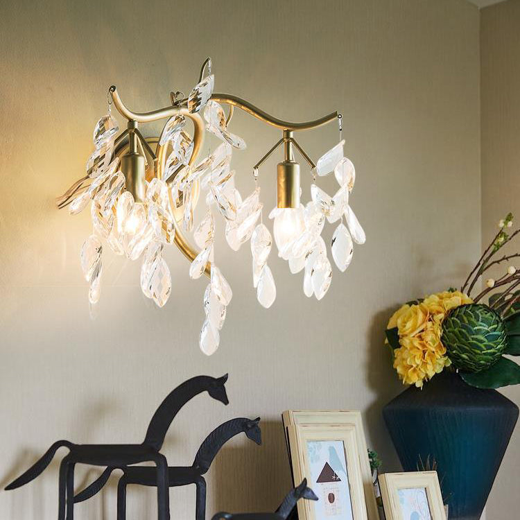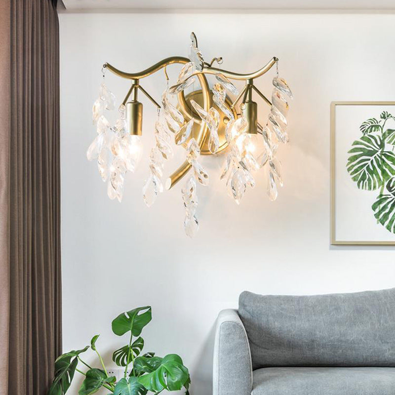Traditional French Leaf Iron Copper Crystal 2-Light Wall Sconce Lamp For Living Room