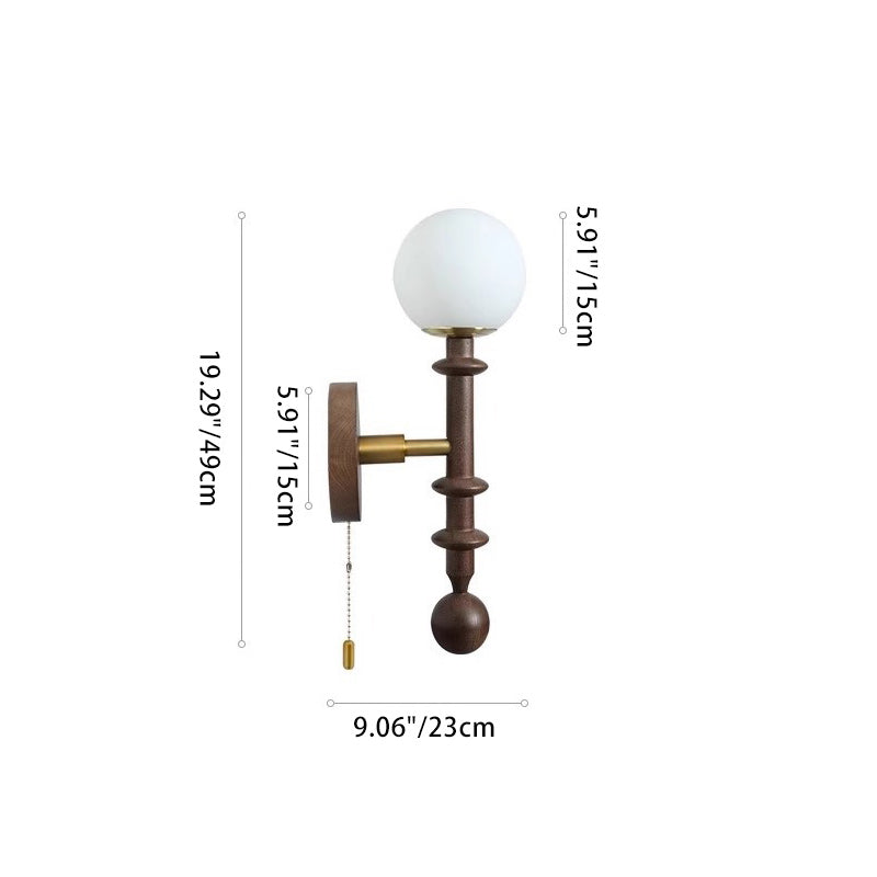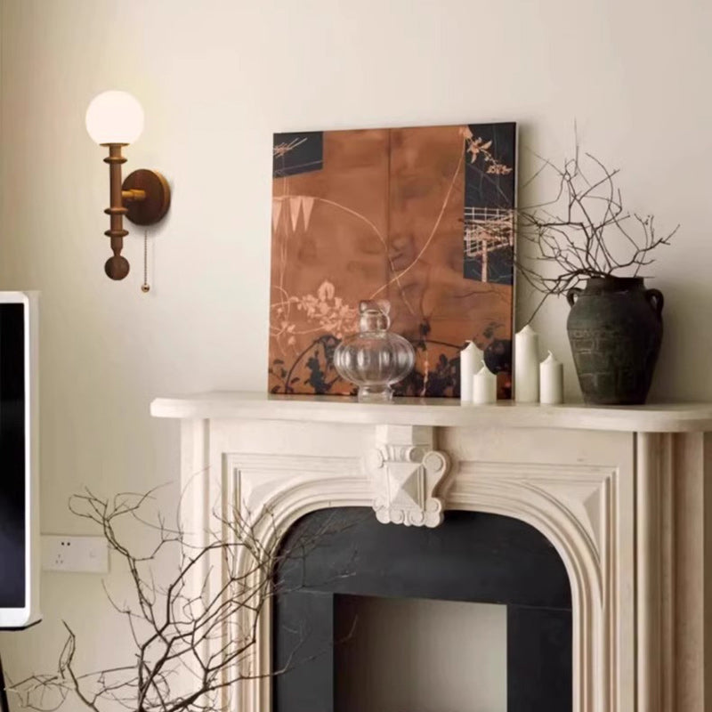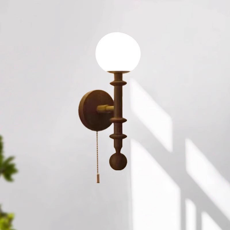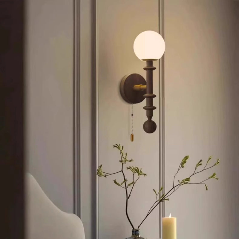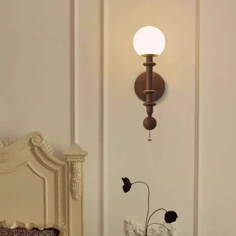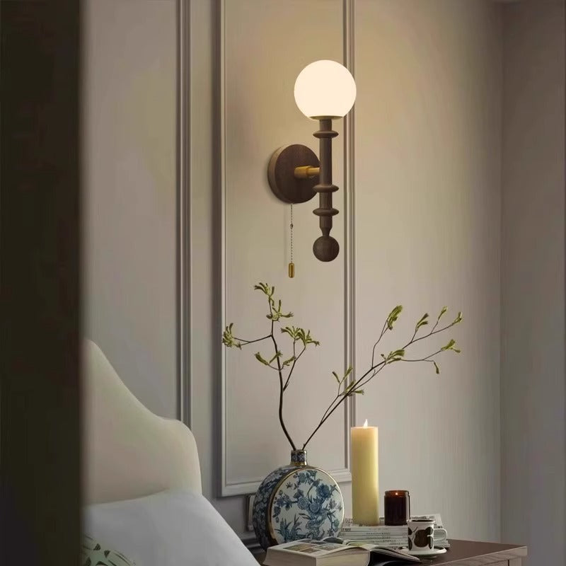 Traditional French Magic Bean Cylinder Glass Ash Wood Hardware 1-Light Wall Sconce Lamp For Living Room