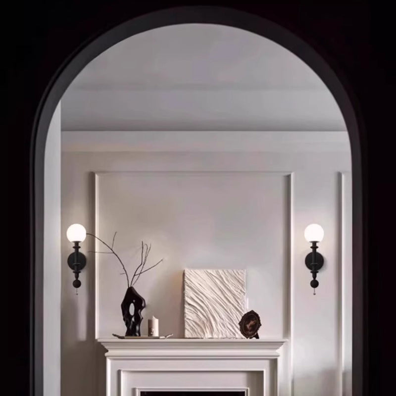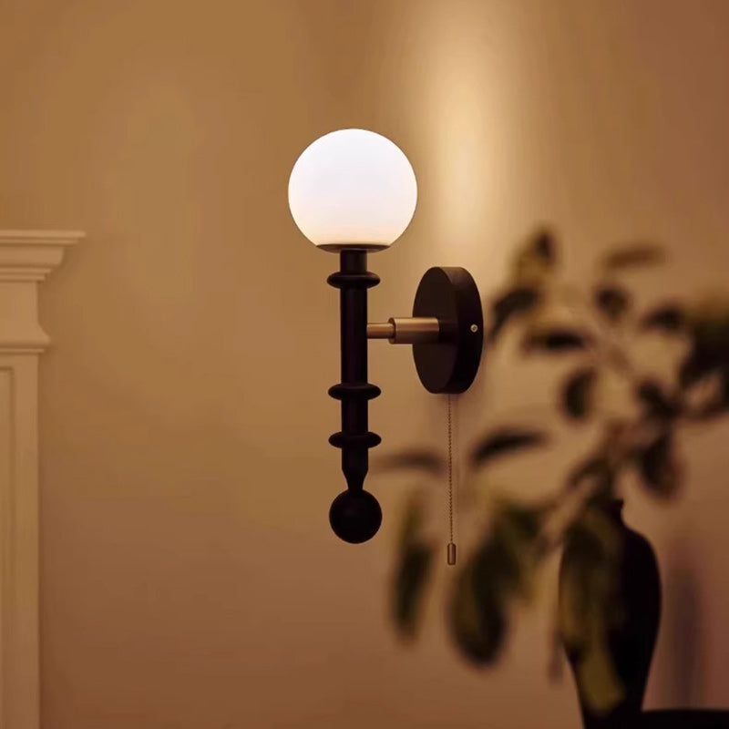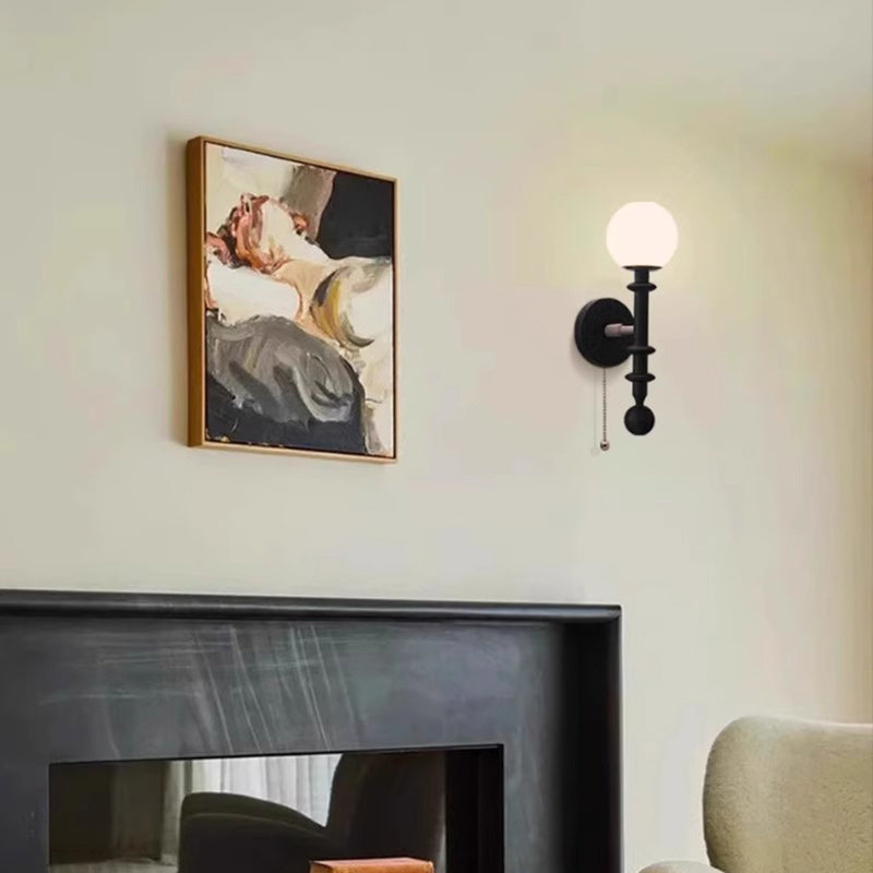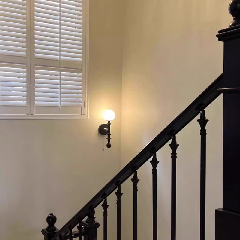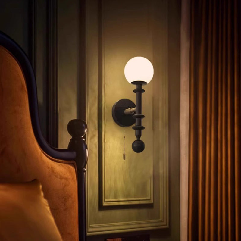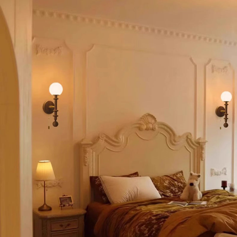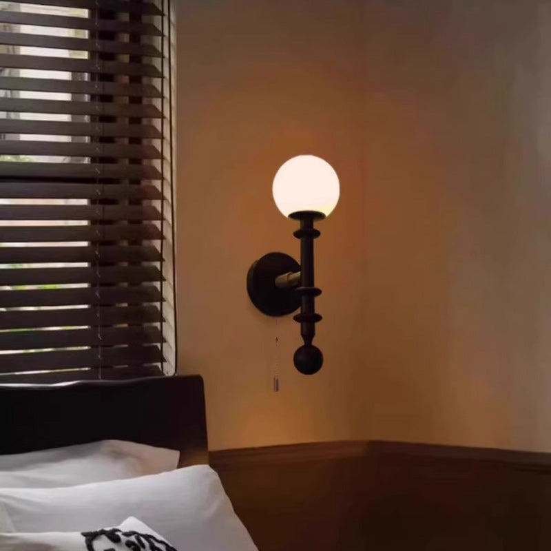 Traditional French Magic Bean Cylinder Glass Ash Wood Hardware 1-Light Wall Sconce Lamp For Living Room