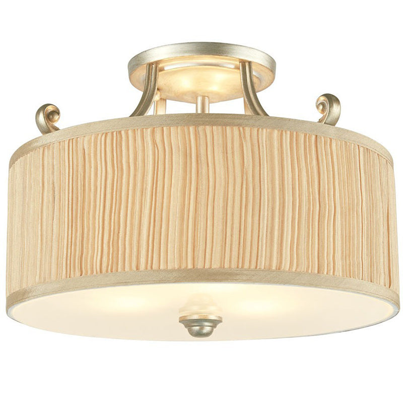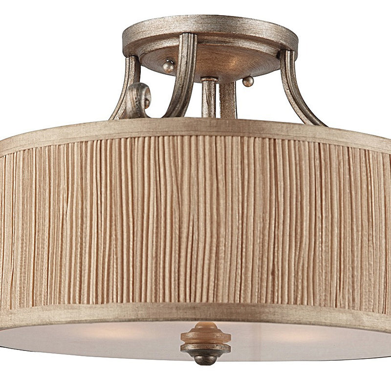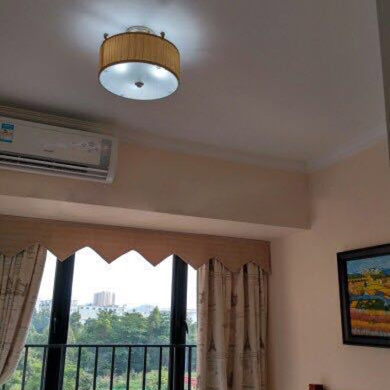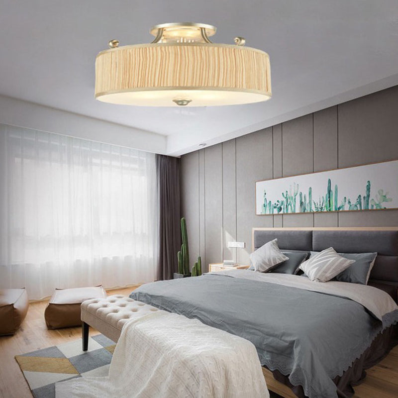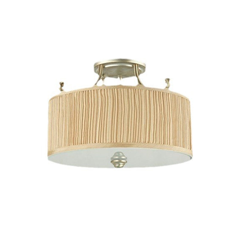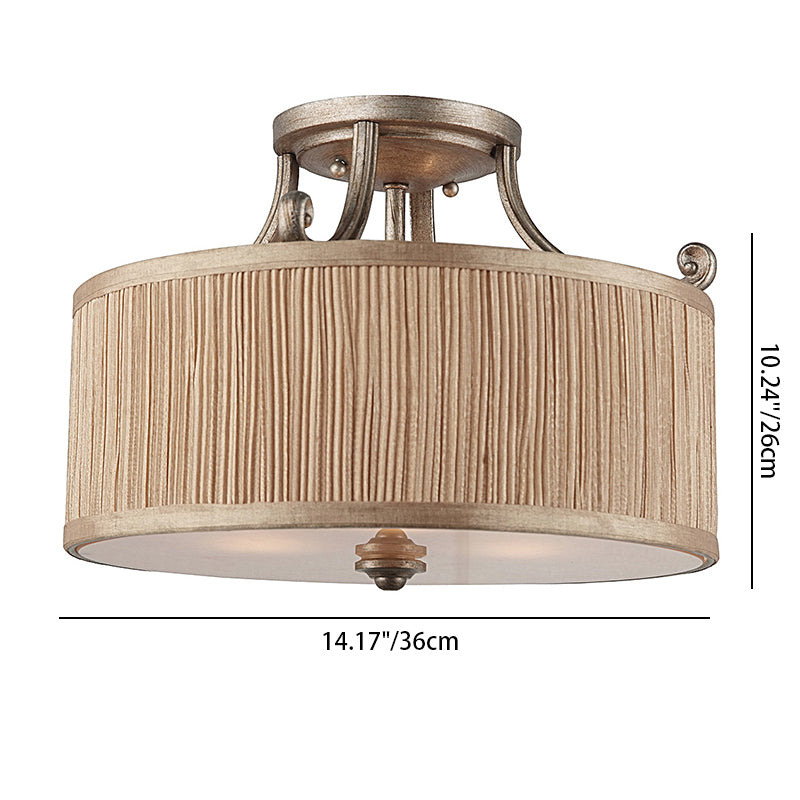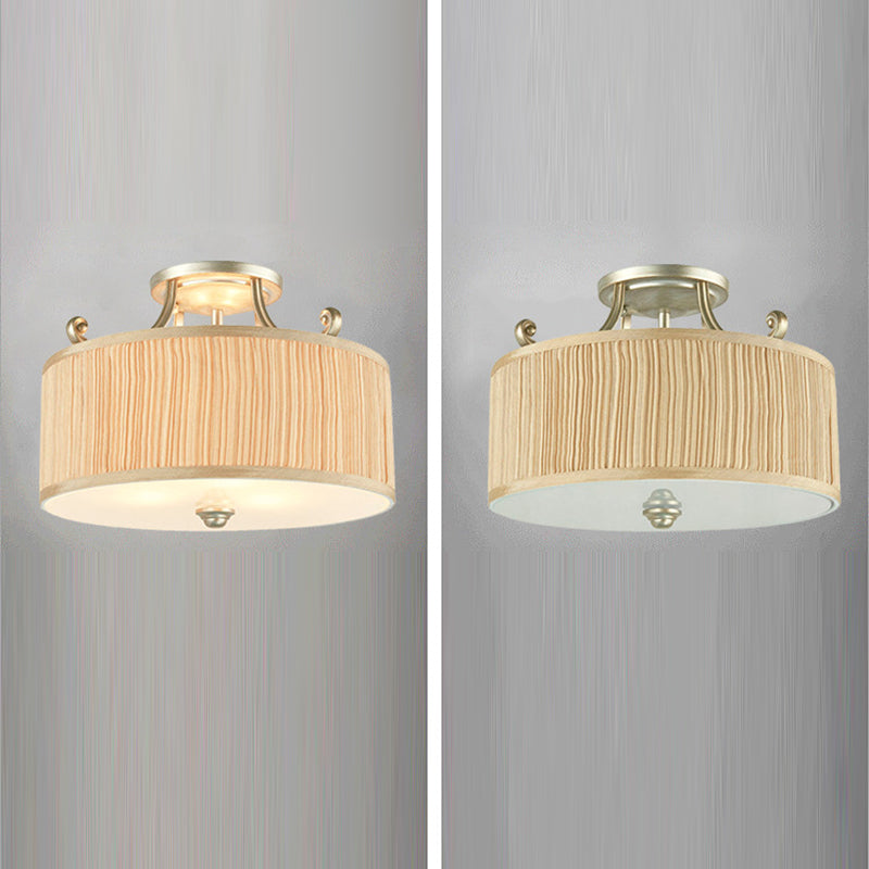 Traditional French Pleated Fabric Cylinder Shade Iron 3-Light Semi-Flush Mount Ceiling Light For Hallway