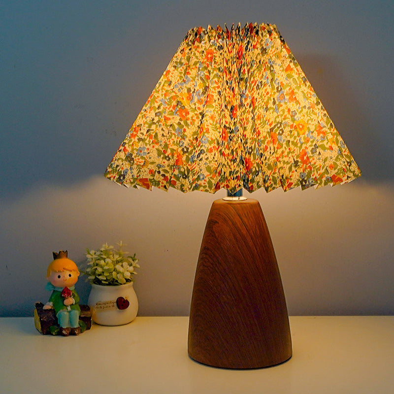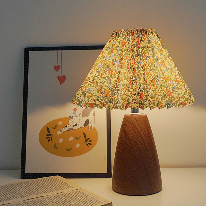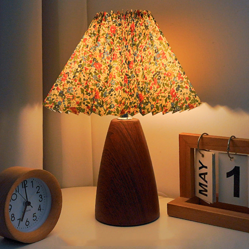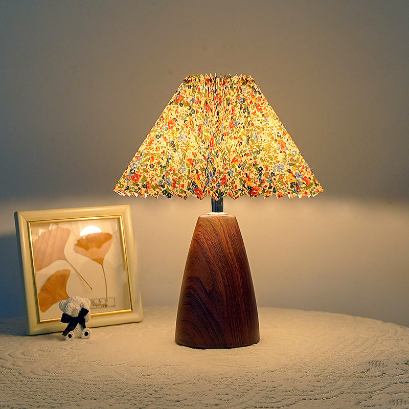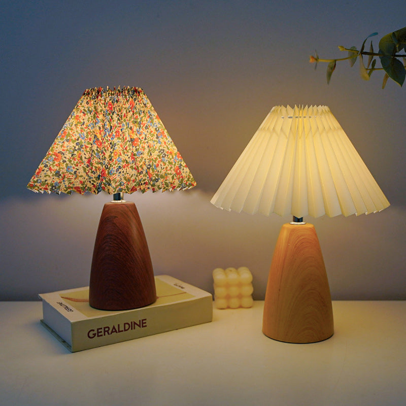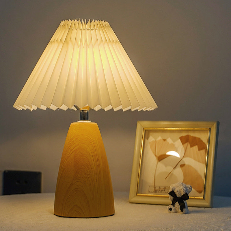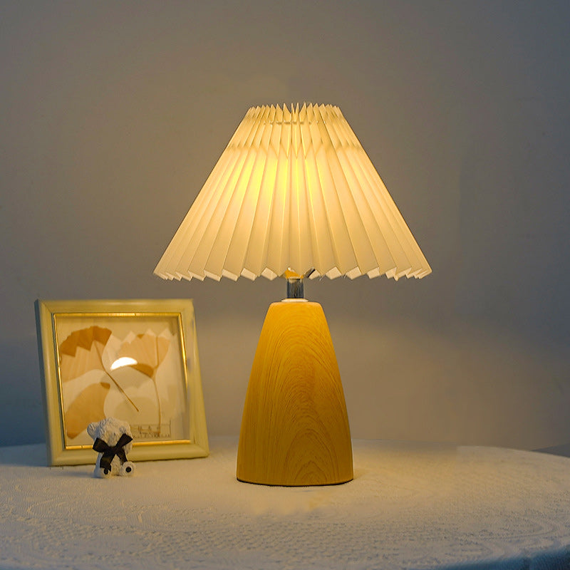 Traditional French Pleated Fabric Shade Ceramic Base USB LED Table Lamp For Bedroom