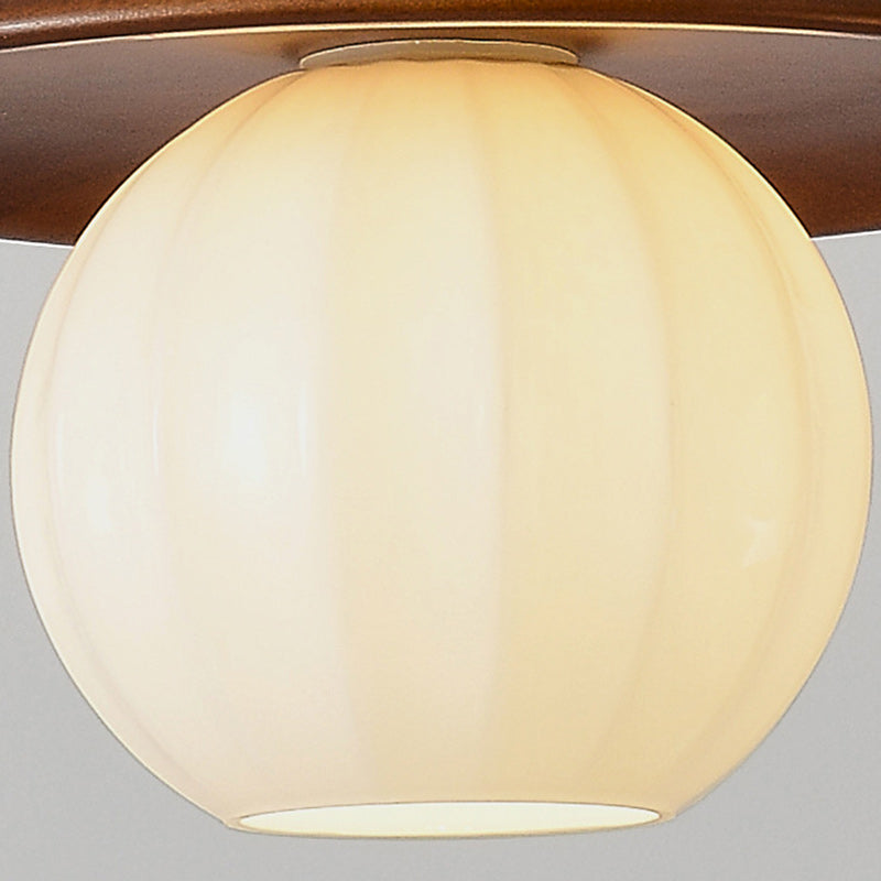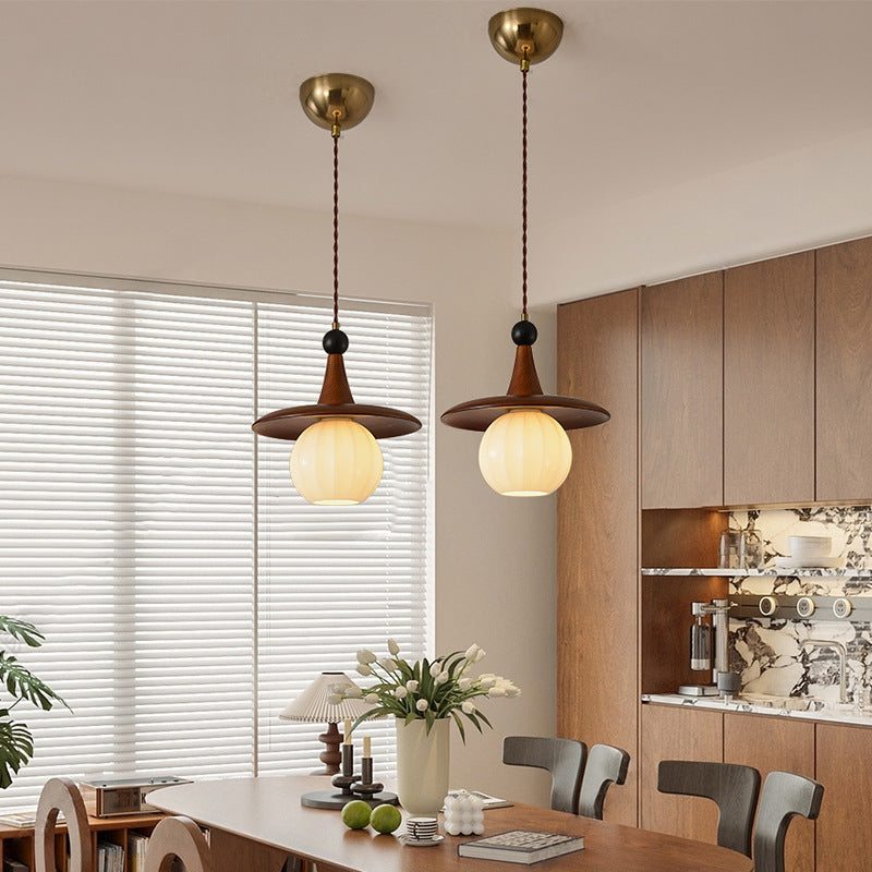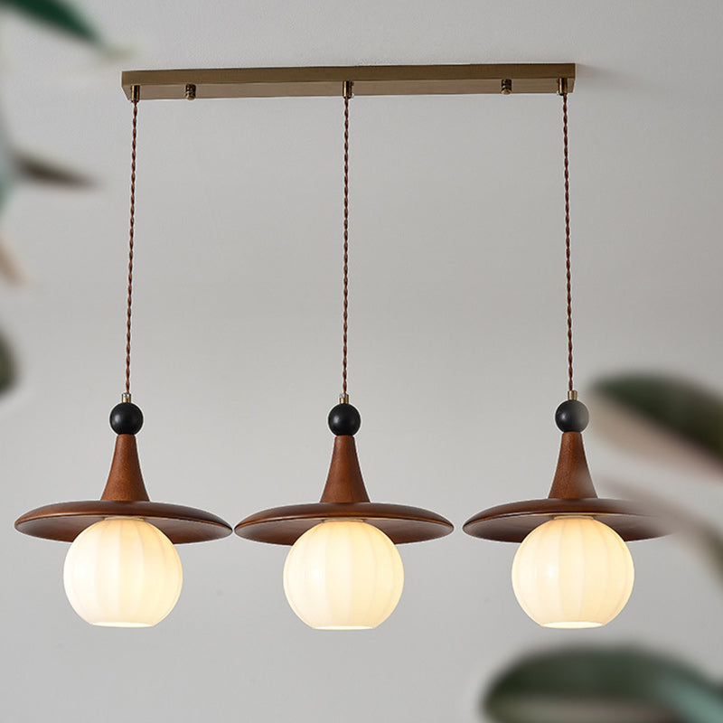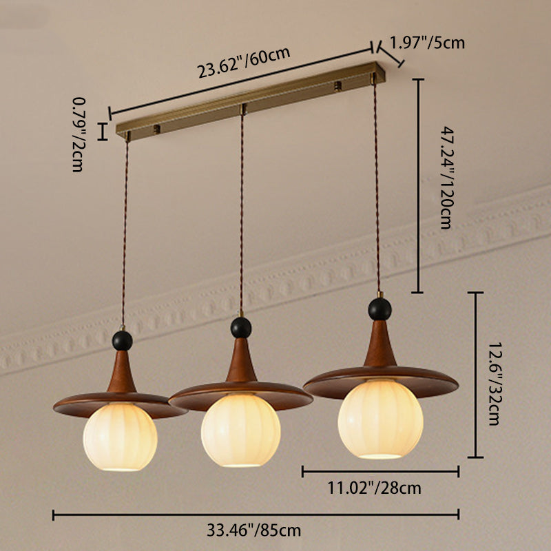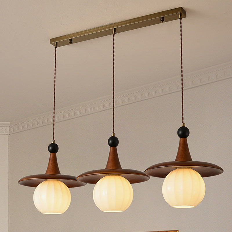 Traditional French Pumpkin Globe Iron Solid Wood Glass 1/3 Light Chandelier Island Light For Dining Room