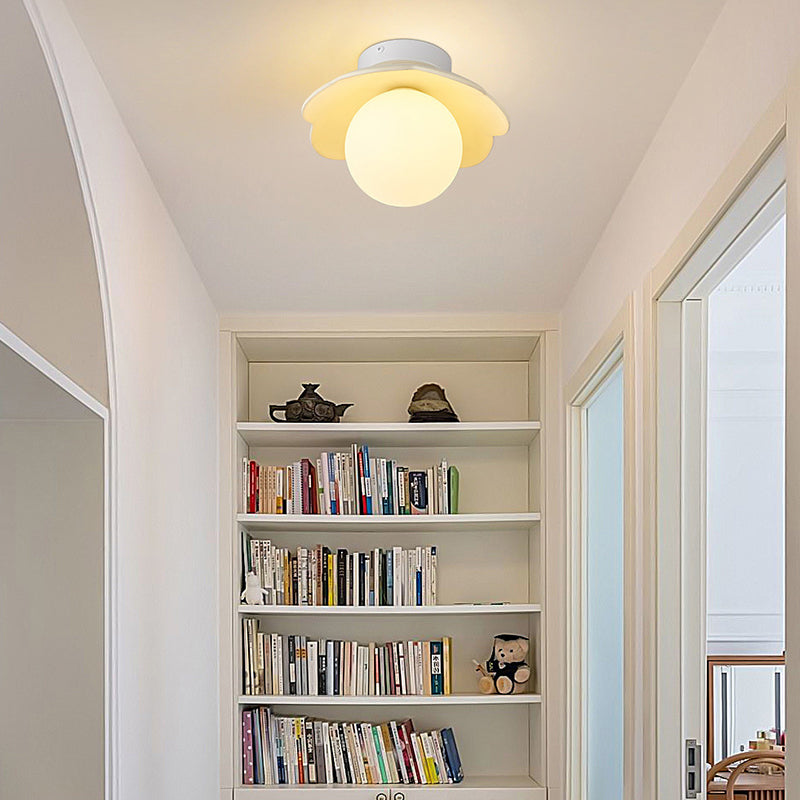 Traditional French Resin Flower PE Ball Shade 1-Light Semi-Flush Mount Ceiling Light For Living Room