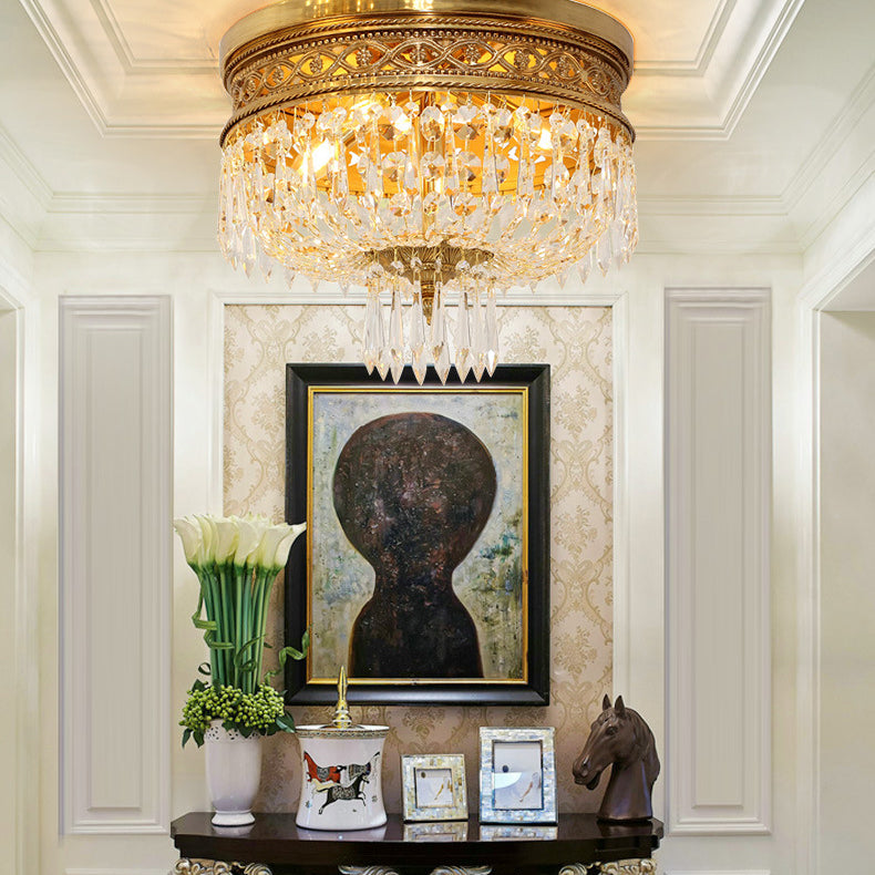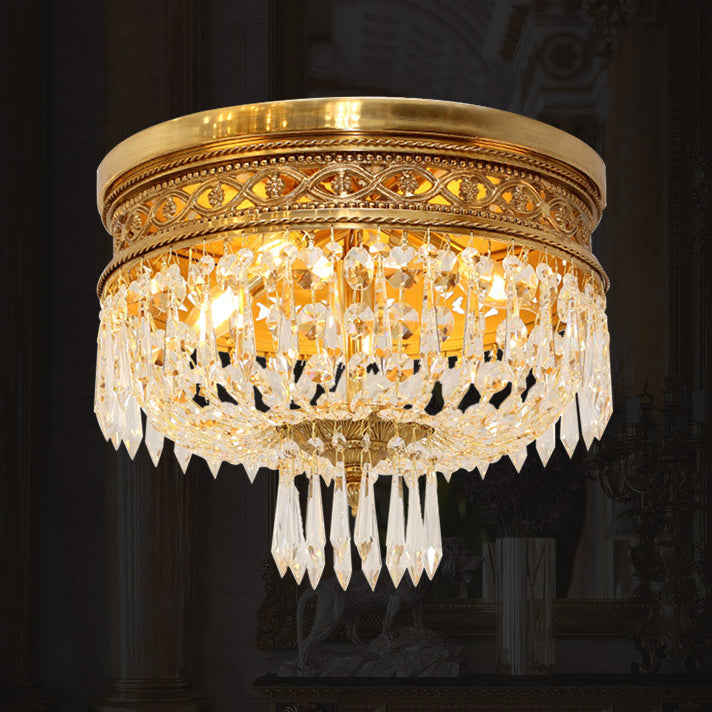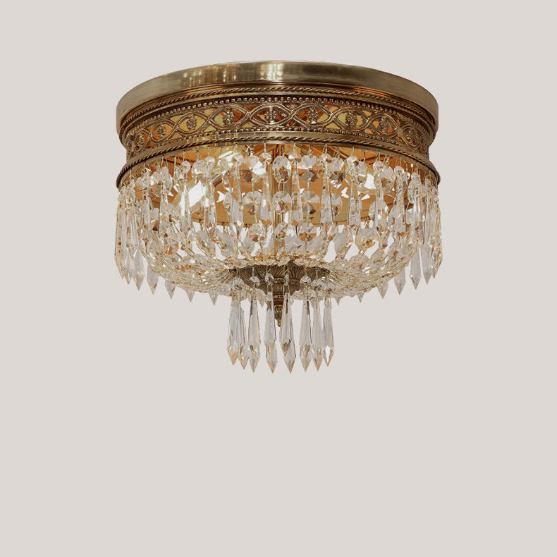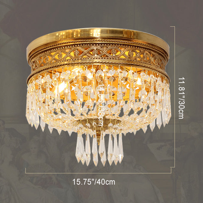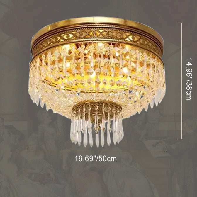 Traditional French Round All Copper Crystal 4/6 Light Flush Mount Ceiling Light For Bedroom