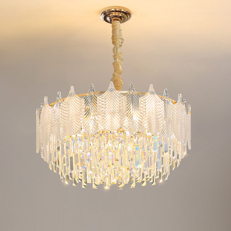 Traditional French Round Polygonal Crystal Hardware Glass 9/12-Light Chandelier For Living Room