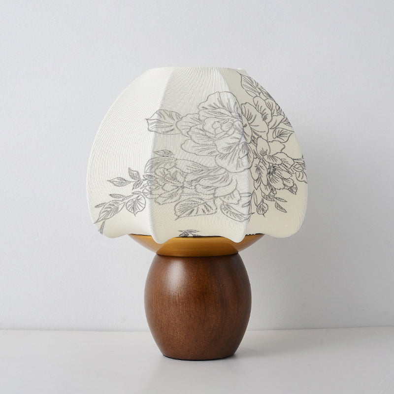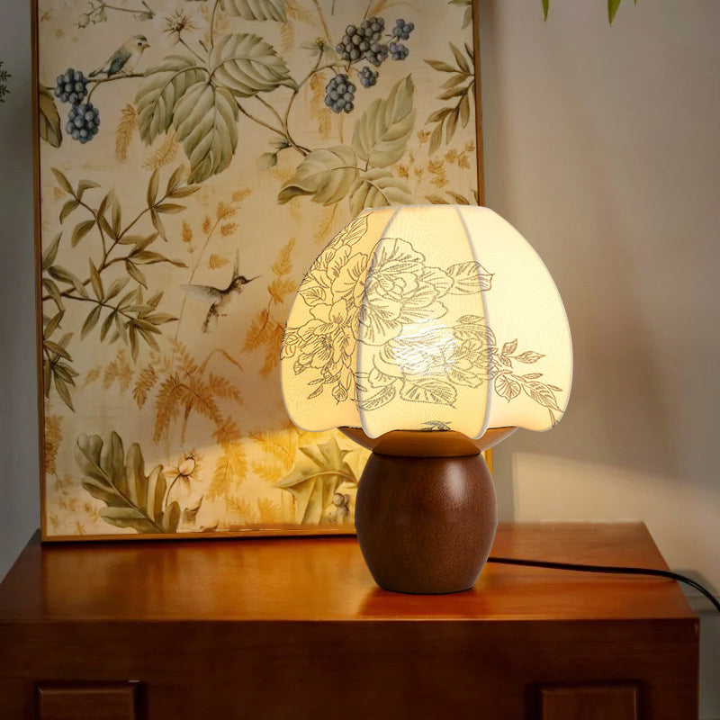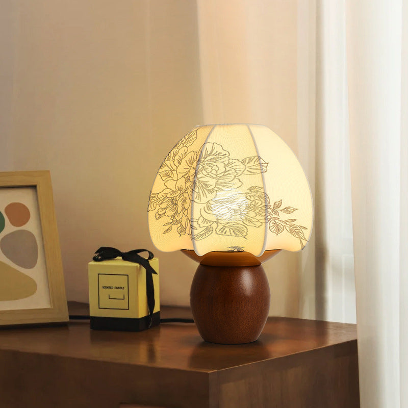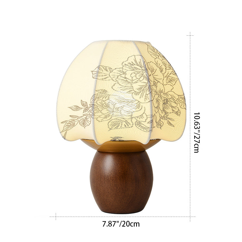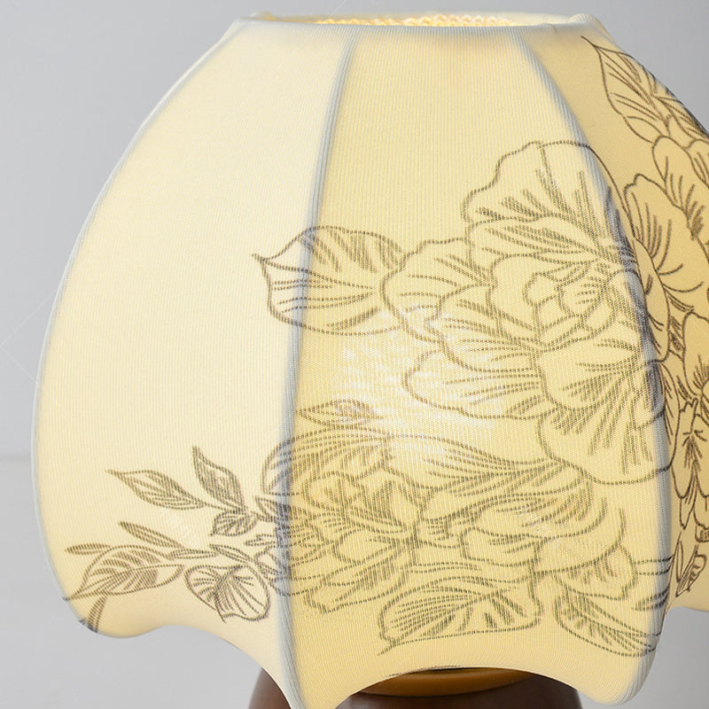 Traditional French Round Wood Alloy Fabric 1-Light Table Lamp For Bedroom